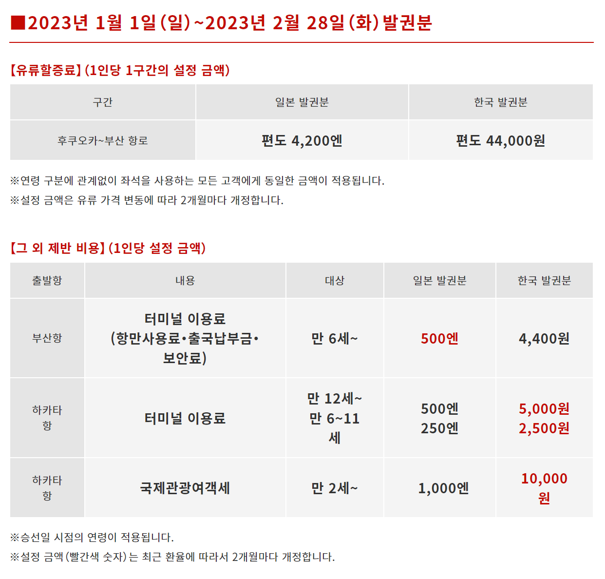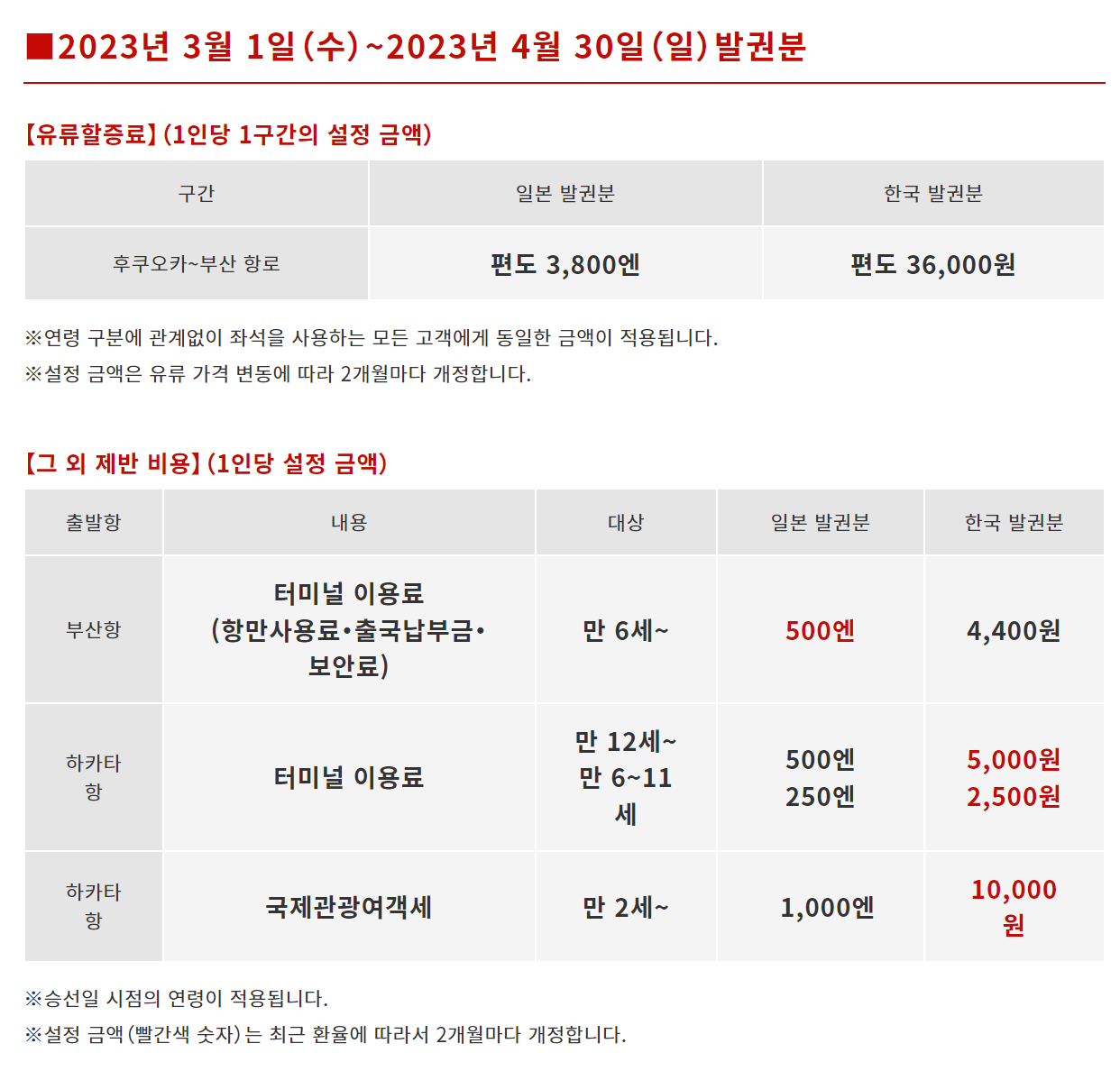 다만 항공료와 여객운임에 유류할증료, 터미널이용료, 국제관광세 등이 추가됩니다