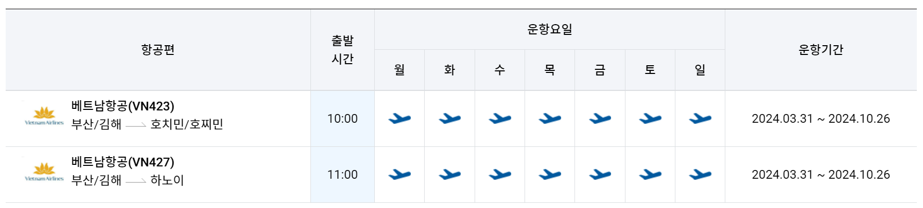 부산-베트남 취항노선 (베트남항공 vs 비엣젯항공)