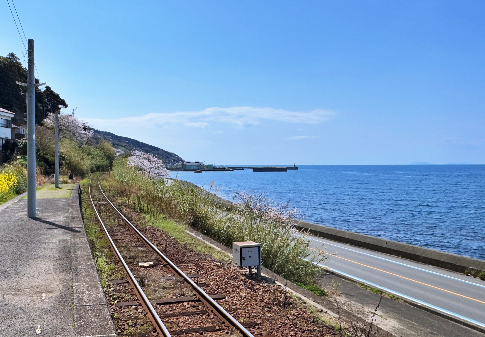 시모나다역은 역에서 내리면 바로 세토내해의 아름다운 광경을 볼 수 있는 역이다.