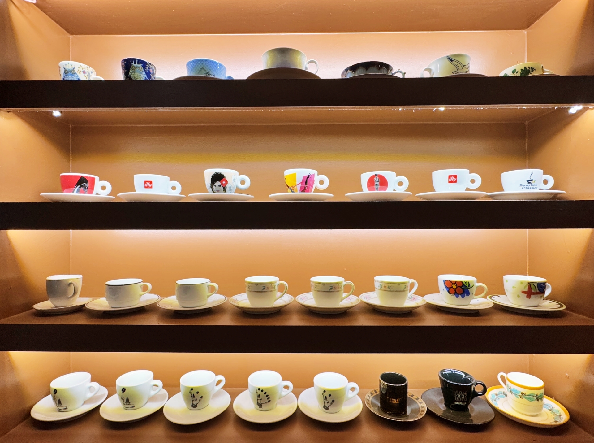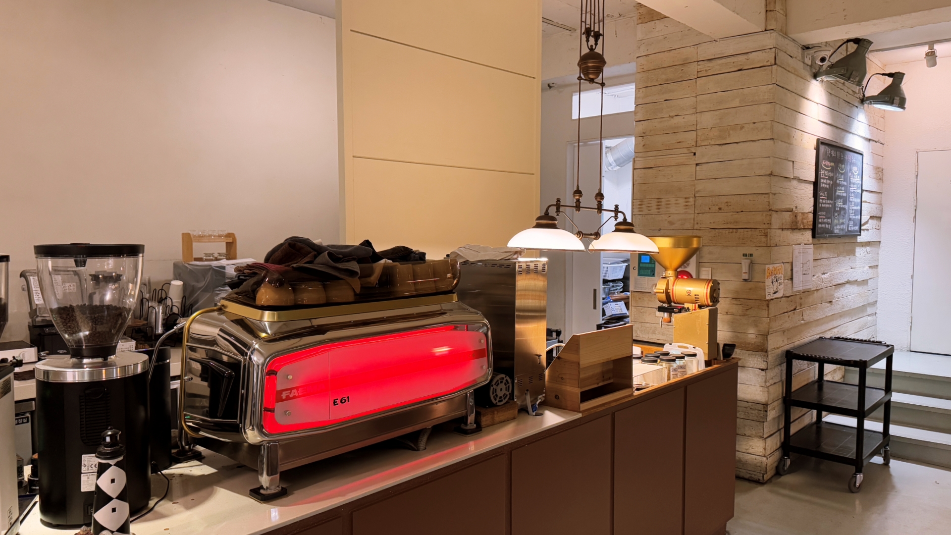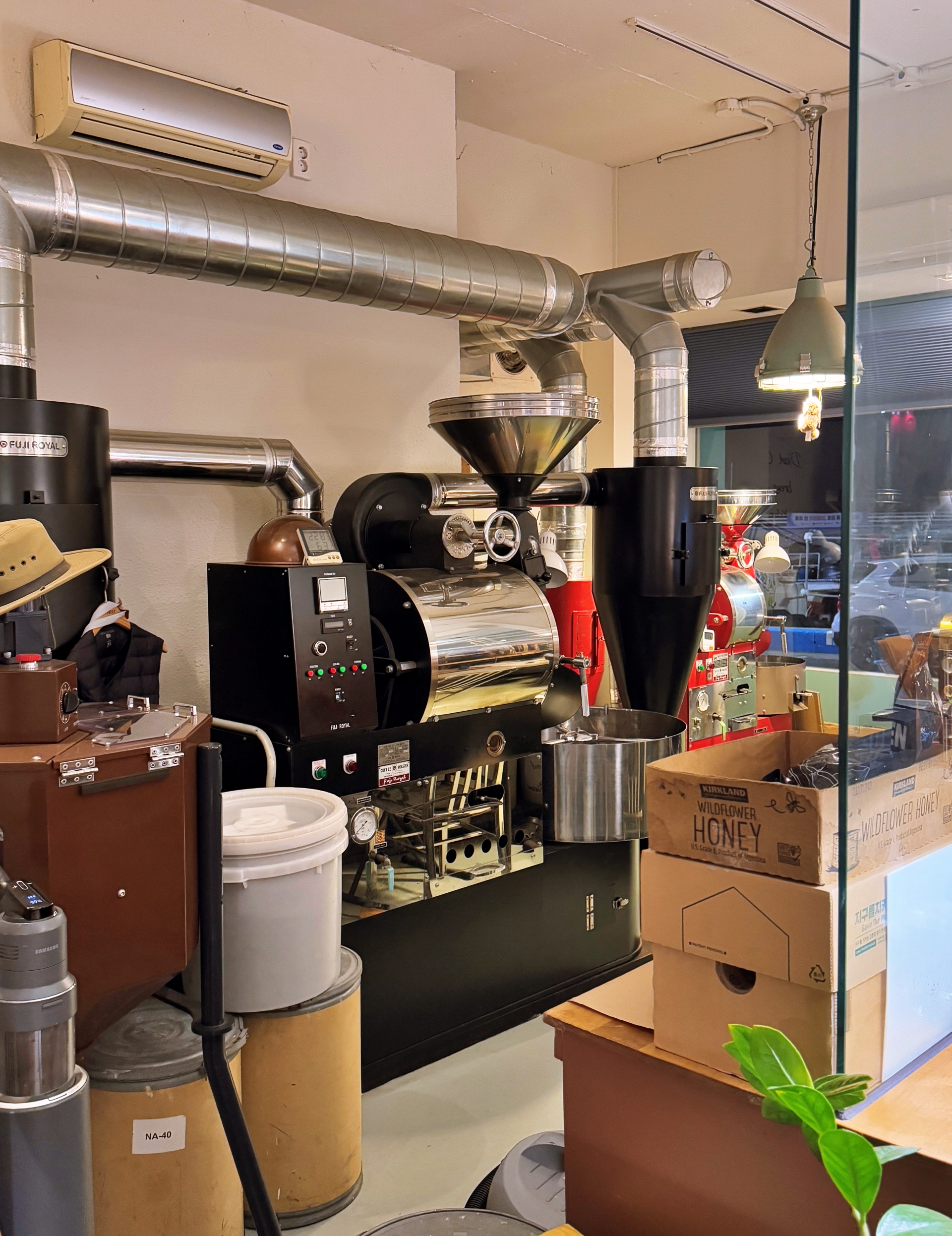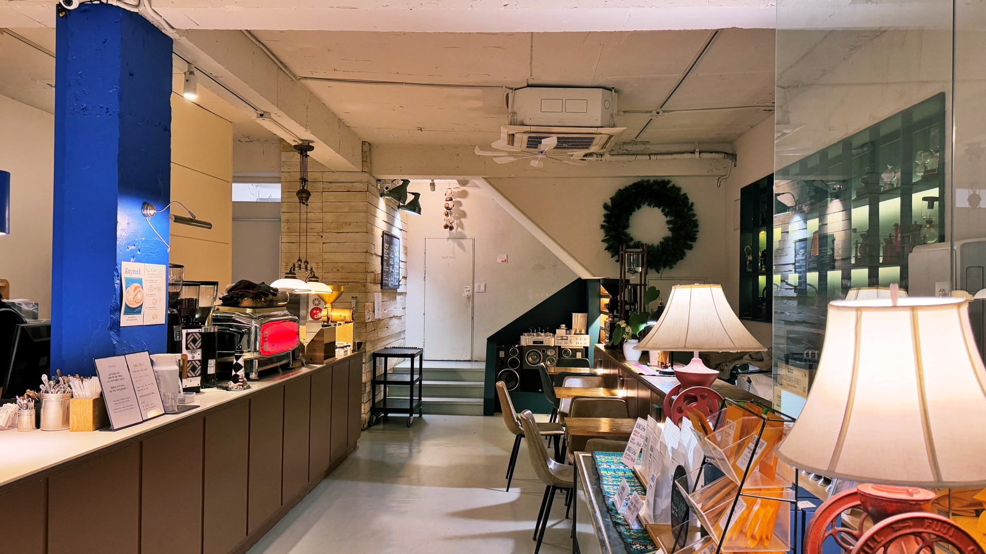 카페는 2층으로 되어 있는데 분위기가 아늑하고 괜챦다. 1층에는 커피 로스팅 기계와 주문대가 있고 2층에는 커피를 마실 수 있는 공간으로 꾸며져 있다. 카페 내부가 다양한 커피관련 기구들과 커피 잔들이 아기자기 하게 장식되어 있는 것이 특징.
