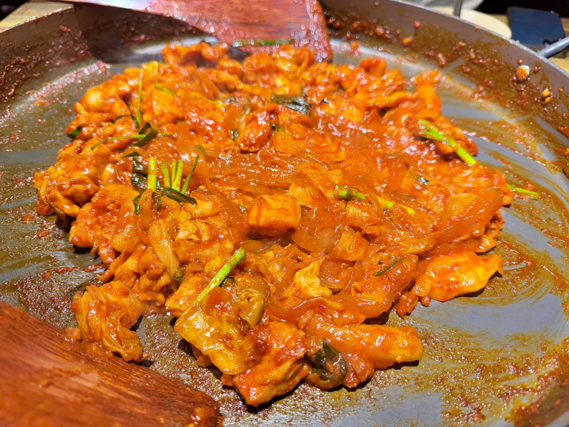 닭갈비의 닭고기가 매우 신선해 보인다. 그리고 닭고기 양도 유가네 닭갈비보다 많은 느낌이다. 직원이 직접 조리를 해 주는데 한 10분이상 걸리는 것 같다. 마지막엔 당면을 가져다 같이 넣어 준다. 굵은 당면이 색다른 식감에 색다른 맛을 느끼게 해줬다. 양념도 괜챦았는데 다른 집도 덜 단 것 같다. 설탕이 덜 들어간 느낌. 그래서 개인적으로 더 좋았다. 떡사리도 들어가 있다.