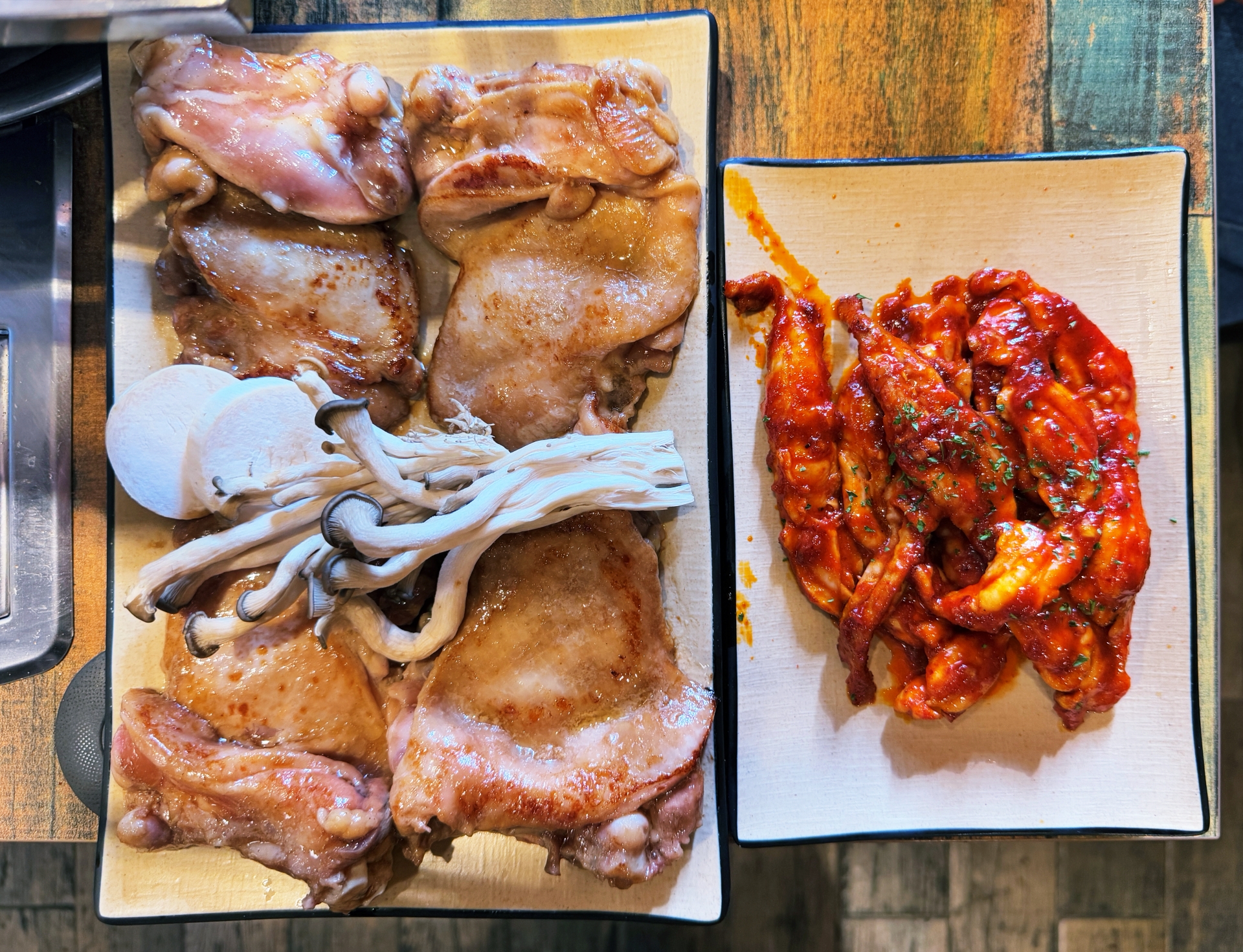 우리는 닭갈비 2인분 (12,900원X2인=25,800원)과 네이버에 다운받은 쿠폰으로 초계비빔밥(무료), 그리고 볶음밥 1인분(2,000원)을 주문해 먹었다. 두번째 방문때에는 허벅갈비 (소금 2인분, 간장양념 1인분, 35,7000원)과 초계국수(7,000원)을 주문해 먹었다.
