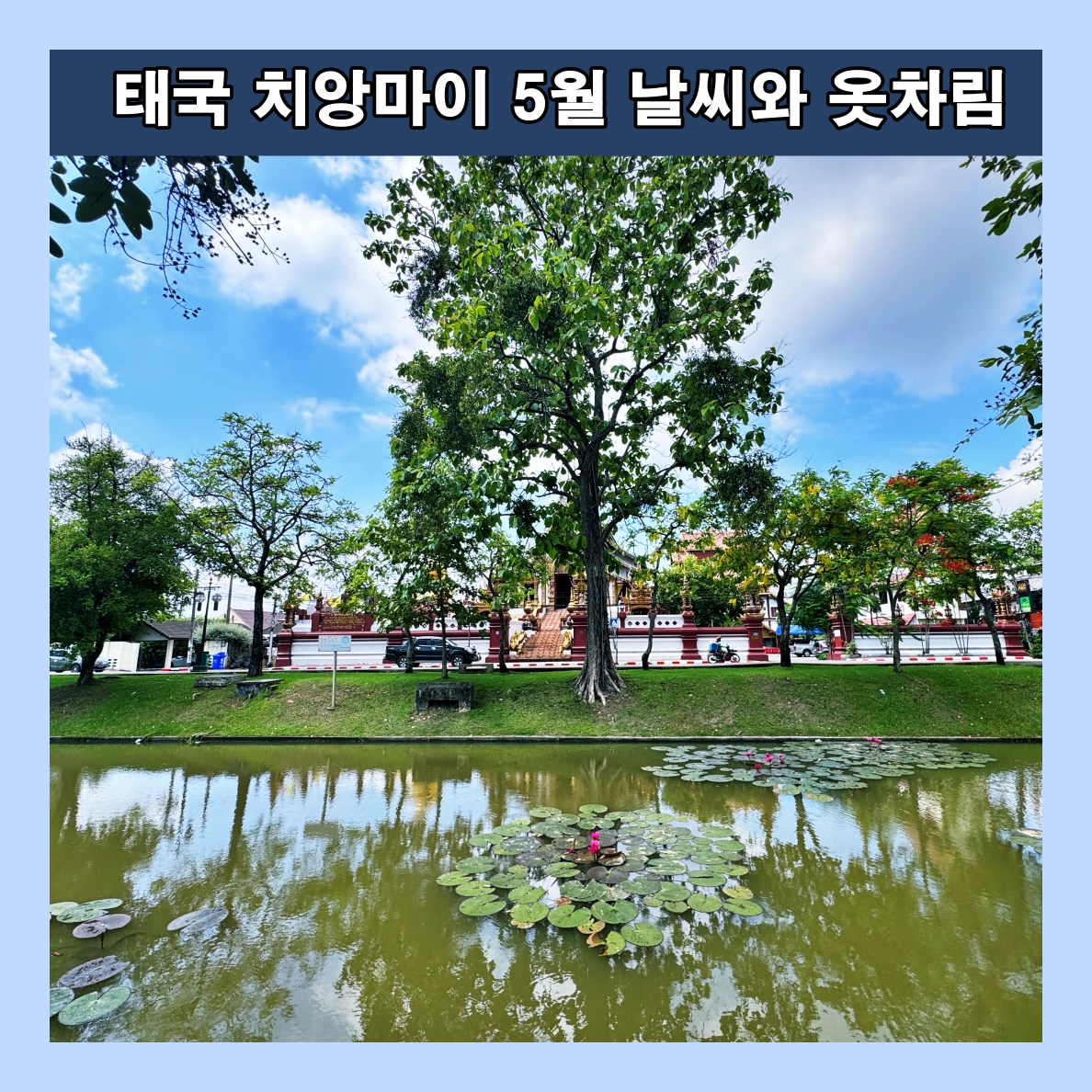 치앙마이의 5월은 고온다습한 여름날씨로 우리나라의 한여름보다 더 덥습니다. 평균 최저기온이 영상 23.7℃, 평균 최고기온이 영상 34℃, 월평균 일교차는 10.3℃로 큽니다. 평균 강수량은 153mm, 평균 강수일수는 14.6일로 비가 자주 내리는 특징이 있습니다. 내가 머문 5월 13일부터 5월 17일까지 비가 간혹 내렸으며 전반적으로 햇살이 강하고 더운 편이었다.