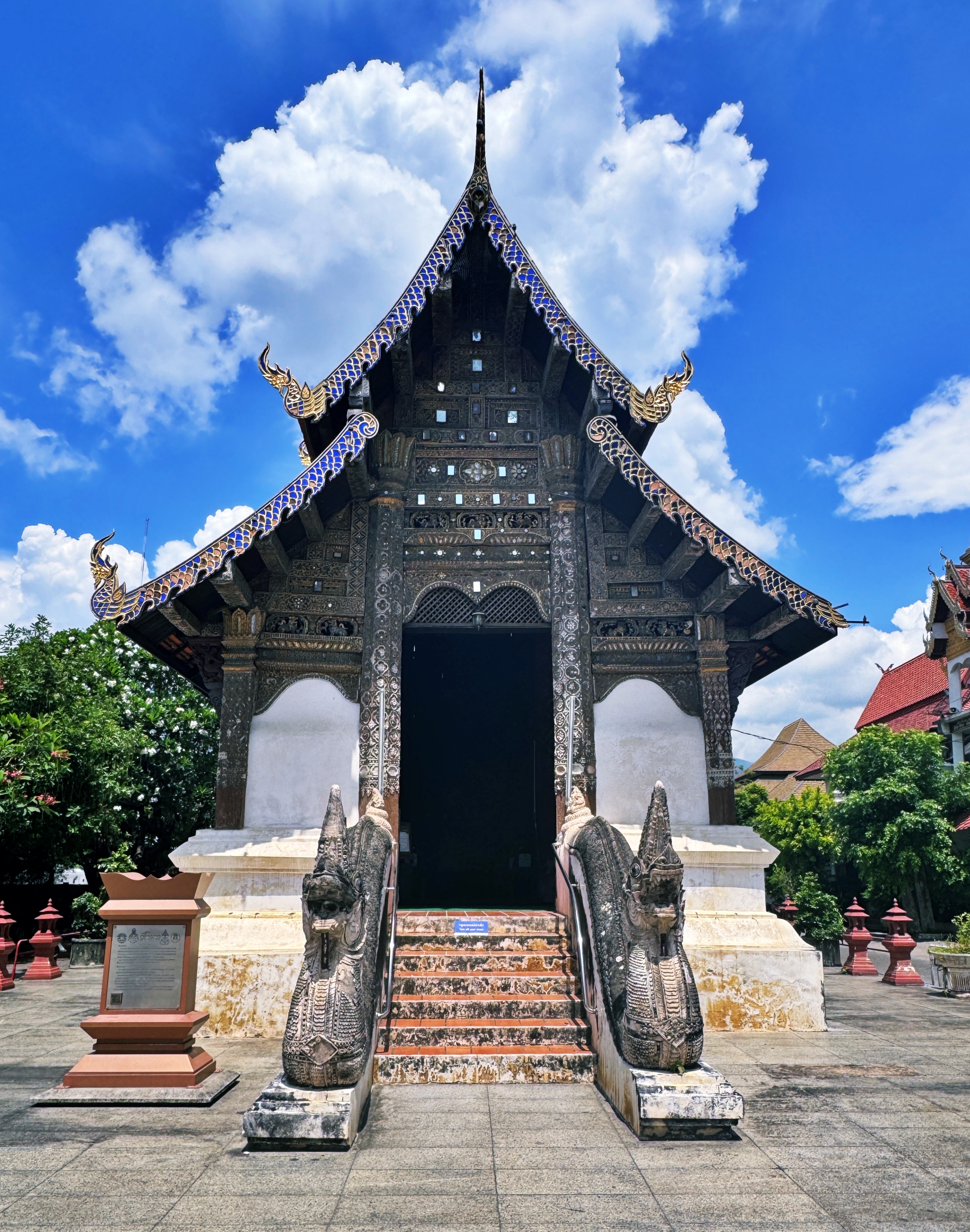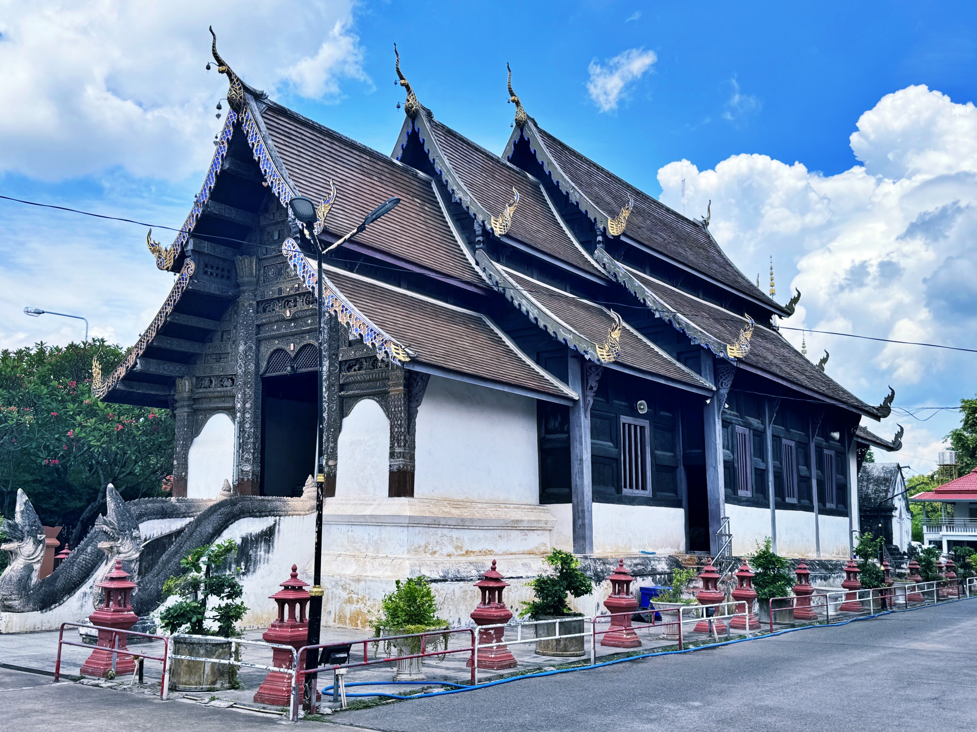 대법전(Viharn)은 다층 지붕에 어두운 갈색 색상이 주를 이루는 란나 스타일의 특징을 가지고 있으며 1823년에 건축되었다. 구시가지에 있는 다른 많은 사원들이 장식하고 있는 화려한 금색과 빨강색은 없다.