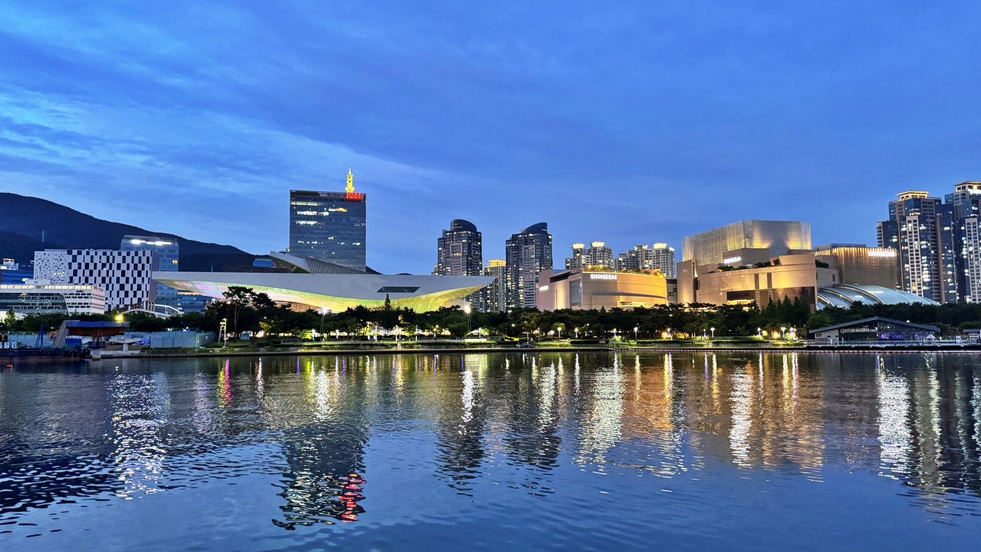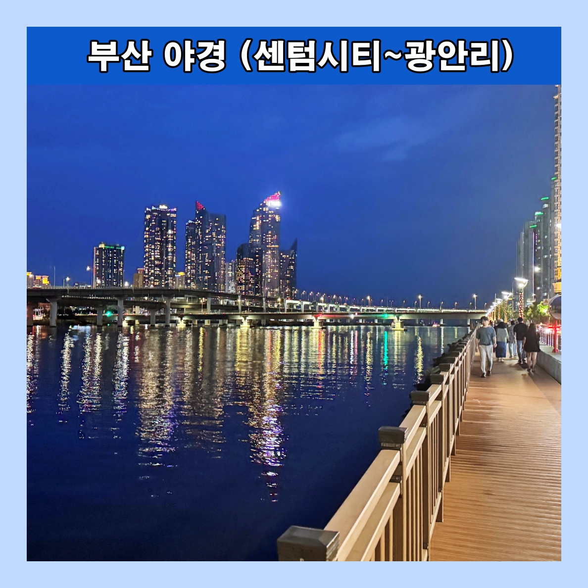 센텀시티는 부산광역시 해운대구에 위치한 대규모 복합 상업지구로, BEXCO, 영화의전당, 신세계백화점 센텀시티점 등 다양한 쇼핑, 문화, 업무 기능을 갖추고 있는 곳이다. 밤이 되면 영화의전당, 신세계백화점 센텀시티점과 주변 고층 빌딩들이 화려한 야경을 뽐내는데 수영강변에서 바라보는 야경이 정말 예쁘다