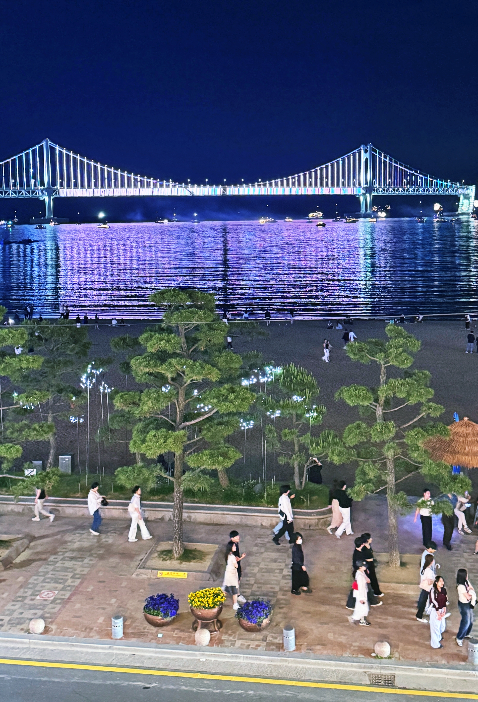 금빛 백사장과 푸른 바다가 광안리해수욕장의 대표적인 낮 풍경이라면 화려한 조명 사이로 버스킹 노래 소리가 울려 퍼지는 바다는 광안리의 놓칠 수 없는 밤 풍경이다.