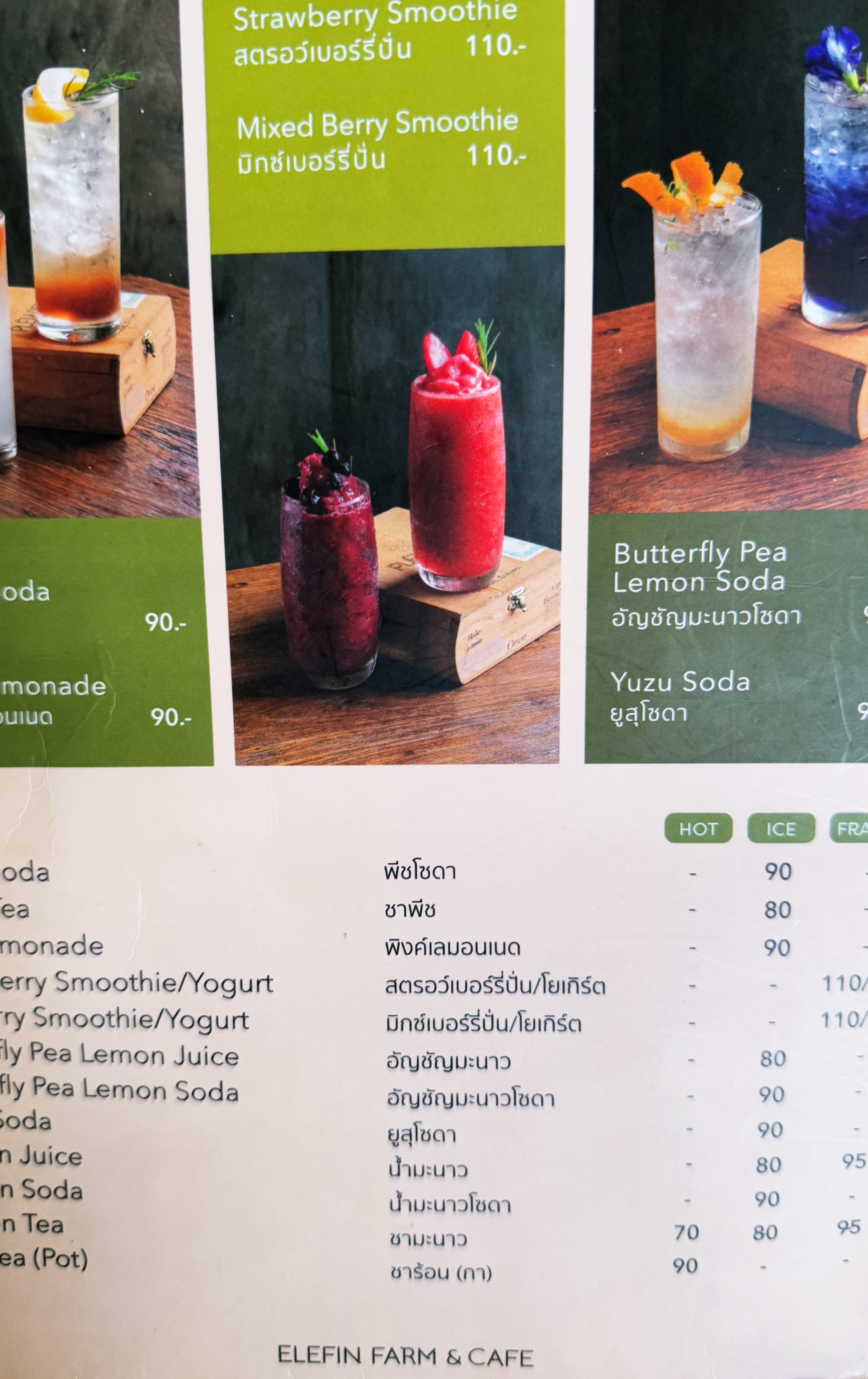 음료는 다양한데 가격은 아무래도 치앙마이의 다른 커페 가격이랑 비교하면 약간 비싸다. 에이드가 90바트(3,800원) , 스무디가 110바트(4,600원) 정도 한다.