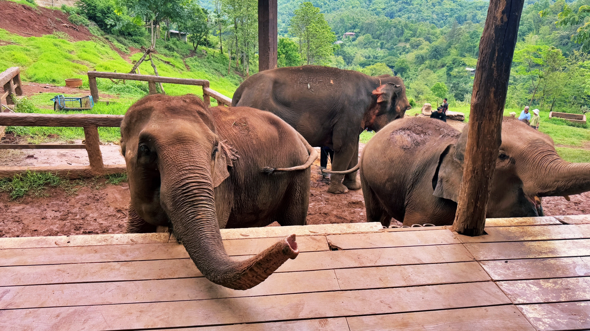 코끼리에게 먹인 주는 체험외에도 추가로 요금을 내면 다양한 코끼리 체험 액티비티를 할 수 있다.