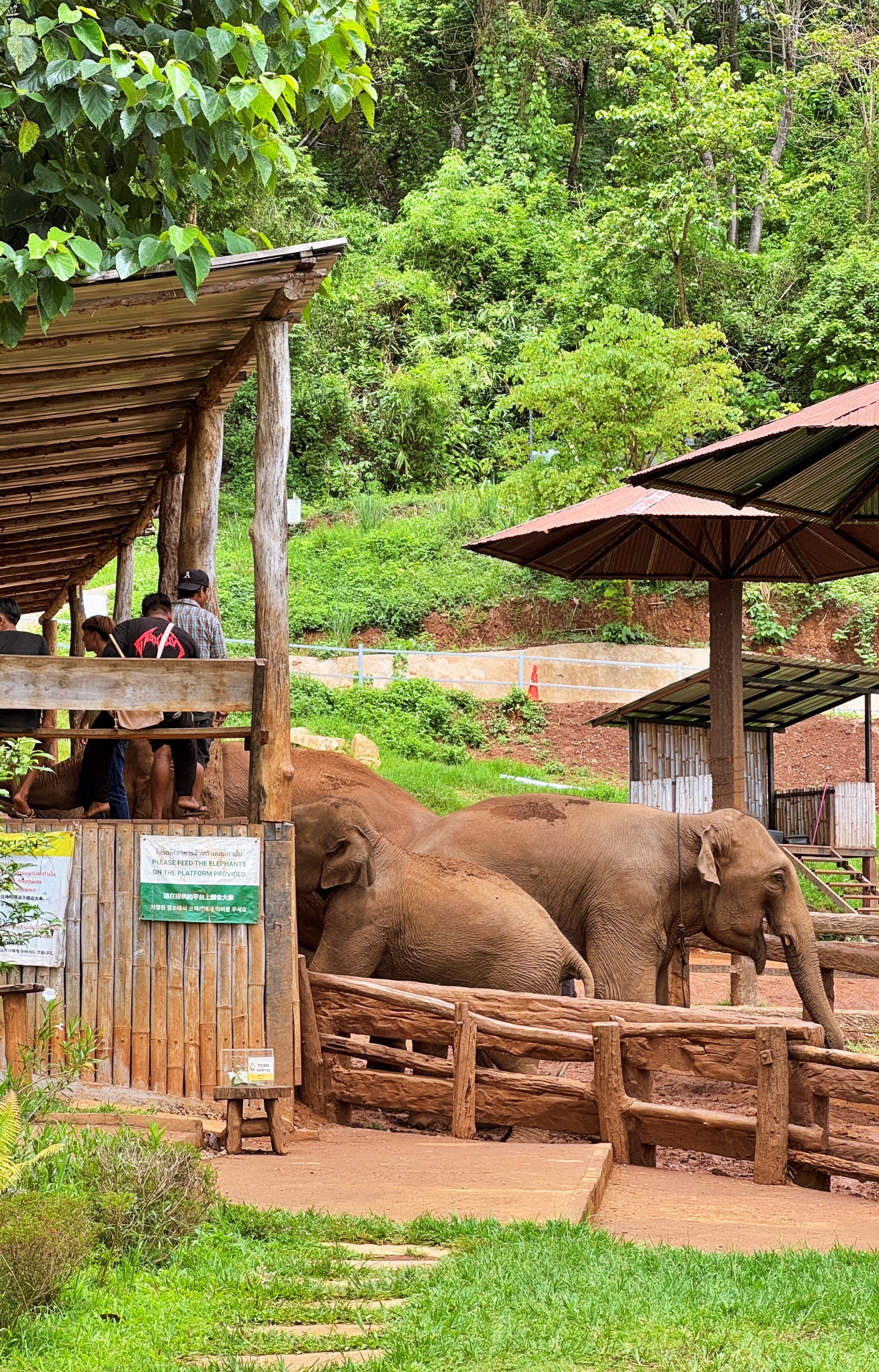 코끼리먹이를 100바트에 구입하면 코끼리에게 직접 먹이를 줄 수 있는 체험을 할 수가 있다. 우리는 투어 가이드가 준 100바트 쿠폰으로 코끼리 먹이로 교환했다. 코끼리들이 잽싸게 손에 든 바나나와 사탕수수를 채가는 모습은 정말 색다르고 재미있는 경험이다. 아이를 동반한 가족여행이라면 꼭 체험해 봐야 할 코스.