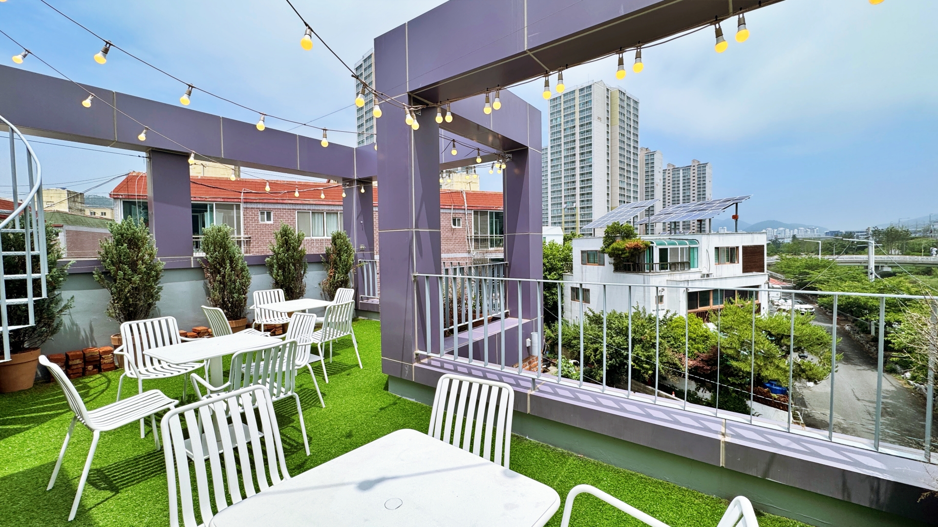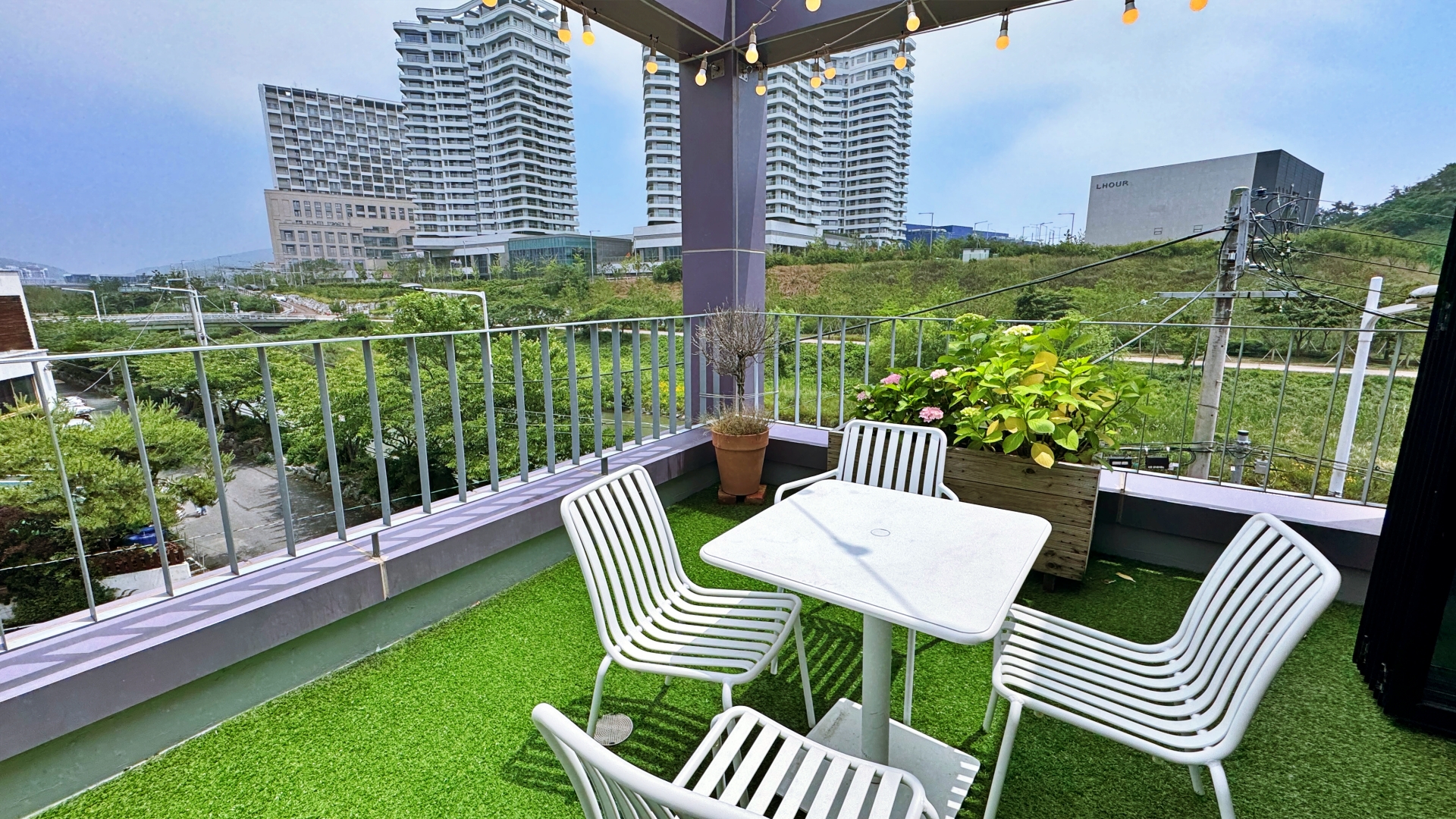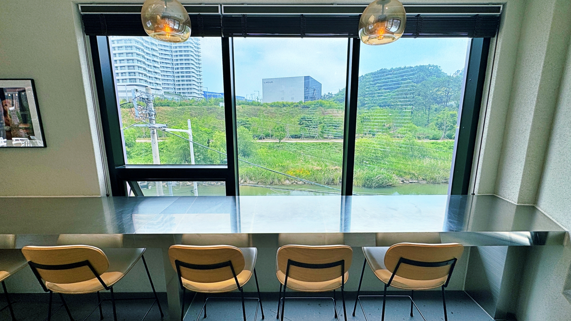 3층에도 테이블이 있고 송정천 풍경을 감상할 수 있도록 창가 좌석들도 배치되어 있다. 특히 야외 테라스도 있는데 주변 풍경이 참 멋있다.