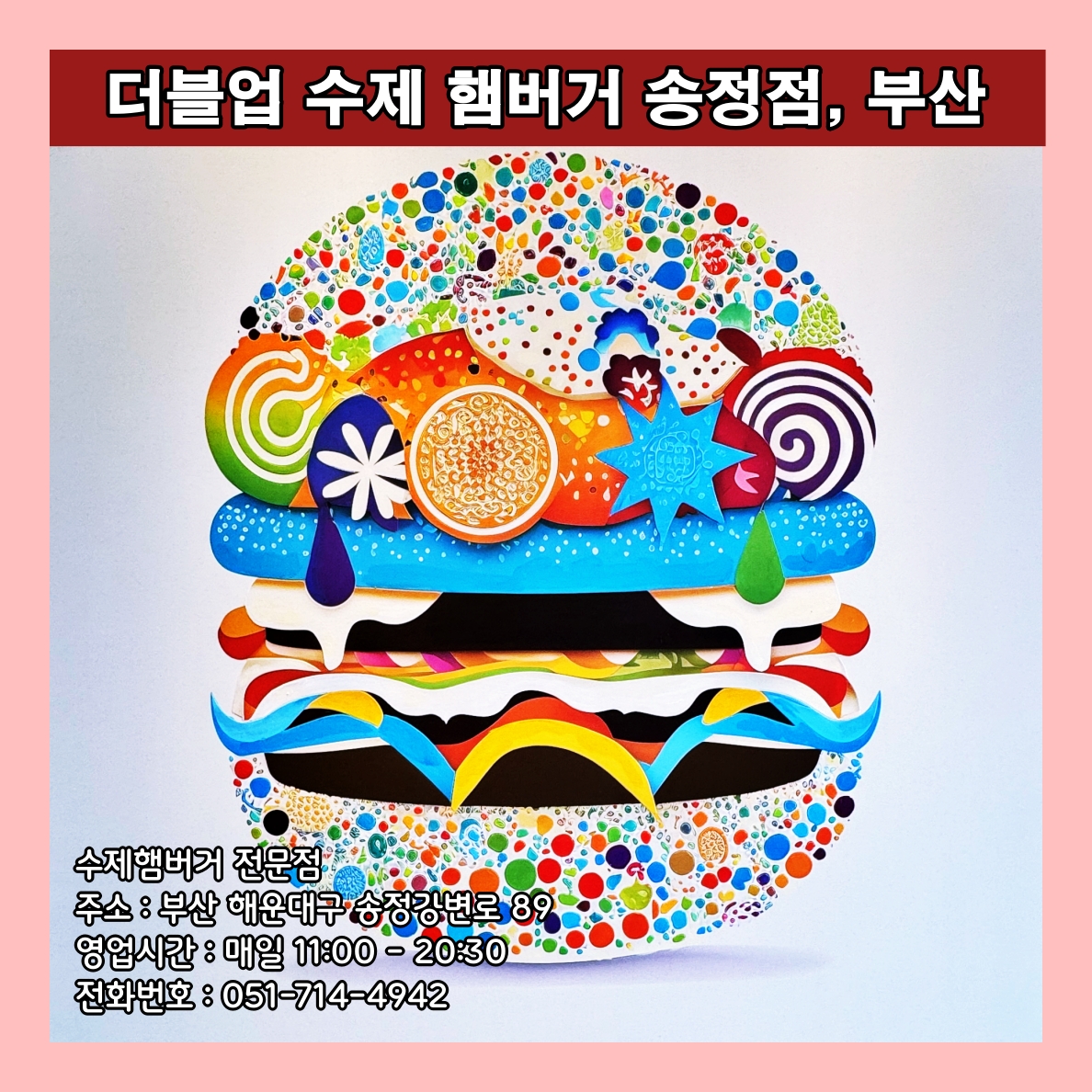 더블업 수제햄버거은 송정천 강변에 위치한 수제버거 맛집으로, 두툼한 패티와 신선한 재료로 만든 버거가 인기이다다. 특히 직접 구운 번과 육즙 가득한 패티가 조화를 이루어 풍부한 맛을 자랑하며 감자튀김과 함께 즐기면 더욱 든든한 한 끼가 되는 곳이다. 다만 수제 햄버거다 보니 가격이 비싼게 흠이다.