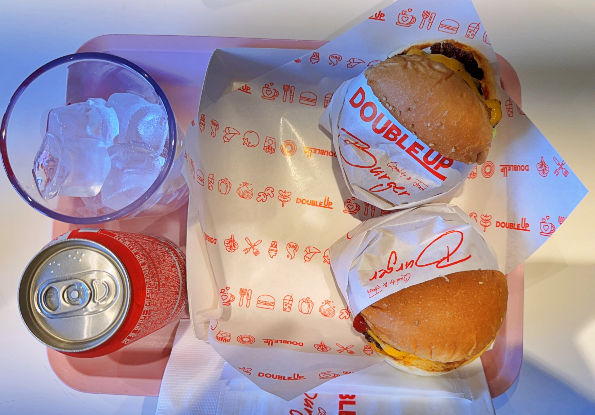 육즙과 재료 본연의 맛을 잘 살려낸 버거. 세트로 주문해 탄산음료와 감자튀김이 같이 나왔다.