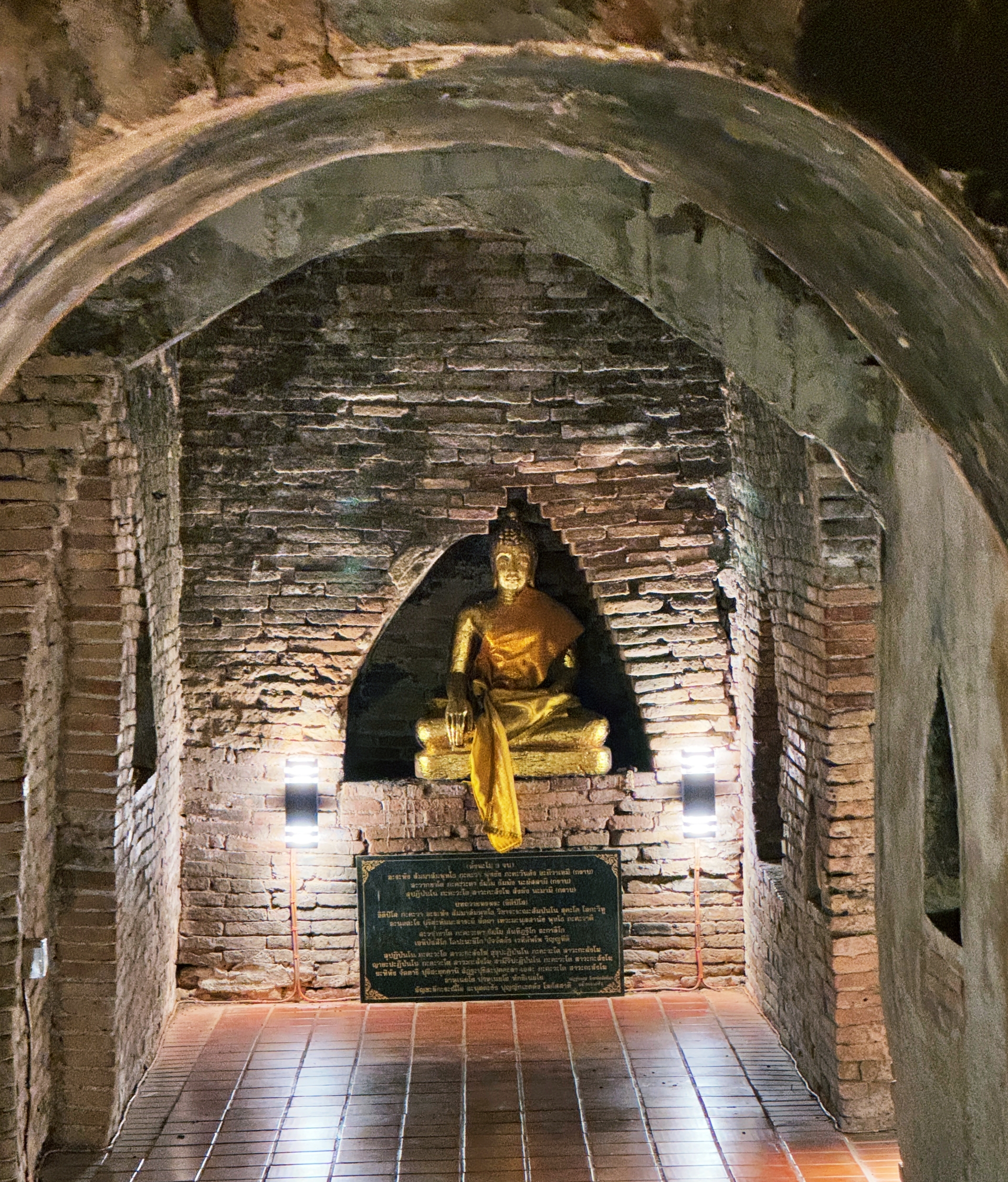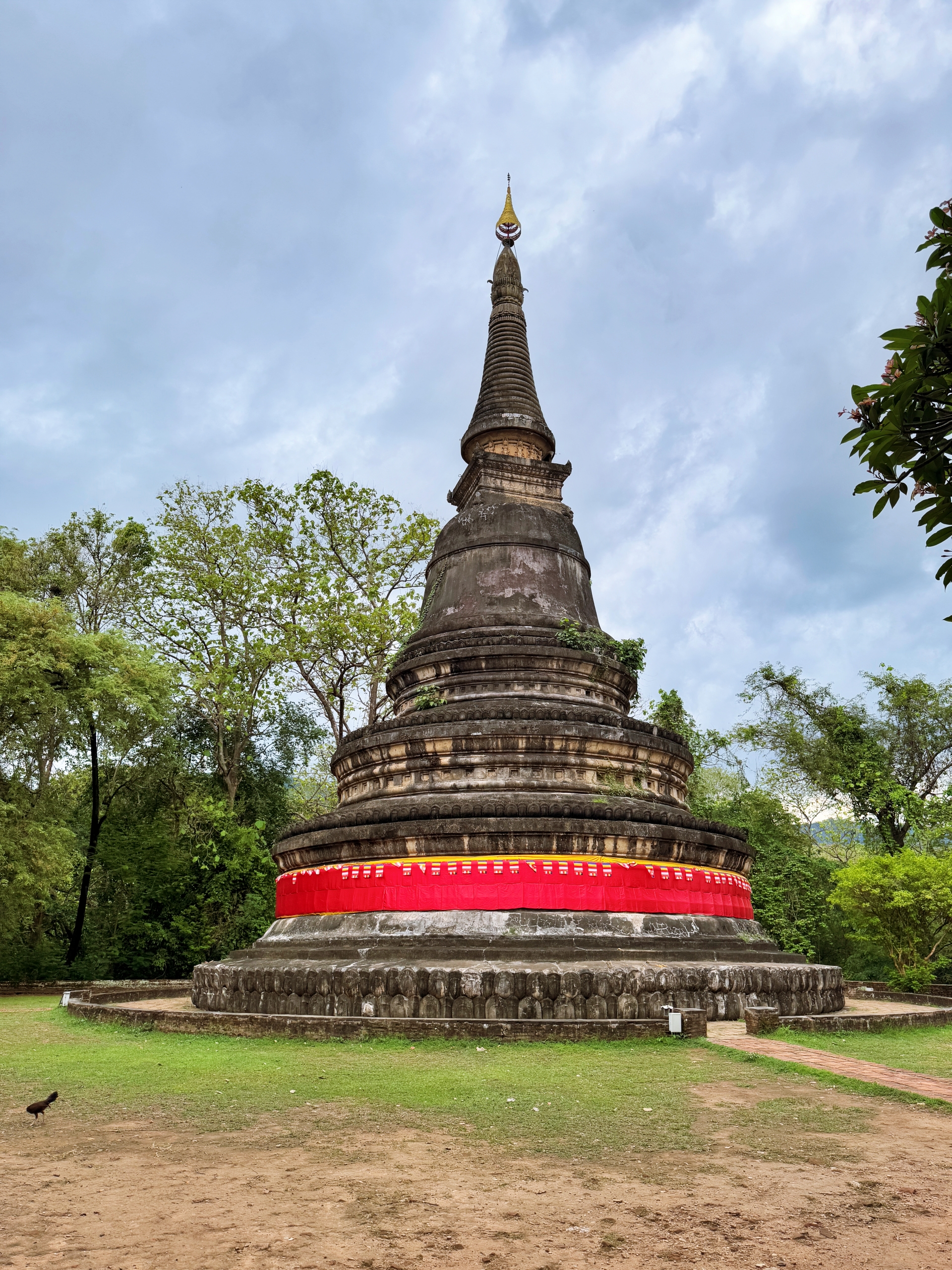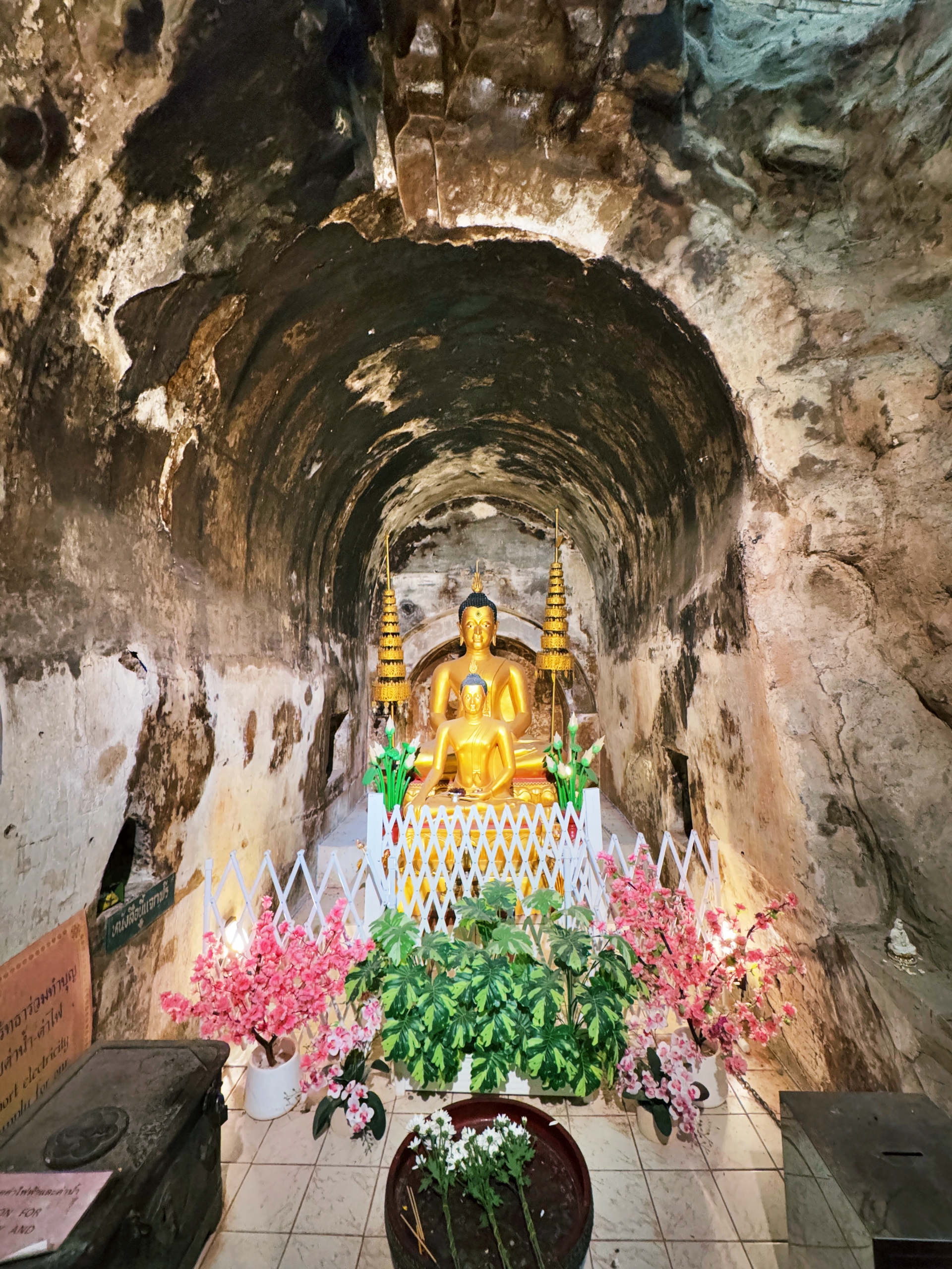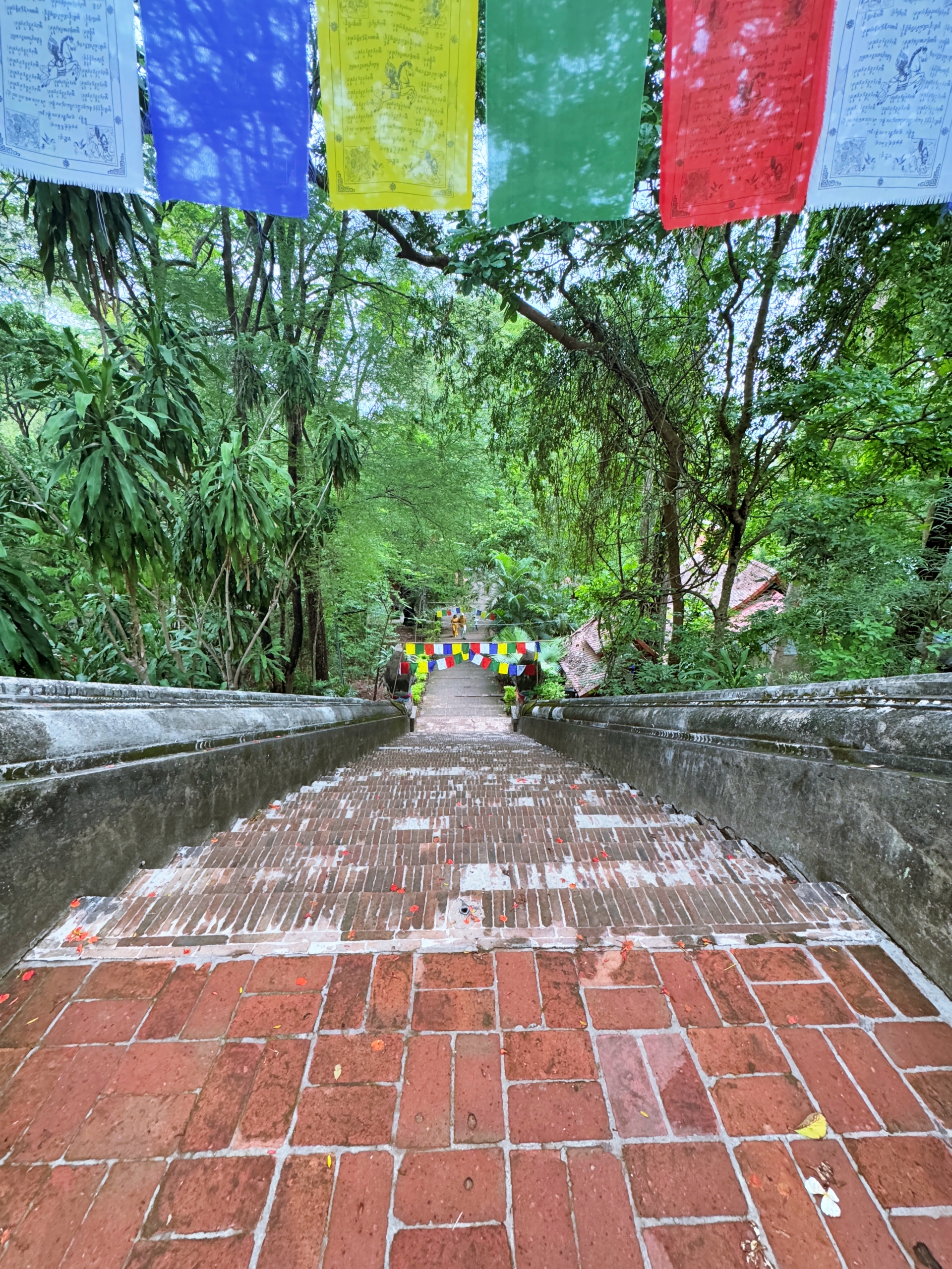 조용한 사찰 중앙에는 수코타이 양식의 탑이 기단 위에 서 있다. 동굴사원을 나와 가파른 계단을 올라가면 불탑이 나타난다.