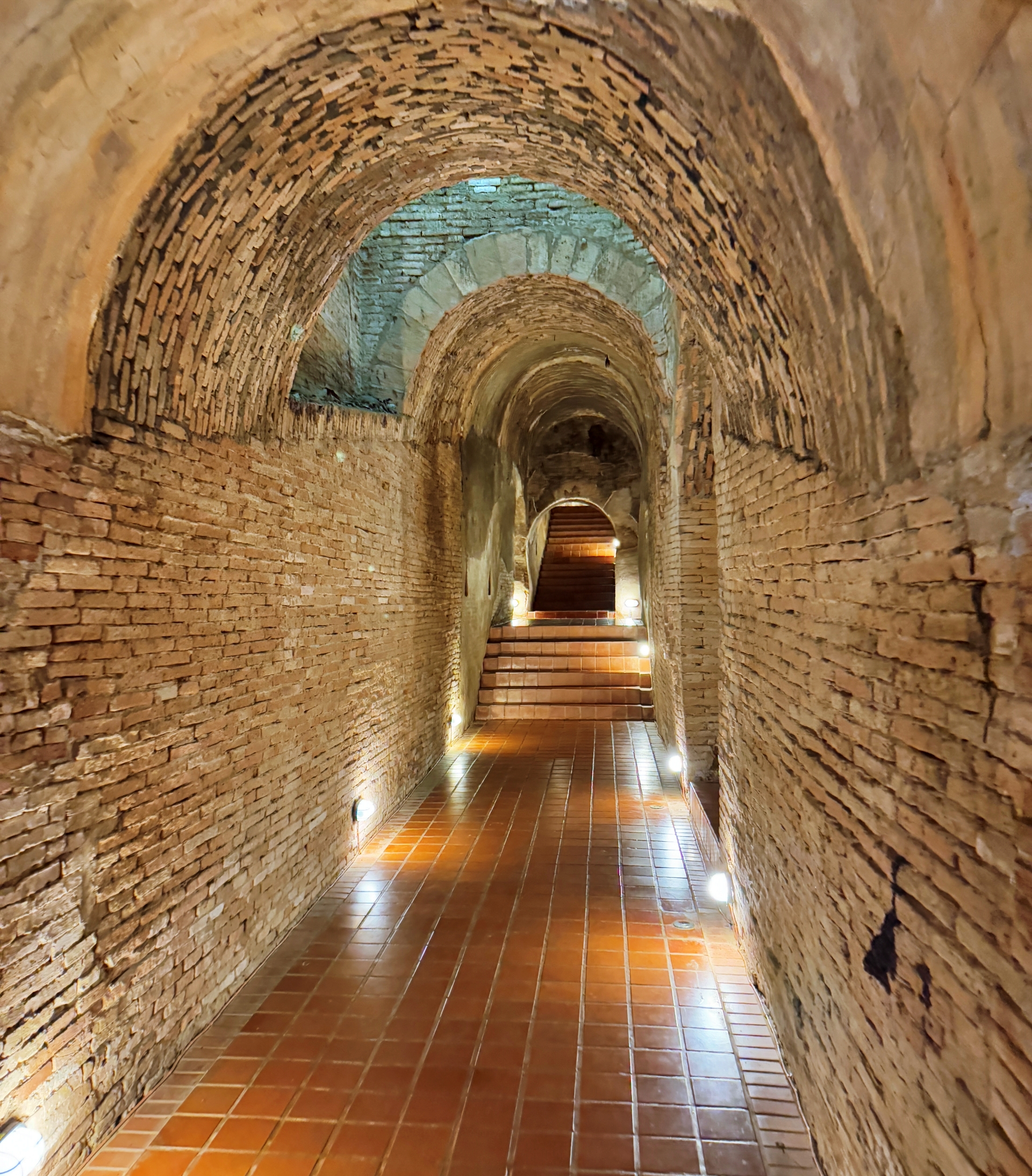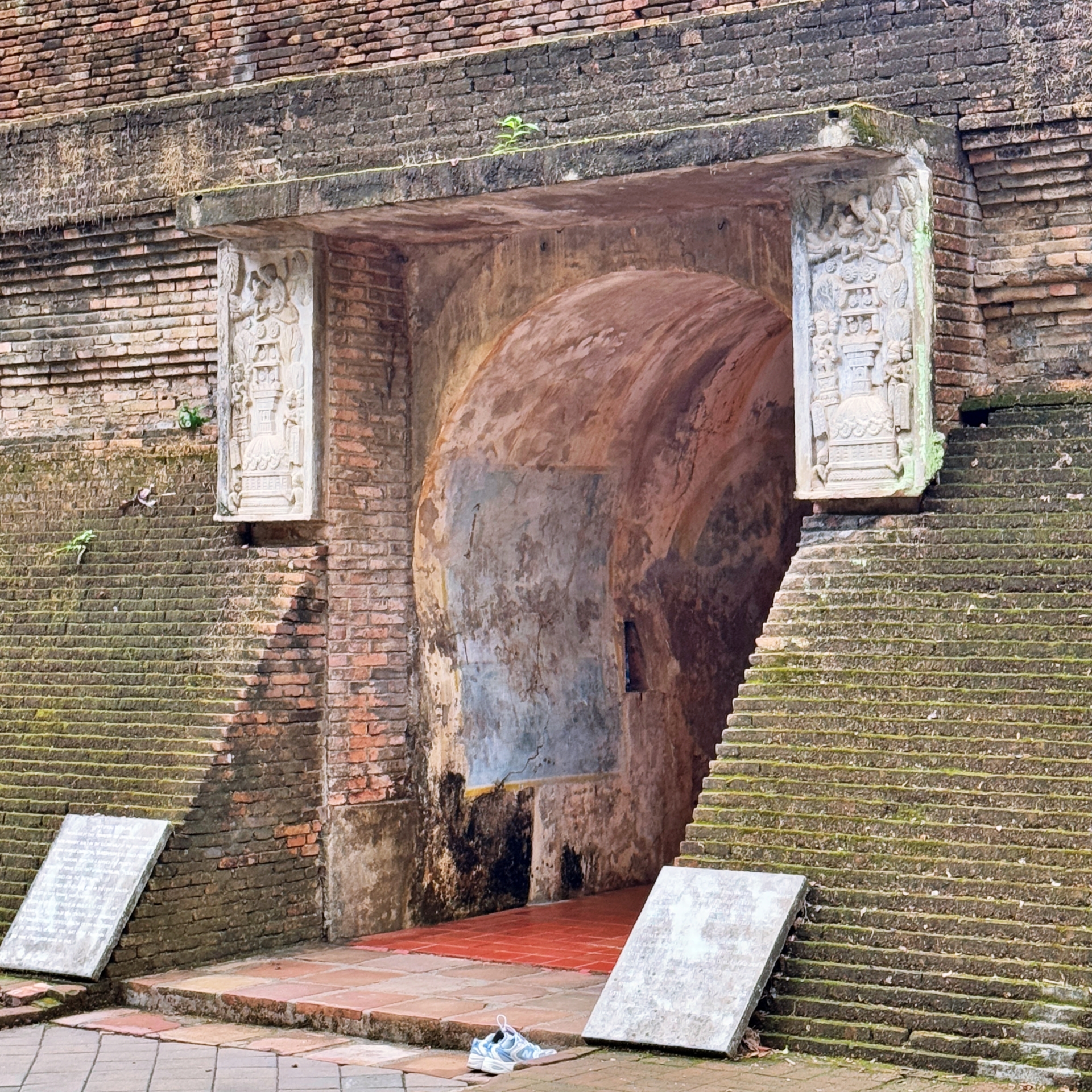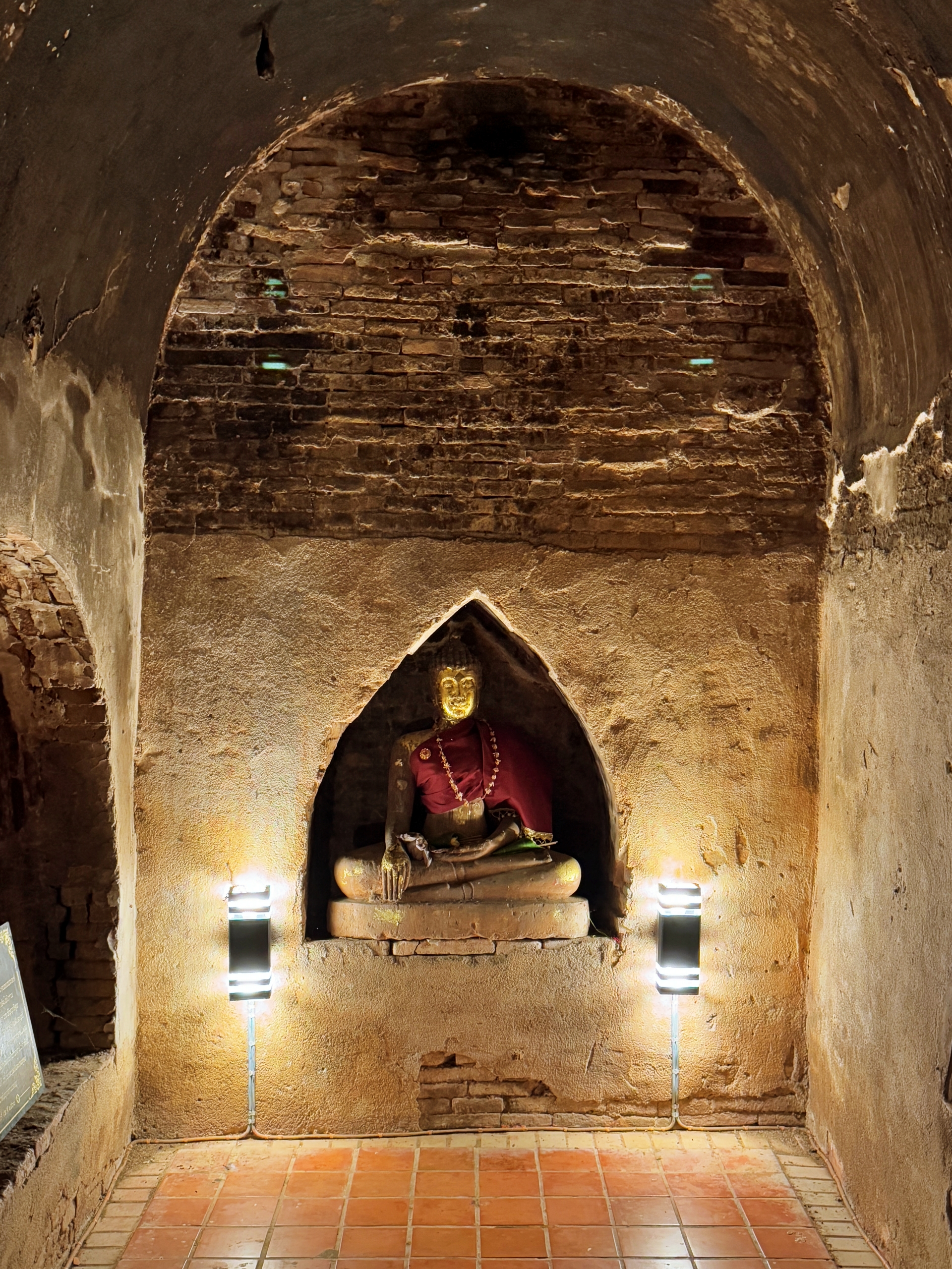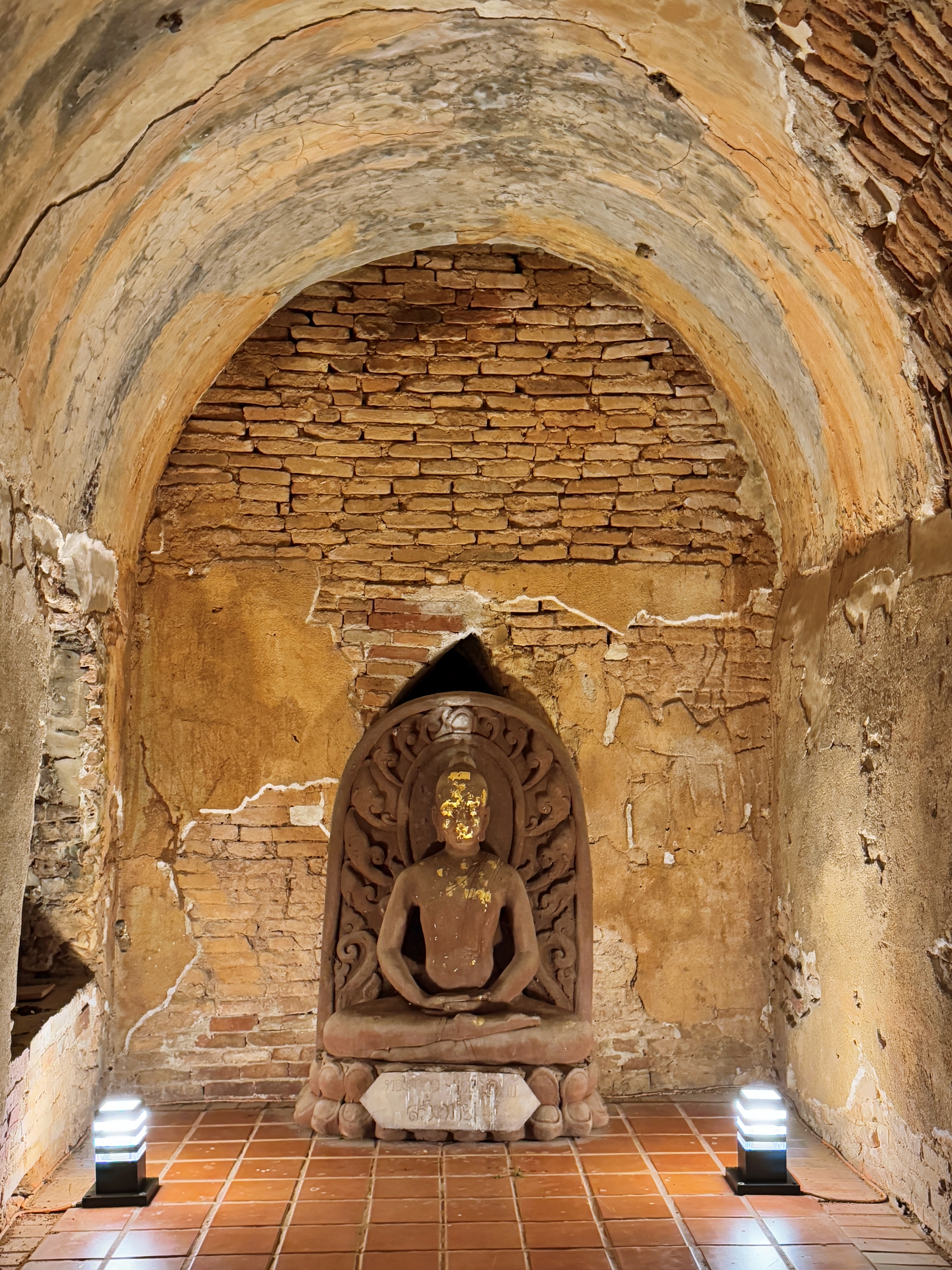 조용한 사찰 중앙에는 수코타이 양식의 탑이 기단 위에 서 있다. 동굴사원을 나와 가파른 계단을 올라가면 불탑이 나타난다.