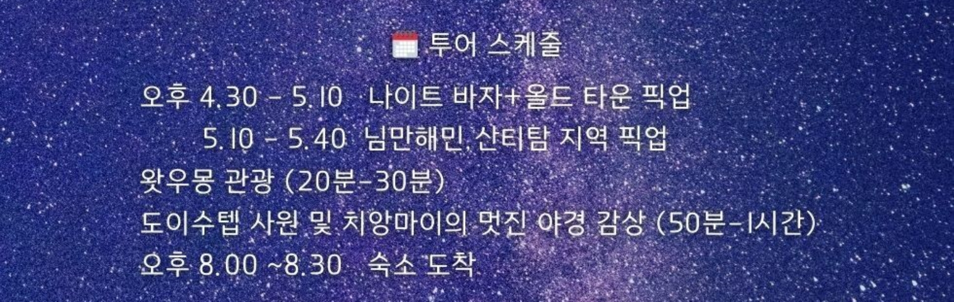 택시나 그랩을 부르면 더 비용이 나오므로 투어 프로그램이 더 경제적이다. 거기다 가이드가 있어 설명을 함께 들으면서 짧은 시간에 핵심 코스를 둘러 볼 수 있어 좋았다. 그래서 개인적으로 '왓 프라탓 도이수텝' 관광은 투어 프로그램을 추천한다.