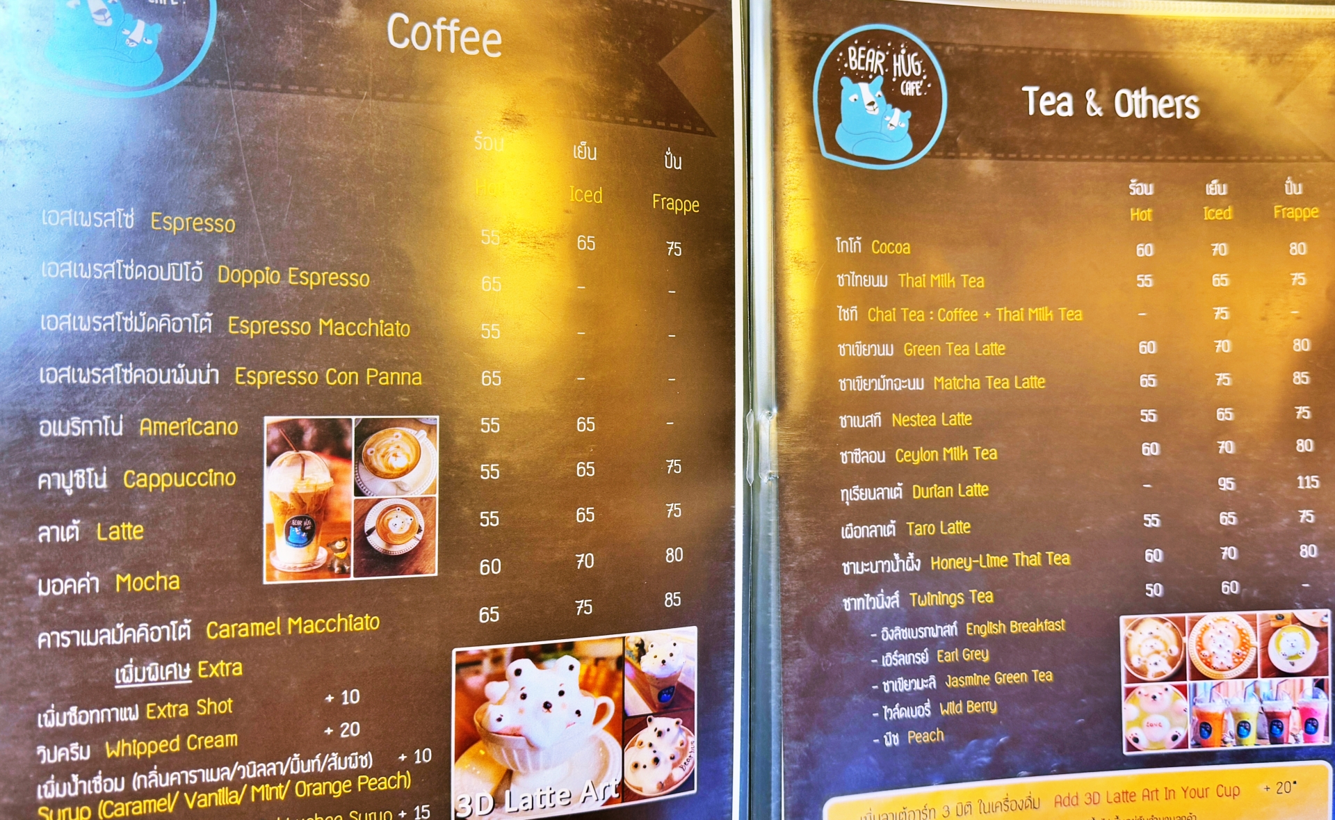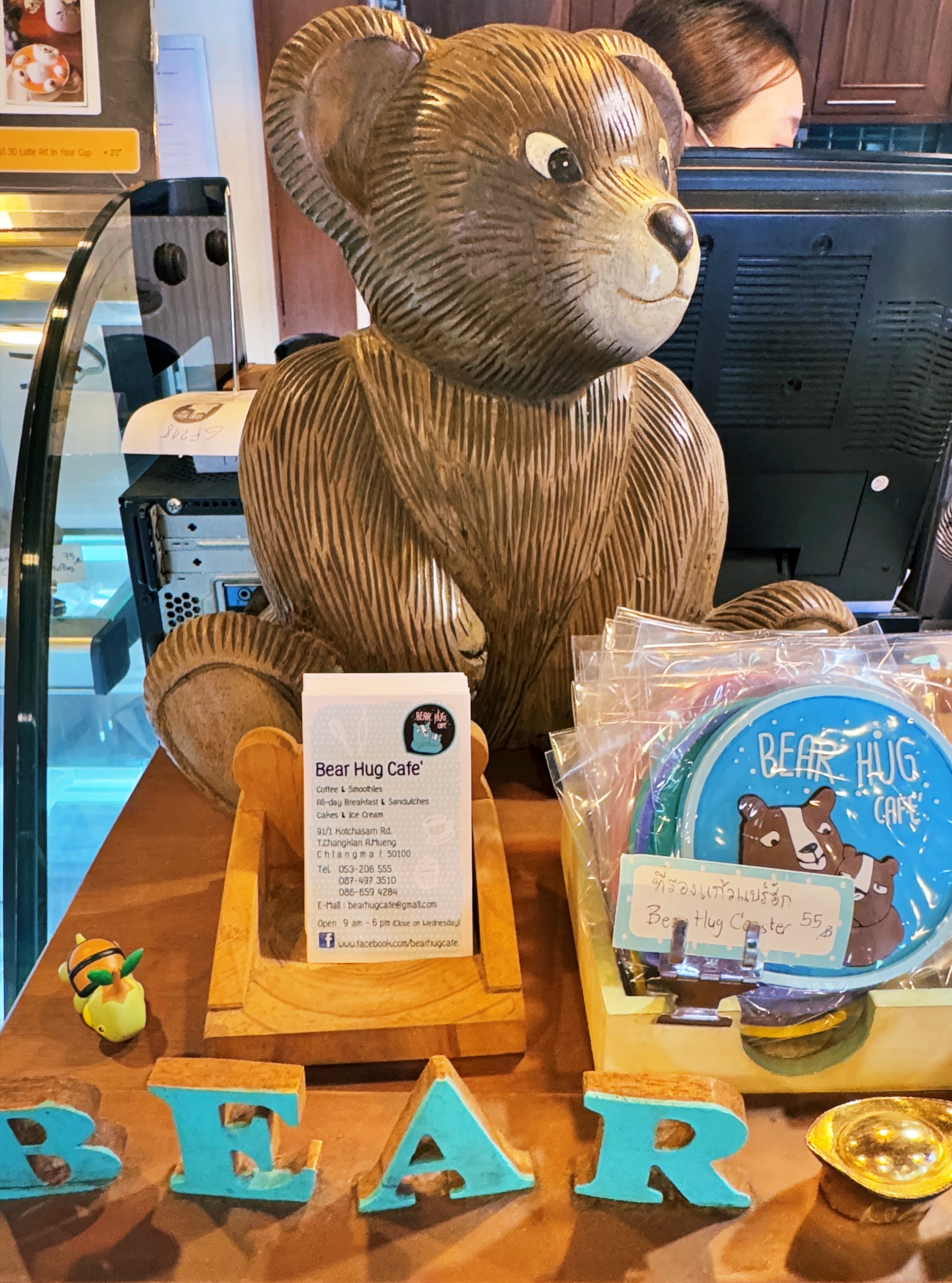 'Bear Hug Cafe'는 구글 지도에 리뷰를 보고 찾아간 카페이다. 곰돌이 콘셉으로 꾸며진 카페이고 3D아트가 유명한 곳이다. 음료를 주문한 후 20바트을 추가하면 음료 위에 곰돌이 모양의 3D라떼아트를 올려준다. 분위기도 괜챦고 먹기 아까운 곰돌이 모양의 색다른 커피를 마실 수 있어 좋은 곳이다.
