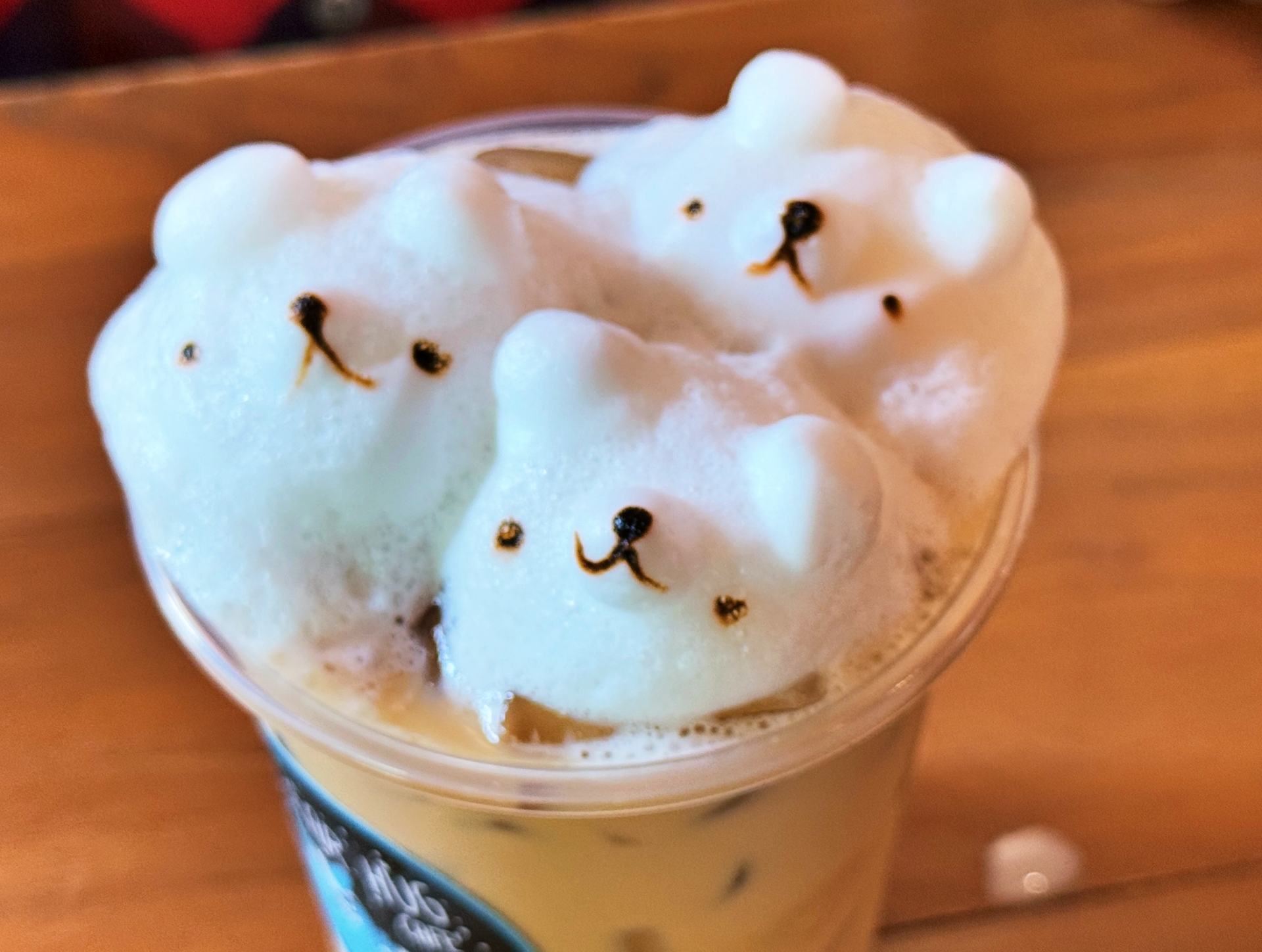 음료를 주문한 후 20바트(850원) 을 추가하면 음료 위에 곰돌이 모양의 3D라떼 아트를 올려준다. 굉장히 귀엽고 신기하기까지 하다. 우리돈 850원만 추가하면 되니 커피 주문시 꼭 3D라떼 아트를 추가해서 주문하시길.