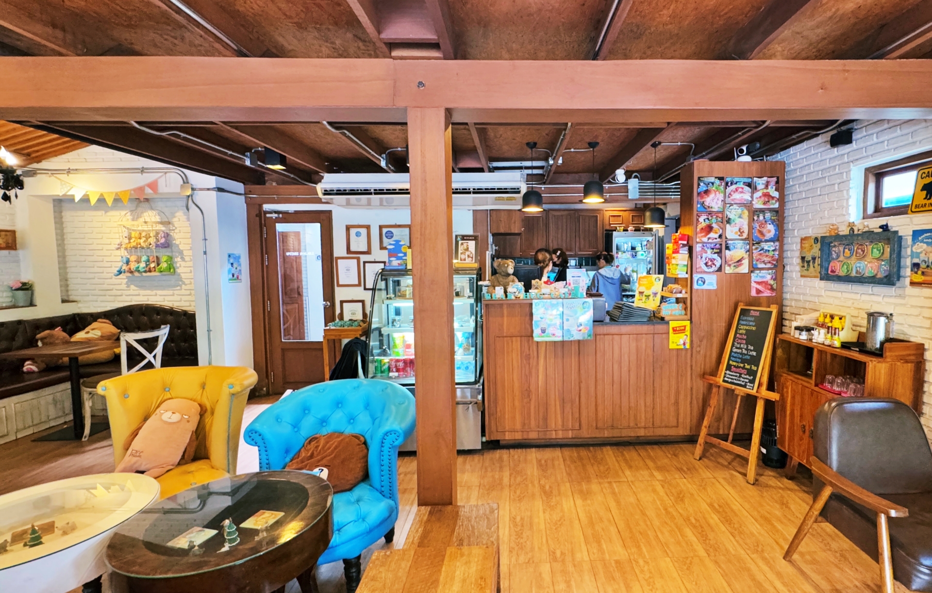 'Bear Hug Cafe'는 곰돌이 콘셉으로 꾸며지 카페인데 인형은 물론 쿠션, 가구, 액자 등도 모두 곰돌이 컨셉으로 꾸며져 있어 아기자기한 맛이 있다.