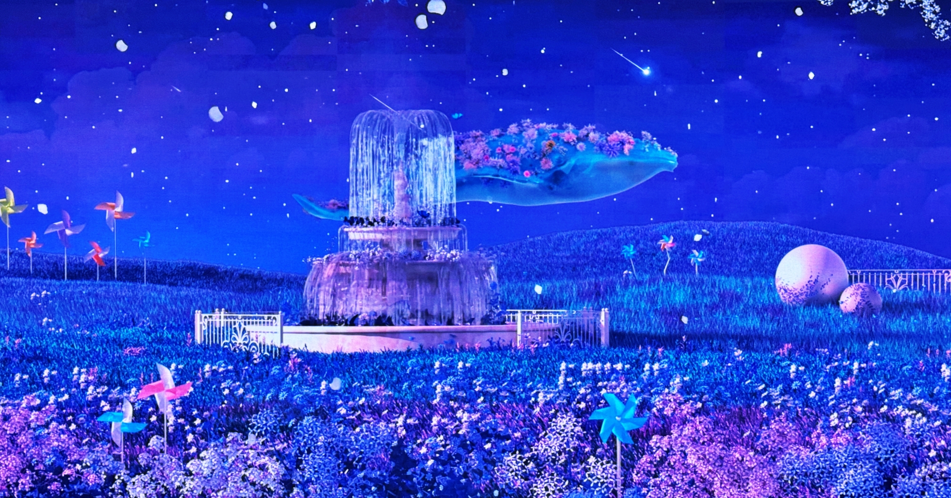 디지털 식물과 생명체로 가득찬 가상정원의 낮과 밤. 그 속을 자유롭게 유영하는 어미고래와 새끼고래의 움직임에 따라 환상의 정원을 거닐어보세요.