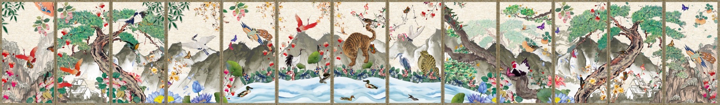 호랑이 한 마리가 달려 나가며 병풍 속 세상에 생명력을 불어넣습니다. 가장 한국적인 디지털 병풍으로 한국적 정서를 새롭게 조명하여 색다른 예술경험을 제공합니다.