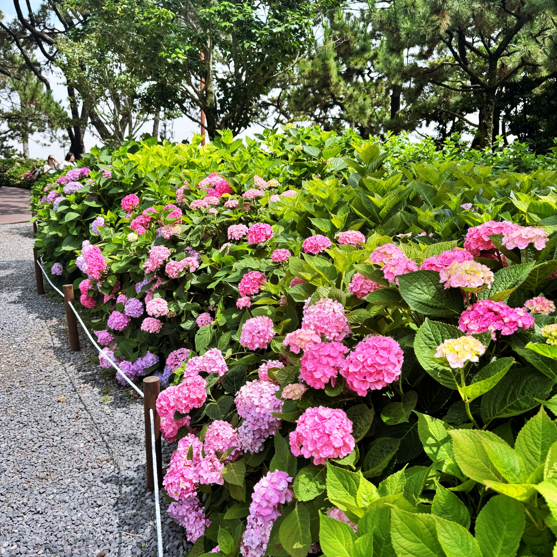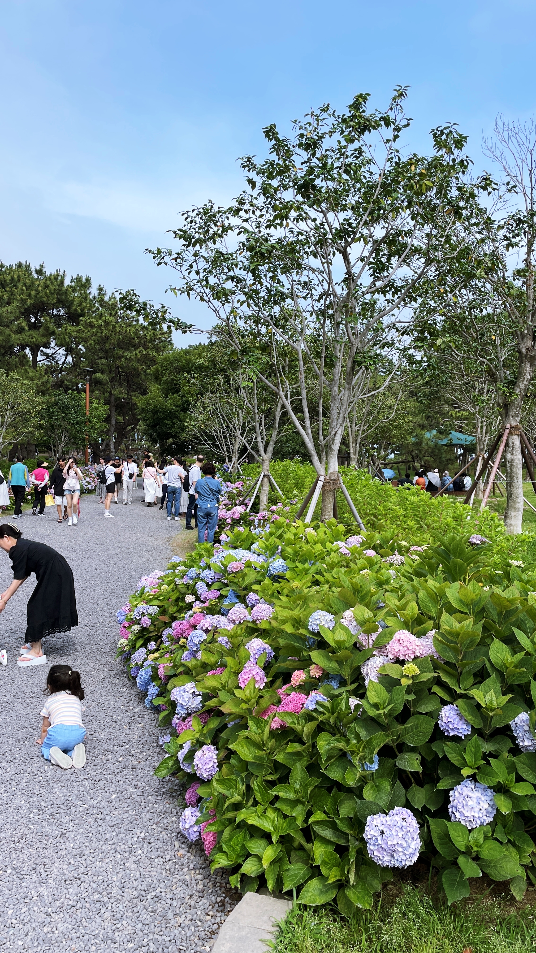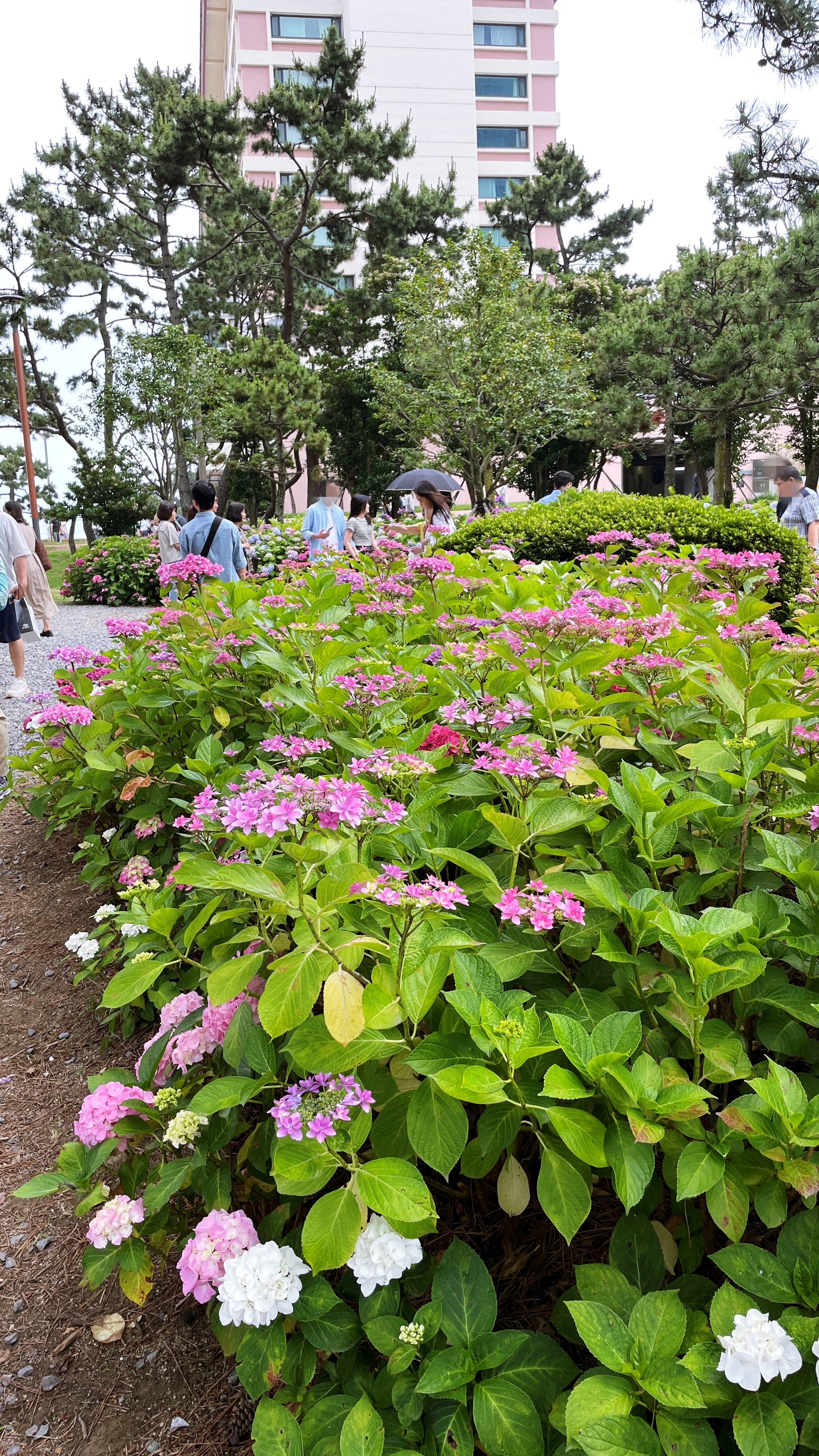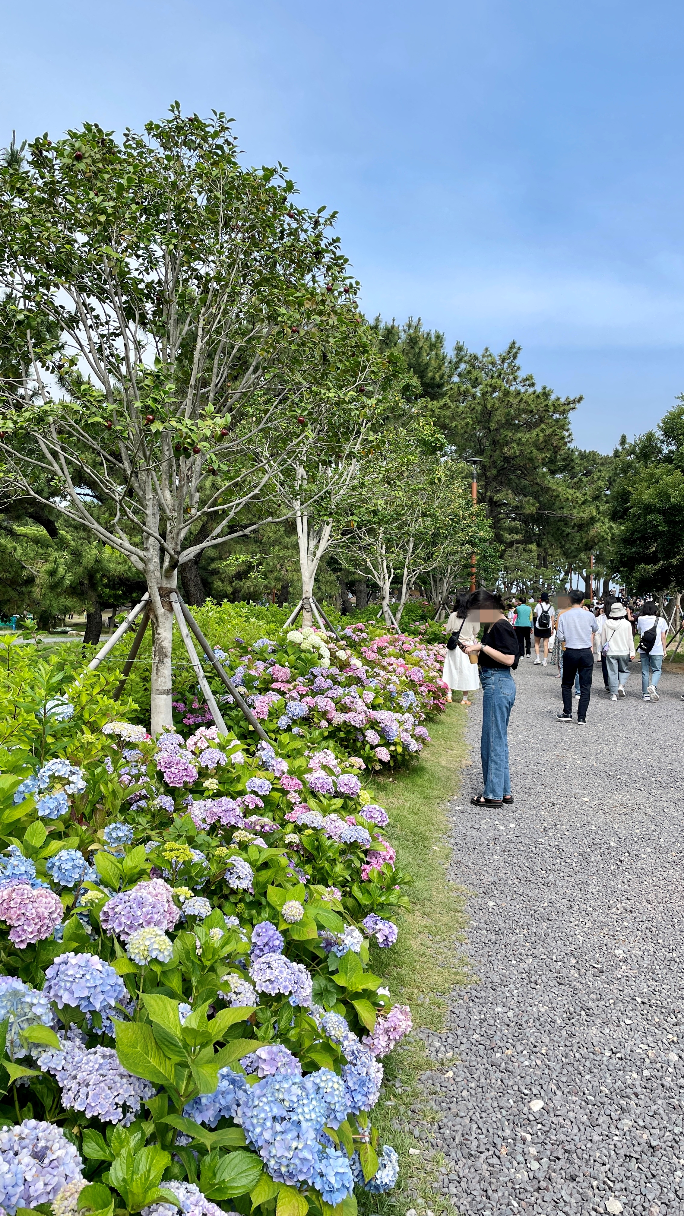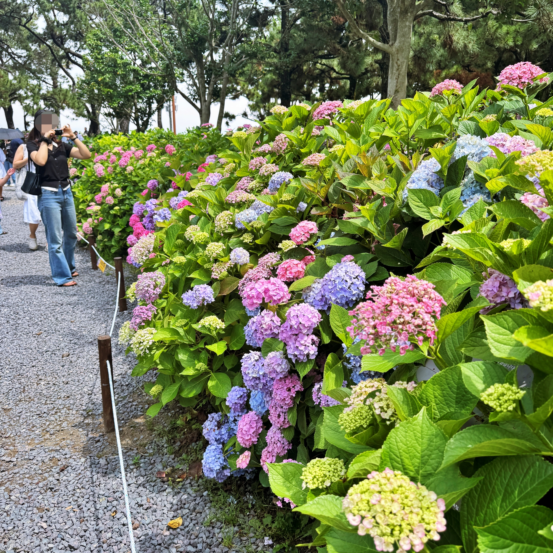 수국단지 뒤로 바다가 보이고, 머리 위 소나무들이 그늘을 만들어 주는 이곳은 이미 많은 사람이 찾는 힐링명소가 됐다. 다양한 색깔과 종류의 수국 꽃길은 걷다보면 부산의 대표적 수국명소인 태종대 태종사 못지 않다.