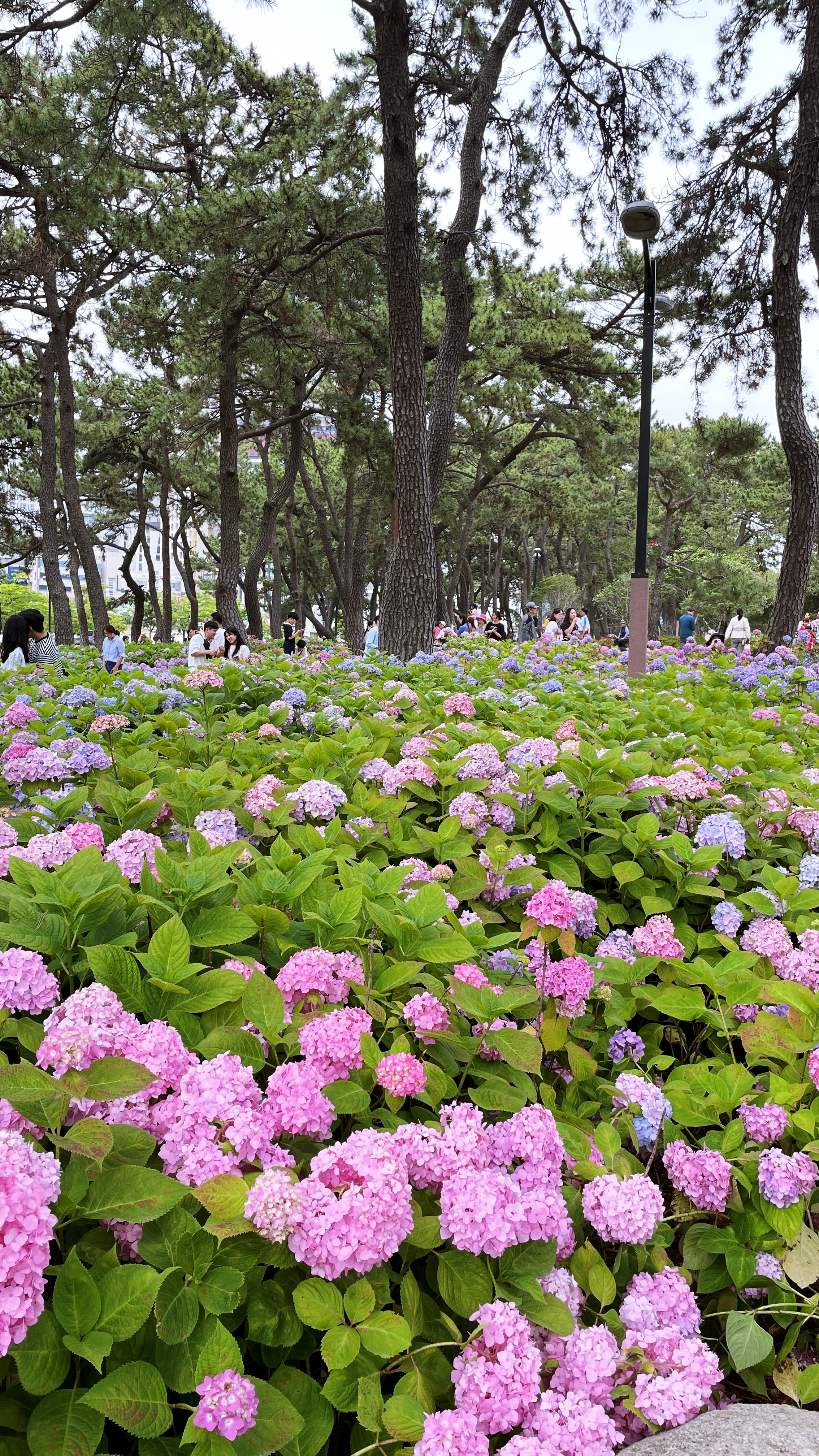 해운대 송림공원은 특히 보라, 분홍, 파랑, 하양 등 정말 다채로운 빛깔의 수국을 볼 수 있으며 수국 종류도 장미수국, 엔들레스 썸머, 미국 수국 등 이색적인 수국들이 많다. 그래서 더 보는 재미가 있다.