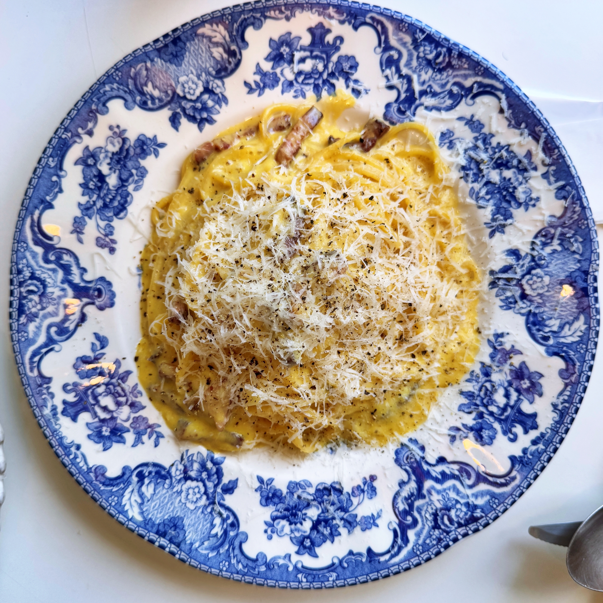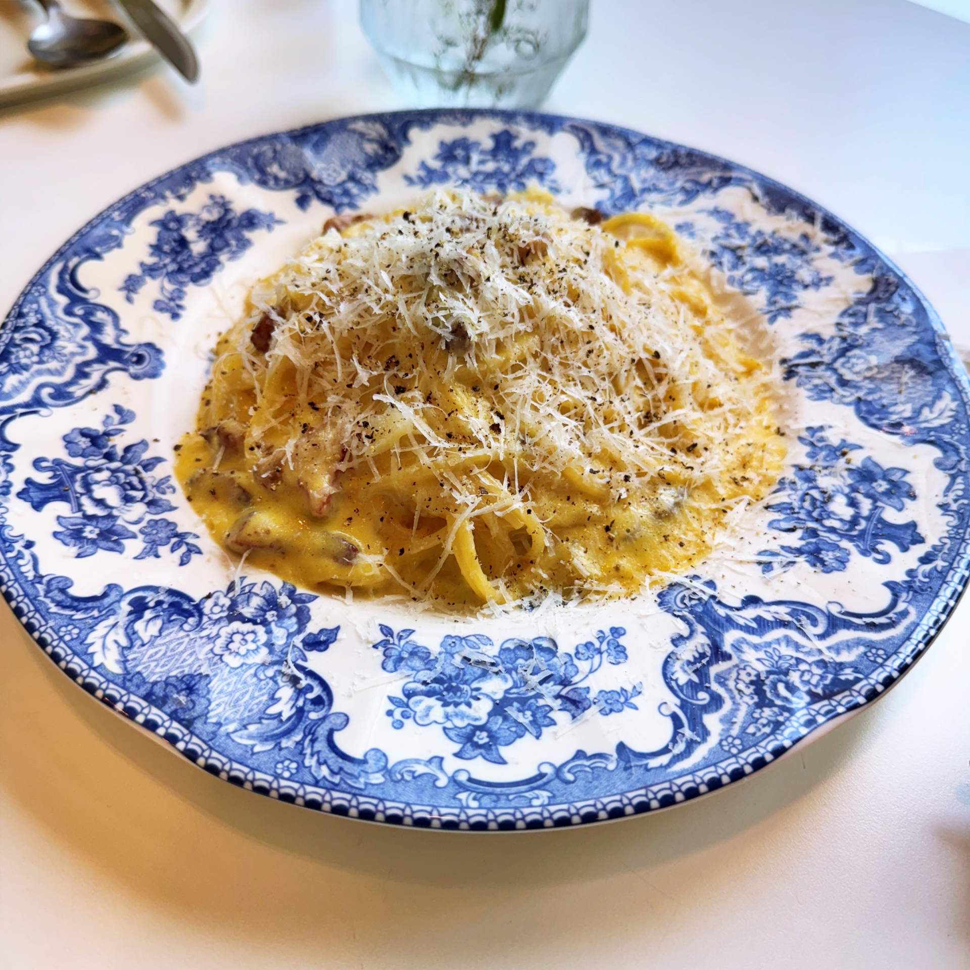 판체타, 노른자, 페노리노, 후추로 맛을 낸 로마식 까르보나라. 특징은 크림베이스가 아니라 달걀 노른자만을 사용해 파스타를 만든다는 것이다. 그래서 일반 카르보나라에 비해 걸쭉하면서 고소한 맛이 강하다. 먹어보면 달걀 노른자 맛을 느낄 수 있다. 조금 독특하고 색달라 이 집에서 인기있는 메뉴중 하나인 듯.