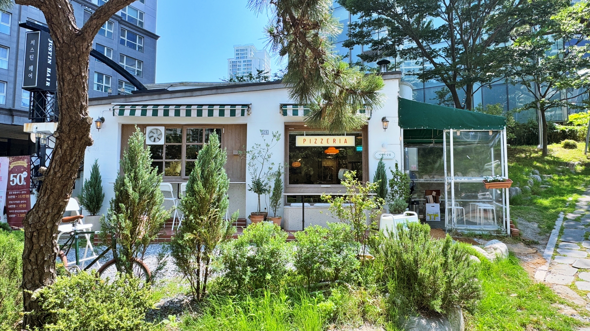식당건물은 작은 크기지만 아기자기하고 예쁘다. 딱 요즘은 MZ세대 감성이다. 전체적인 분위기는 이태리 어느 조그만 마을에 와 있는 듯한 느낌. 이 식당 건물만 작고 단층일뿐 주위는 초고층 아파트들로 둘어싸여 있어 더 이 건물이 돋보이는 줄도 모르겠다. 식당 앞에는 작은 화단이 있고 여기저기 조그만 소품들도 예쁘게 장식되어 있다. 야외 테라스 좌석도 있다.