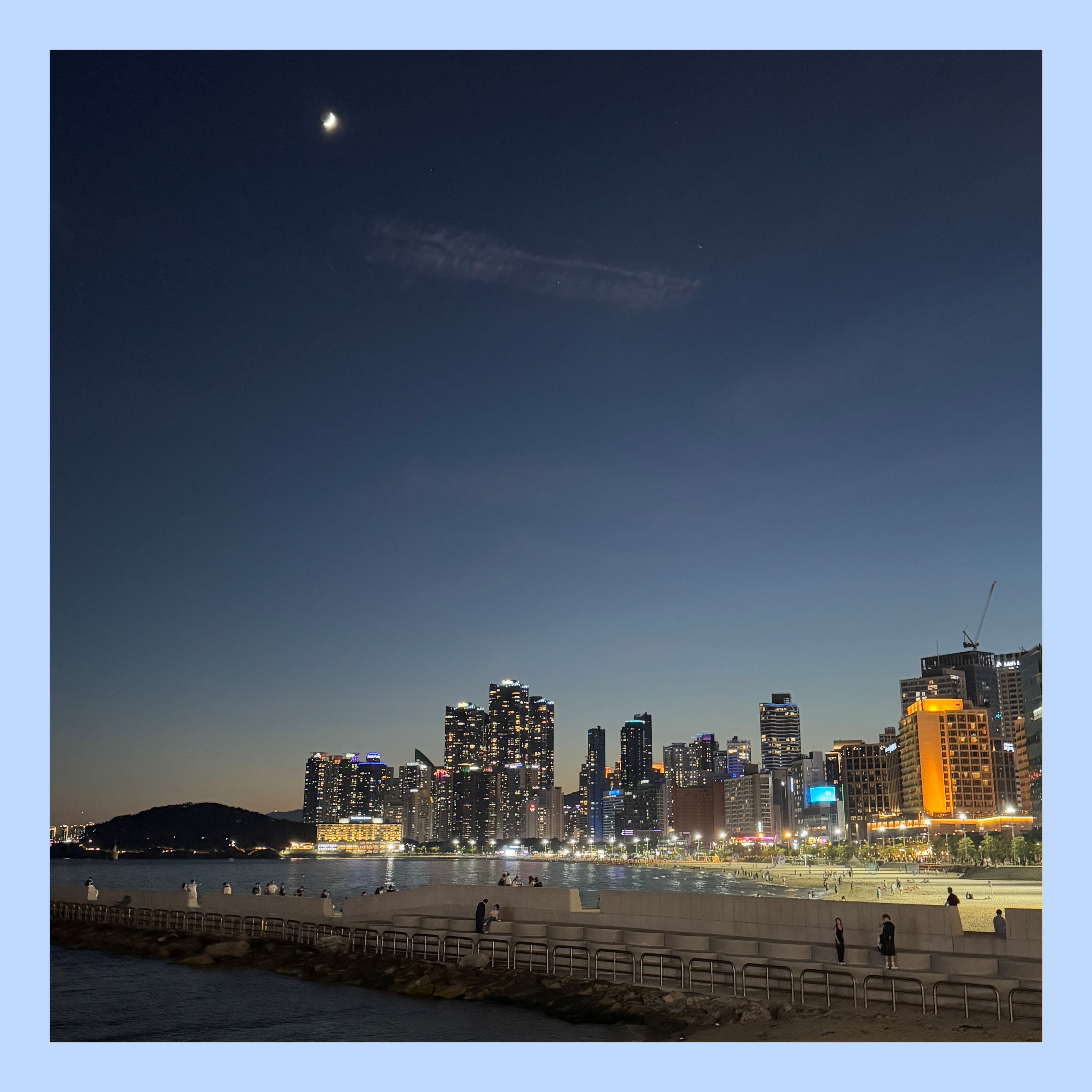 휴지통 [부산] 해운대의 밤은 언제 봐도 로맨틱하다 by 想像 2025. 7. 1. 늘 마주 대하고 있는 해운대해수욕장이지만 해운대의 밤은 늘 봐도 로맨틱하다. 6월 30일 마지막날 산책하다 아이폰으로 찍어 본 사진. 공유하기 게시글 관리 想像의 음악라운지 저작자표시 비영리 변경금지 (새창열림) 관련글 [부산] 뫼밀집 (새로 오픈) : 해운대 마린시티의 국내산 메밀100% 메밀전문점 (평점 4.2) 태국 방콕 - 치앙마이 8박 10일 여행 (상세 여행 일정 및 코스) [부산] 해운대의 숨은 포토 스팟, 미포 언덕길 [부산] 박옥희 할매집원조복국 : 50년 전통 해운대 미포의 유명한 복국집 (평점 4.5)