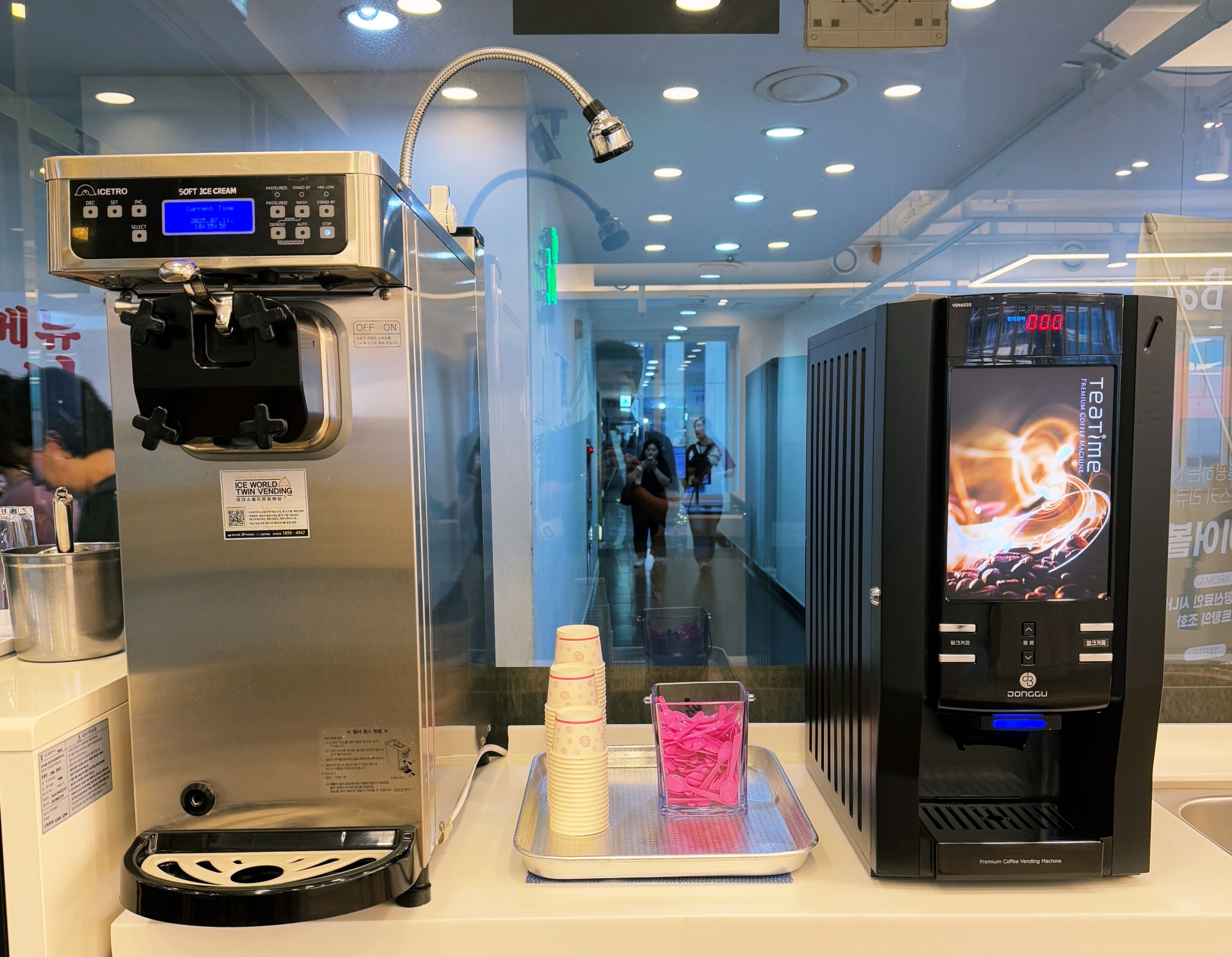 식사후에는 디저트로 아이스크림이나 커피를 먹을 수 있는데 무료이다.