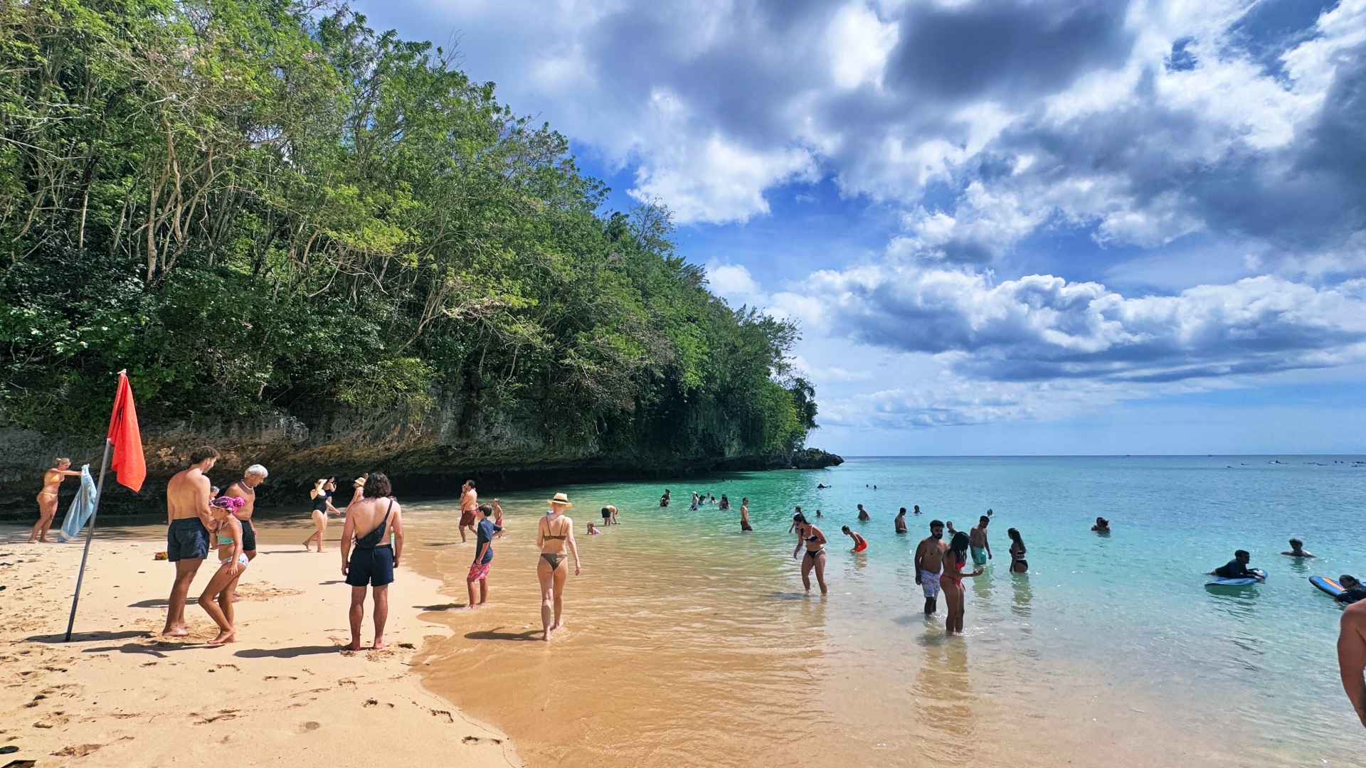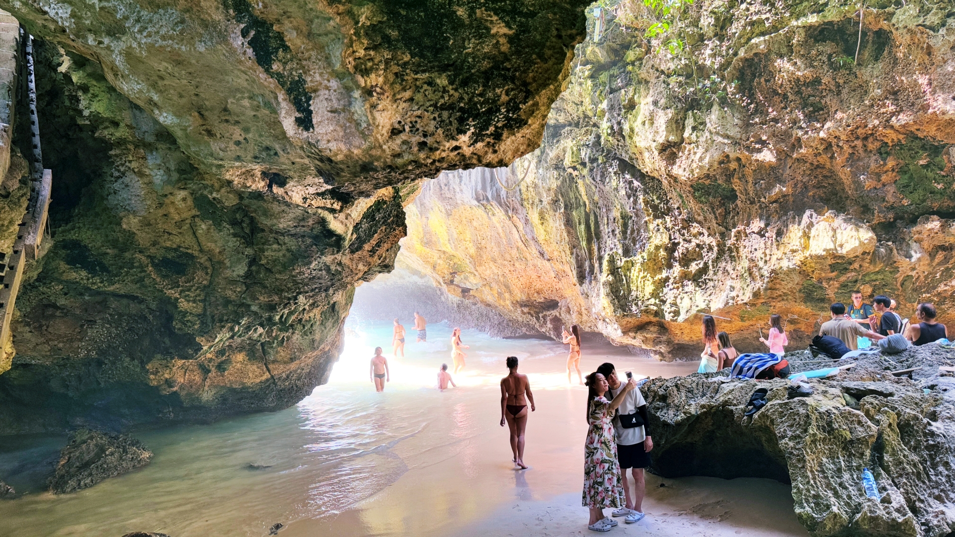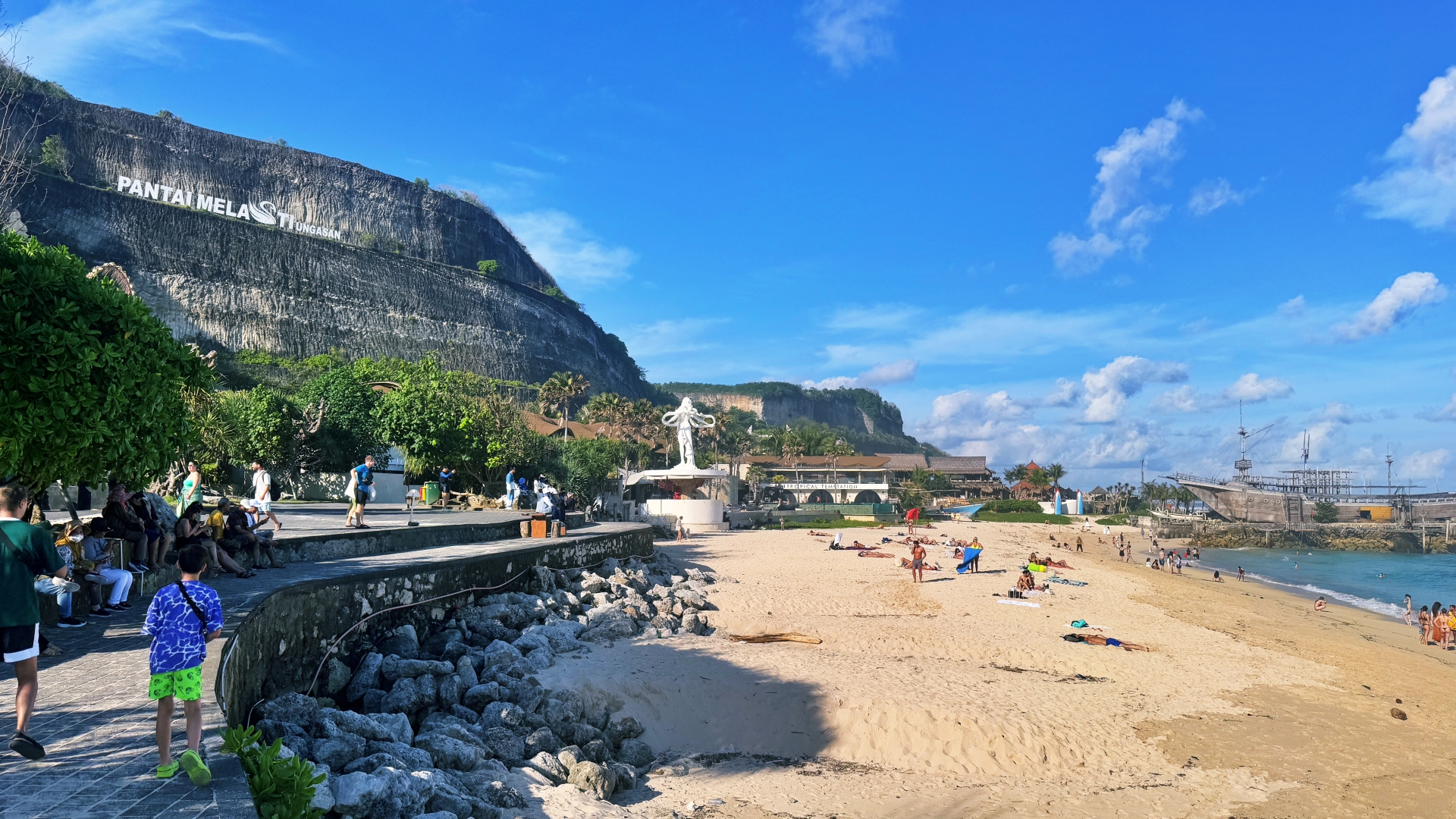발리 남부에 위치한 해변으로, <짠내투어>에 소개되며 한국인 여행객들에게도 인기를 얻고 있는 핫플레이스다. 좁고 가파른 계단을 내려가면 만날 수 있는 에메랄드빛 바다와 하얀 모래사장이 마치 보물이 숨겨져 있는 듯한 느낌을 받을 수 있는 곳으로, 자연 석회암 사이로 보이는 푸른 바다를 배경으로 예쁜 기념 사진도 남길 수 있다. 아름다운 발리 바다를 향해 절벽을 따라 많은 카페 및 식당들이 있는곳이라서 낮의 청량한 모습은 물론, 해 질 녘의 붉게 물든 선셋 보기에도 좋은곳이며, 바다보면서 식사하거나, 릴렉스 하기 좋은 곳이다. 파도가 높고 서핑 포인트가 많아 서퍼들에게도 인기 있다.