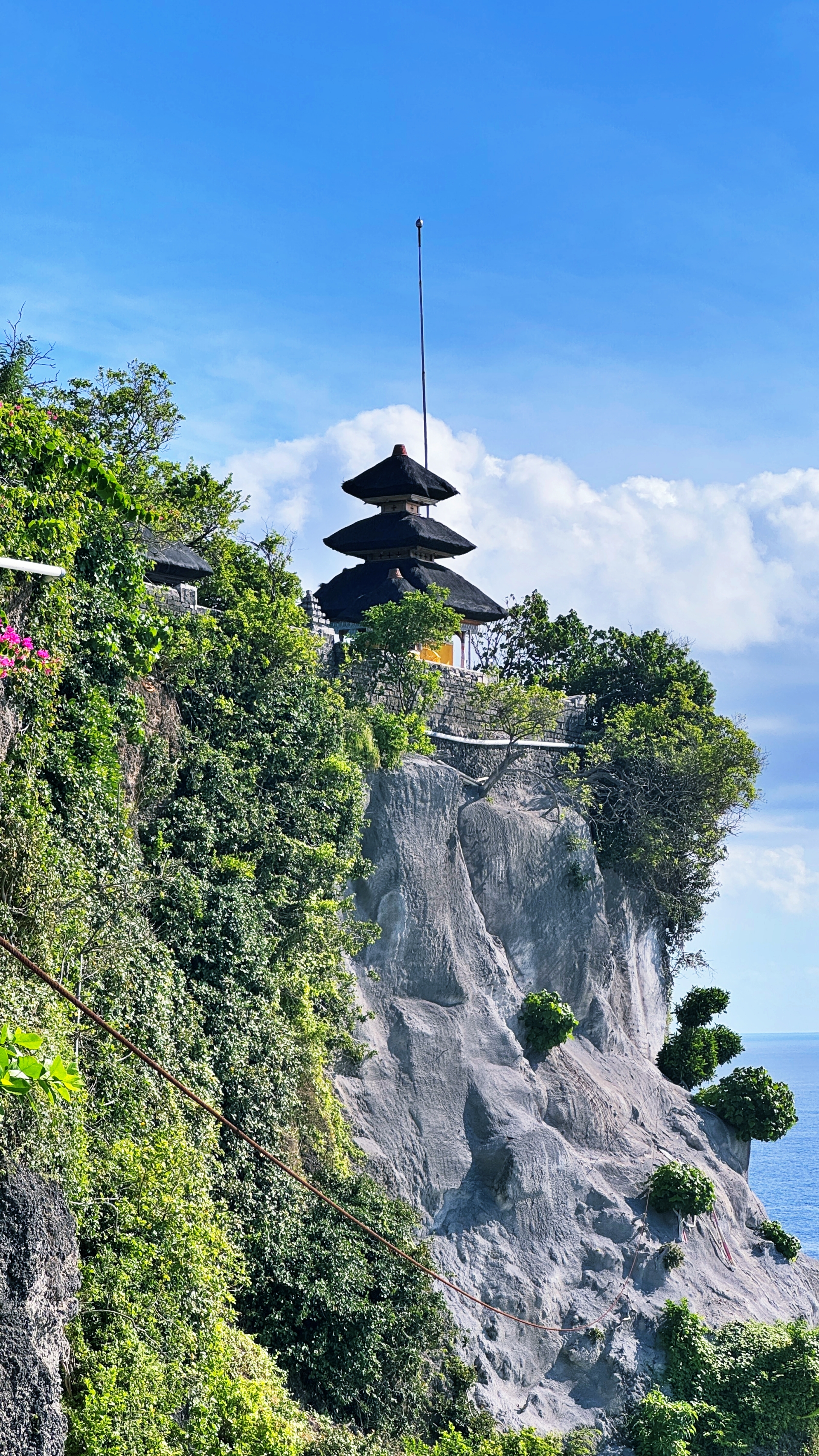 인도네시아 발리의 사원 중 독특함으로 유명한 사원 2가지를 꼽으라면 타나롯 사원과 울루와뚜 사원이다. 울루와뚜 사원은 약 11세기 경에 지어진 것으로 알려진 오래된 사원이자 바다의 신을 모시는 힌두사원. 인도네시아어로 땅끝을 뜻하는 '울루(Ulu)'와 돌과 바위를 의미하는 '와뚜(Watu)'가 합쳐진 이름에서 드러나듯, 인도양의 푸른 바다를 내려다볼 수 있는 70m 높이의 절벽 끝에 자리하고 있다.