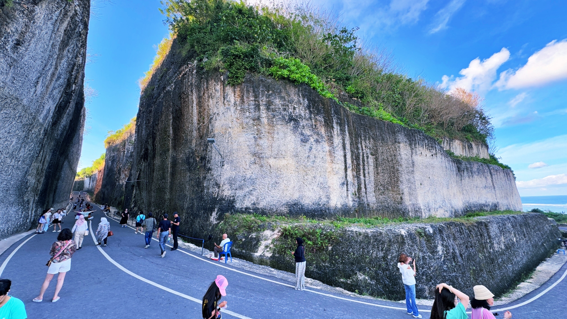 2022년 12월에 대중에게 공개된 따나 바락 (Pantai Tanah Barak). 타나 바락의 Tanah는 땅과 토지를, Barak은 거칠고 바위가 많은 땅이라는 뜻이란다. 석회암 절벽을 깍아내 길을 만든곳으로 , 빤다와 비치까지 연결되는 해안 도로이다. 하얀톤의 높은 석회암절벽과 파아란 바다가 어울려져서 요즘 인스타 포토존으로 유명해진곳이다.
