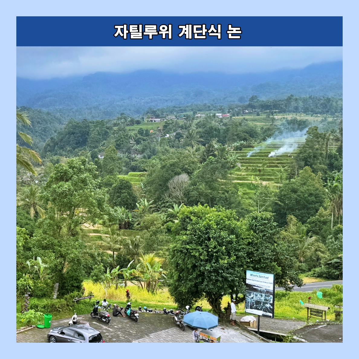 자틸루위 계단식 논(Jatiluwih Rice Terraces)은 인도네시아 발리섬 중심 간웅 바투카루 인근에 위치한 아름다운 계단식 논밭으로, 발리의 자연 경관을 대표하는 명소 중 하나이다. 이 지역은 유네스코 세계문화유산에 등재되어 있으며, 특히 9세기부터 이어져 내려오고 있는 전통적인 농업 방식인 수박(Subak)관개 시스템을 보존하고 있어 중요한 문화적 가치를 지니고 있다.수박(Subak)은 물의 흐름을 제어하여 논밭에 필요한 물을 분배하는 독특한 방식.