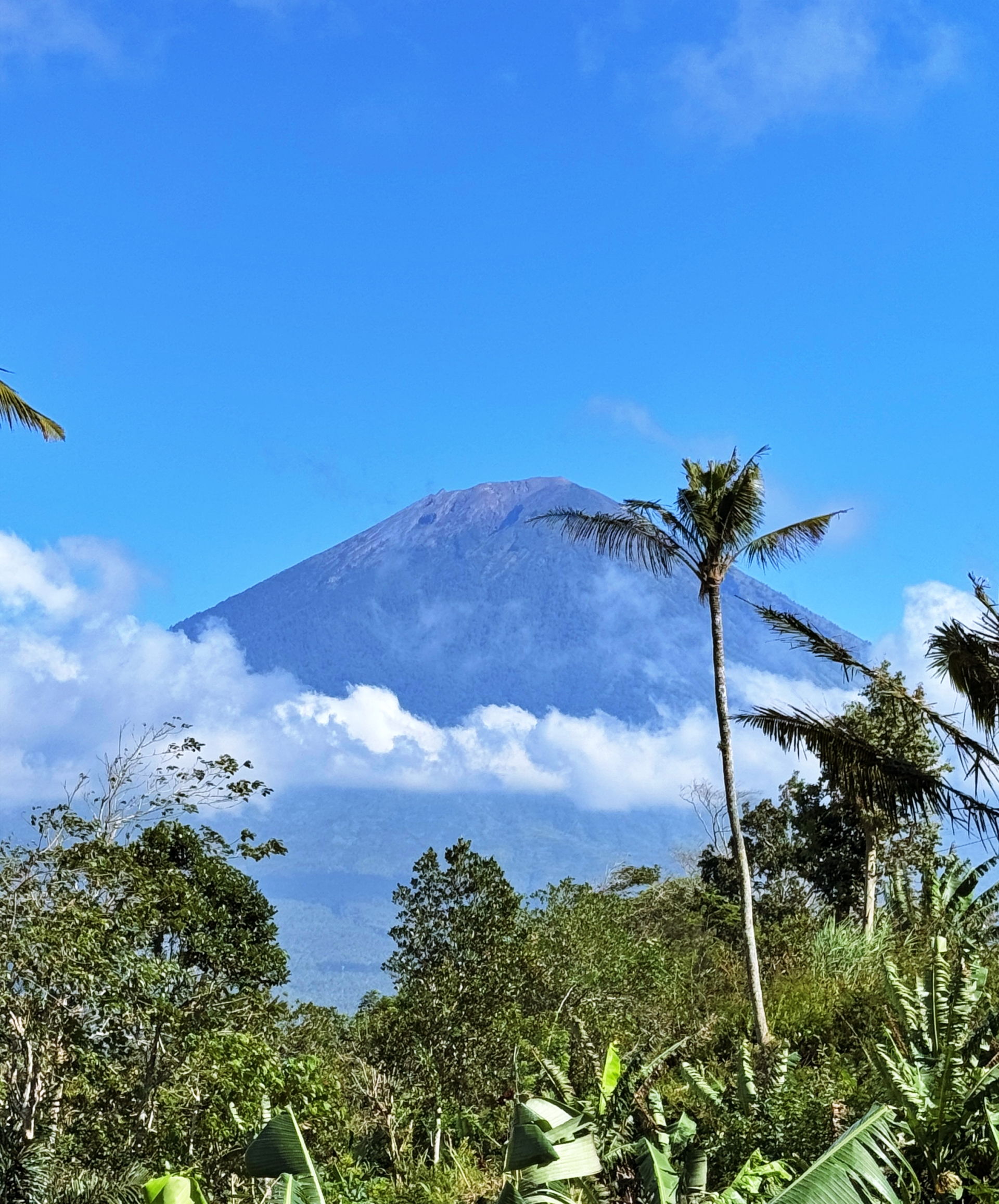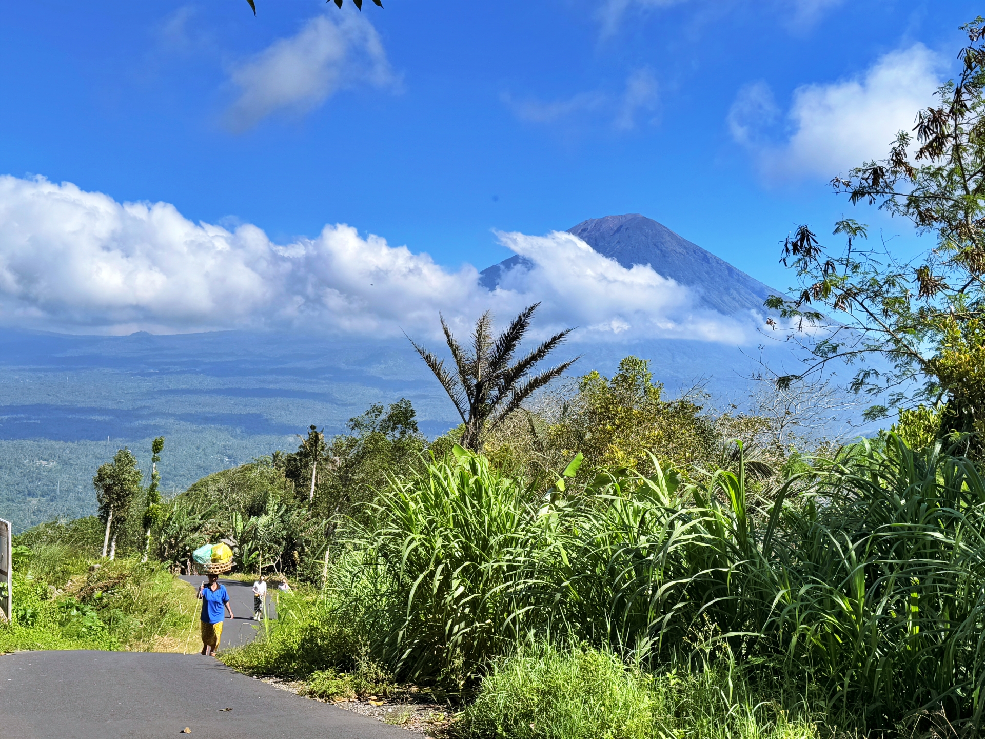 렘푸양 사원 앞에서 기다리면 오토바이가 와서 우리를 태우고 히든 뷰 렘푸양까지 간다. 히든 뷰 렘푸양까지 가는 길은 가파른 산길인데 걸어서 가기엔 조금 힘들듯. 가는 길에 보이는 풍경, 특히 아궁산 풍경이 너무 아름답다.