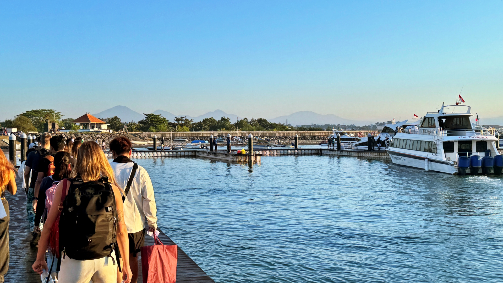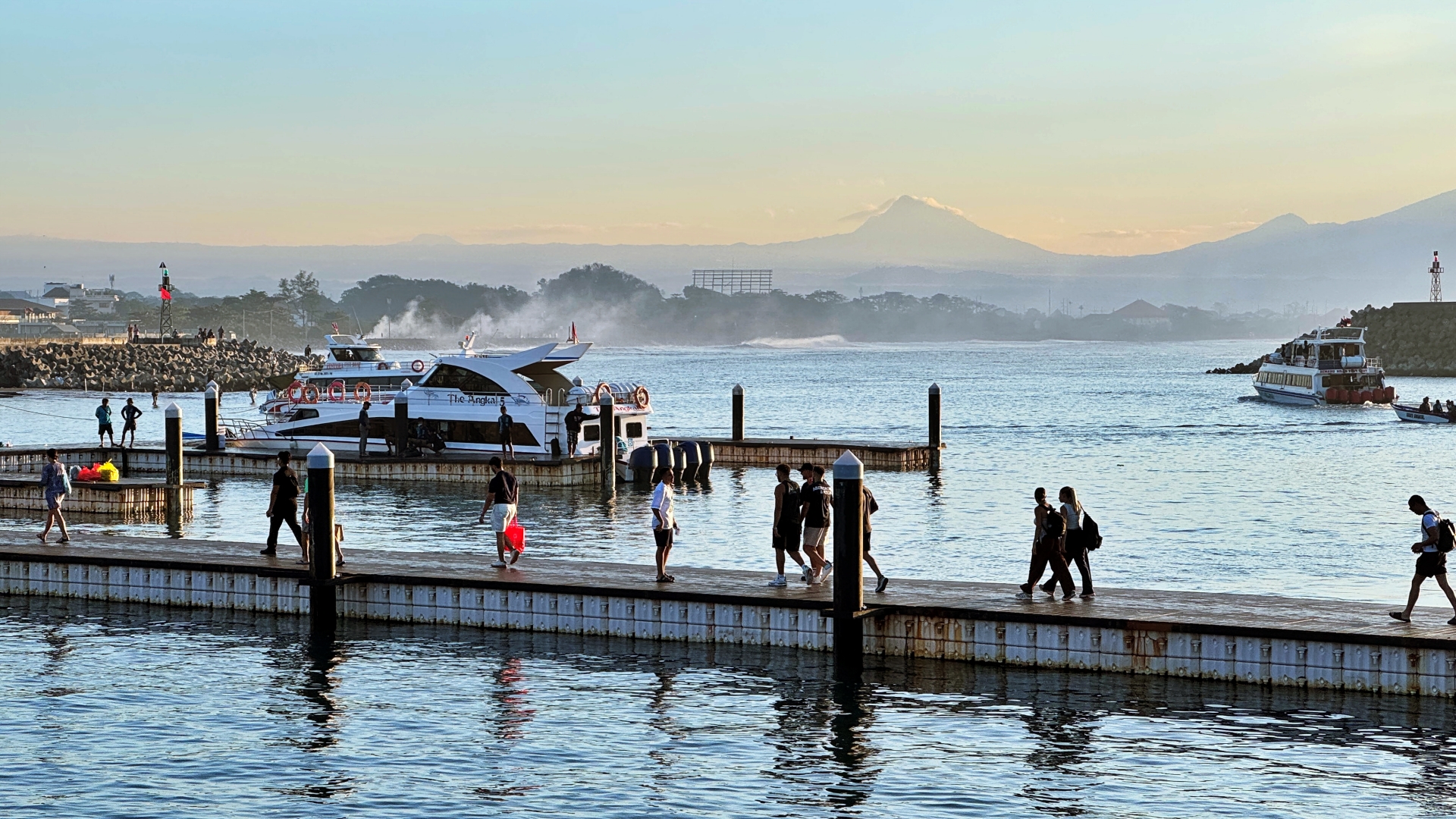Angkal Fast Boat 카운터에 앞에서 대기하다 7시경 Angkal Fast Boat의 안내에 따라 사누르 항 터미널로 이동해 패스트 보드에 탑승한다. 그리고 패스트 보트를 타고 누사 페니다 항구까지 가는 길에 보트 창을 통해 아름다운 발리 앞바다 파노라마 풍경을 감상하면서 40분간을 간다.
