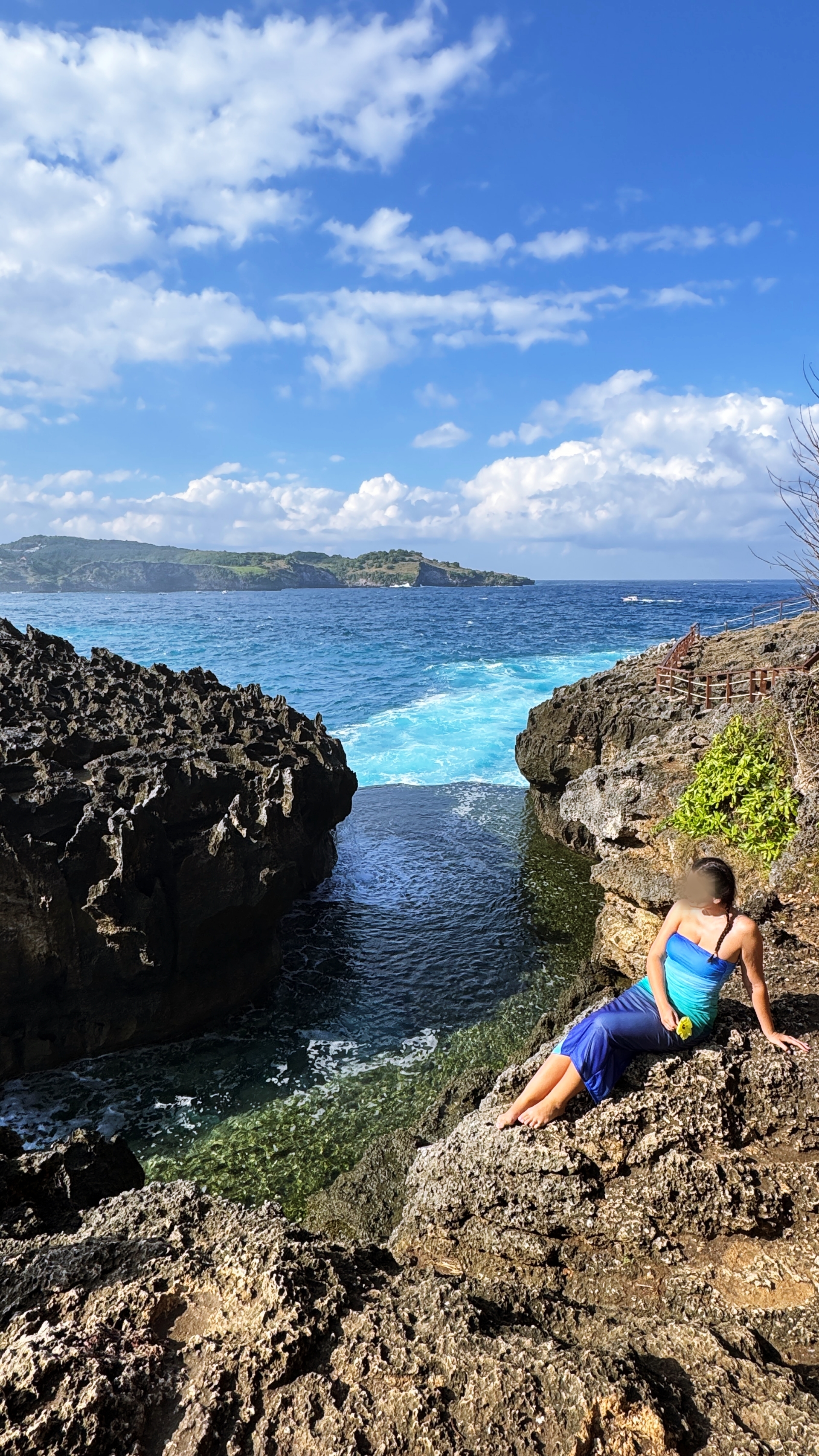 오른쪽으로 조금 더 가니 마침내 자연이 만든 천연 인피니티 풀인 엔젤스 빌라봉이 나옵니다. 바위 사이로 형성된 자연 풀장이 신기하기만 합니다. 그러나 이 날은 파도가 거칠게 몰아쳐 수영하기엔 굉장히 위험해 보였습니다. 수영하는 사람도 당연 없고요. 파도가 세다 보니 엔젤스 빌라봉 위쪽까지 바닷물이 올라가 다시 계곡처럼 엔젤스 빌라봉으로 바닷물이 떨어집니다.