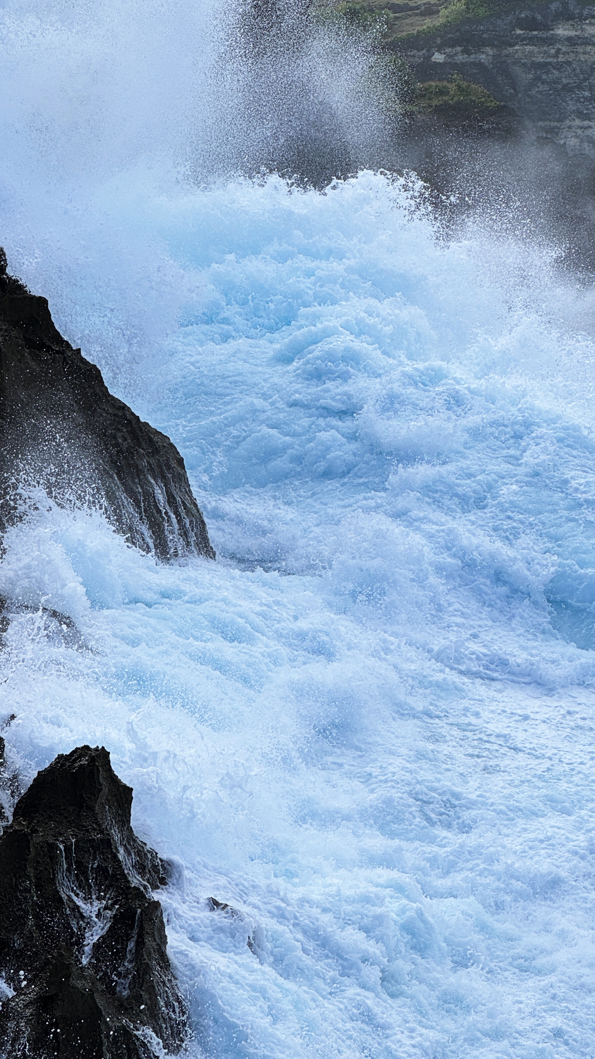 거대한 절벽 사이로 세차게 몰아치는 파도와 파도가 만들어 내는 하얀 포말, 그리고 에머럴드 바다색이 빚어내는 교향곡은 정말 환상적입니다. 자연의 위대함을 느낄 수 있는 대목입니다.