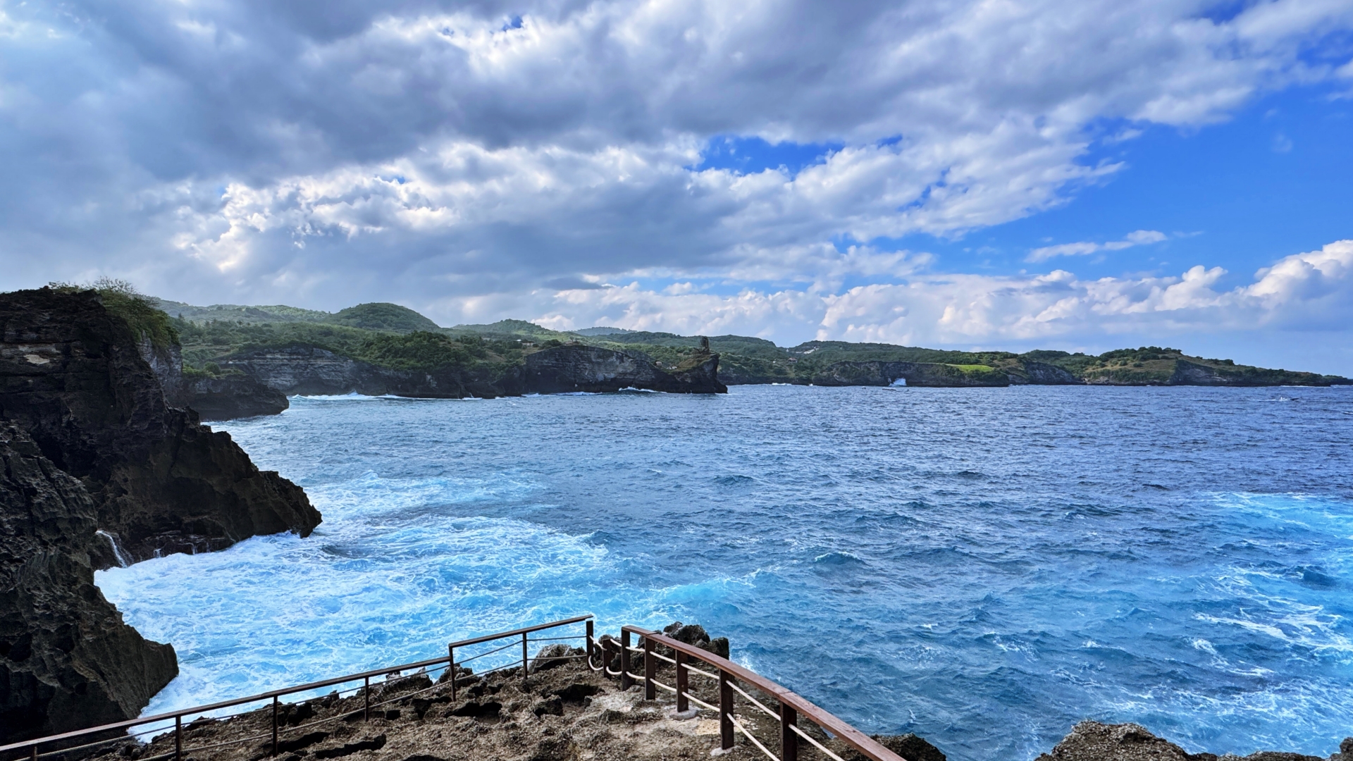 발리 사누르항에서 누사 페니다 선착장에 도착후 하선하면 보통 제일 먼저 찾는 곳이 엔젤스 빌라봉이다. 가장 가까운 위치에 있기 때문이다. 선착상에 내려 누사 페니다 관광을 시작하려면 먼저 누사 페니다 섬 입장료(입도세) 25,000루피아를 내야 한다. (누사페니다 입장료를 내었다고 해도 관광지마다 또 별도로 입장료 및 주차비를 내야 한다). 입장료를 내고 엔젤스 빌라봉으로 향한다. 처음에는 좁은 길이나마 포장도로였는데 엔젤스 빌라봉 가까이 가니 비포장도로로 바뀐다. 울퉁 불퉁한 도로를 달리다 보니 엉덩이가 아플 정도.