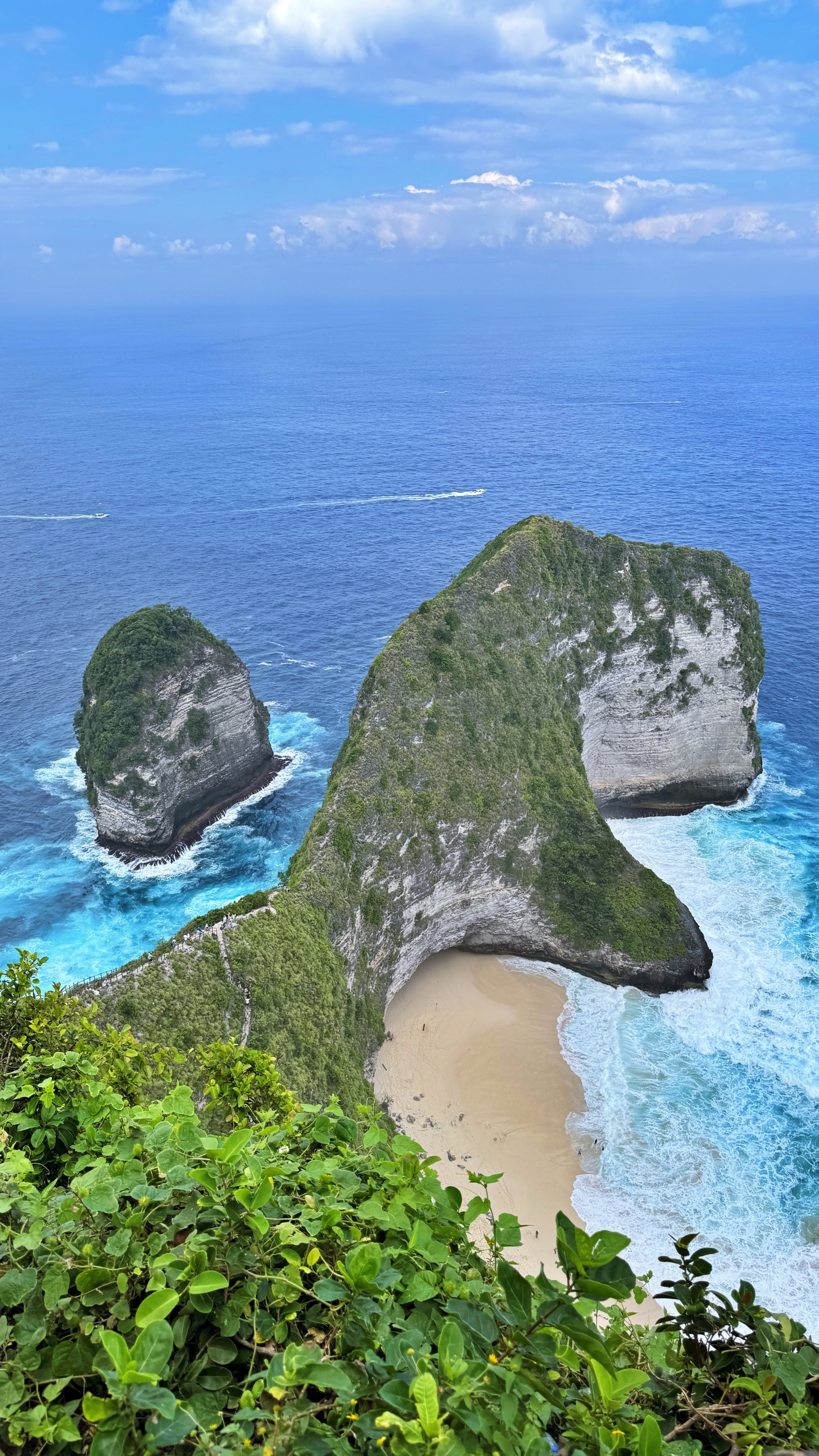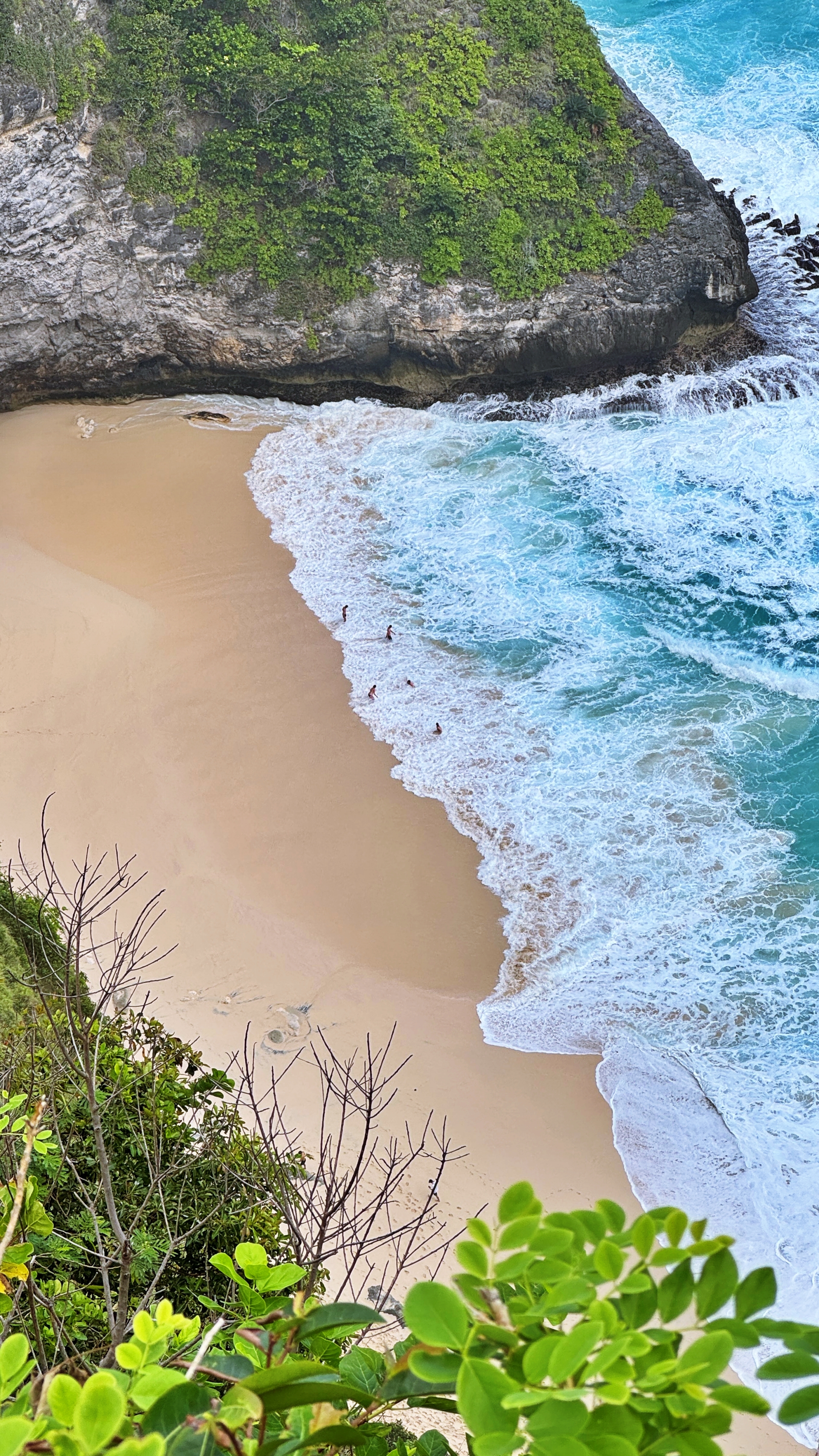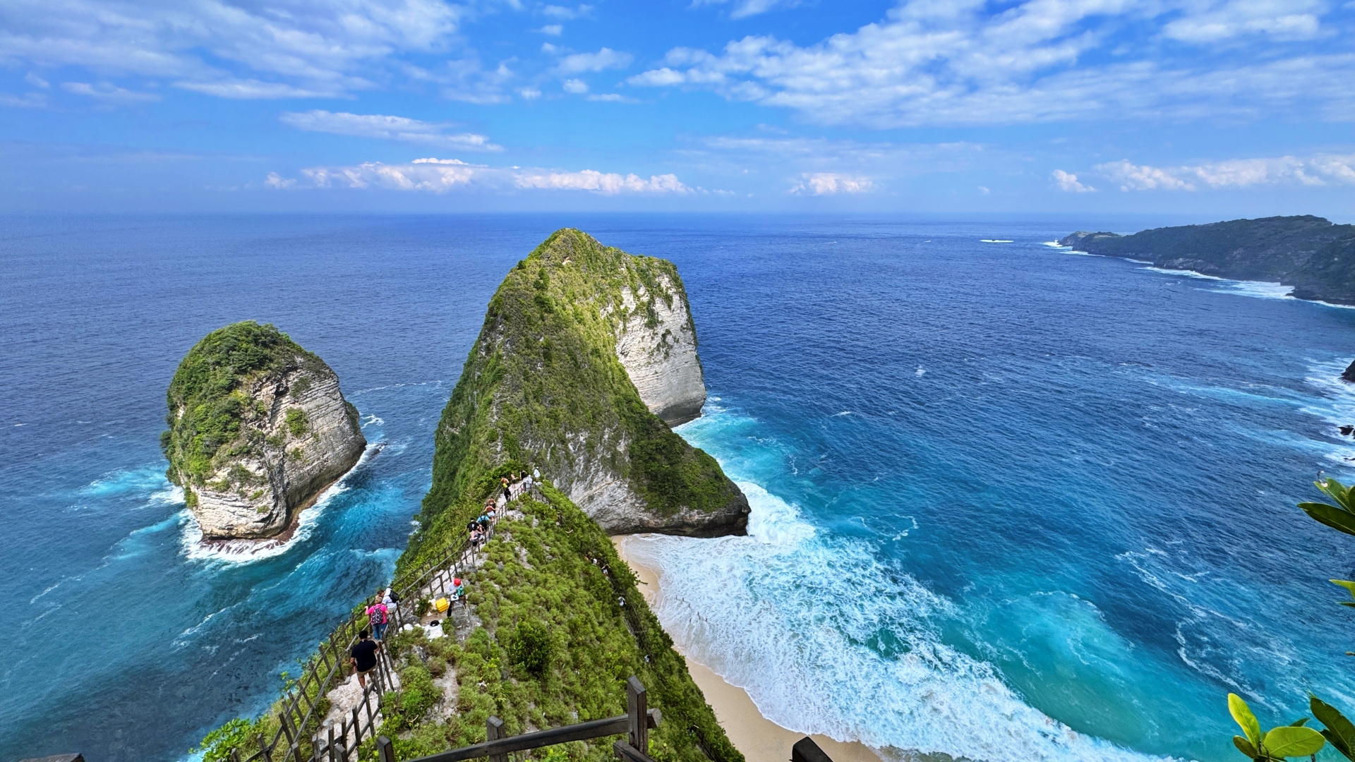 켈링킹 비치(Kelingking Beach)는 에메랄드 빛 푸른 바다와 하얀 모래 해변, 그리고 150미터 높이에 칼날같은 절벽이 어우러져 장관을 이룹니다. 켈링킹 비치에 가려면 꽤 험난한 경사가 심한 계단을 내려가야 하기 때문에 체력적으로 조금 힘들 수 있을 뿐만 아니라 계단이 다소 위험할 수 있으니 조심해야 합니다. 그래서 대부분 비치까지 내려가지 않고 절벽 꼭대기 위에서 인증샷을 많이 찍습니다. 절벽 꼭대기에서 바라보는 풍경도도 매우 인상적이며, 인스타그램과 다른 소셜 미디어에서 자주 볼 수 있습니다.
