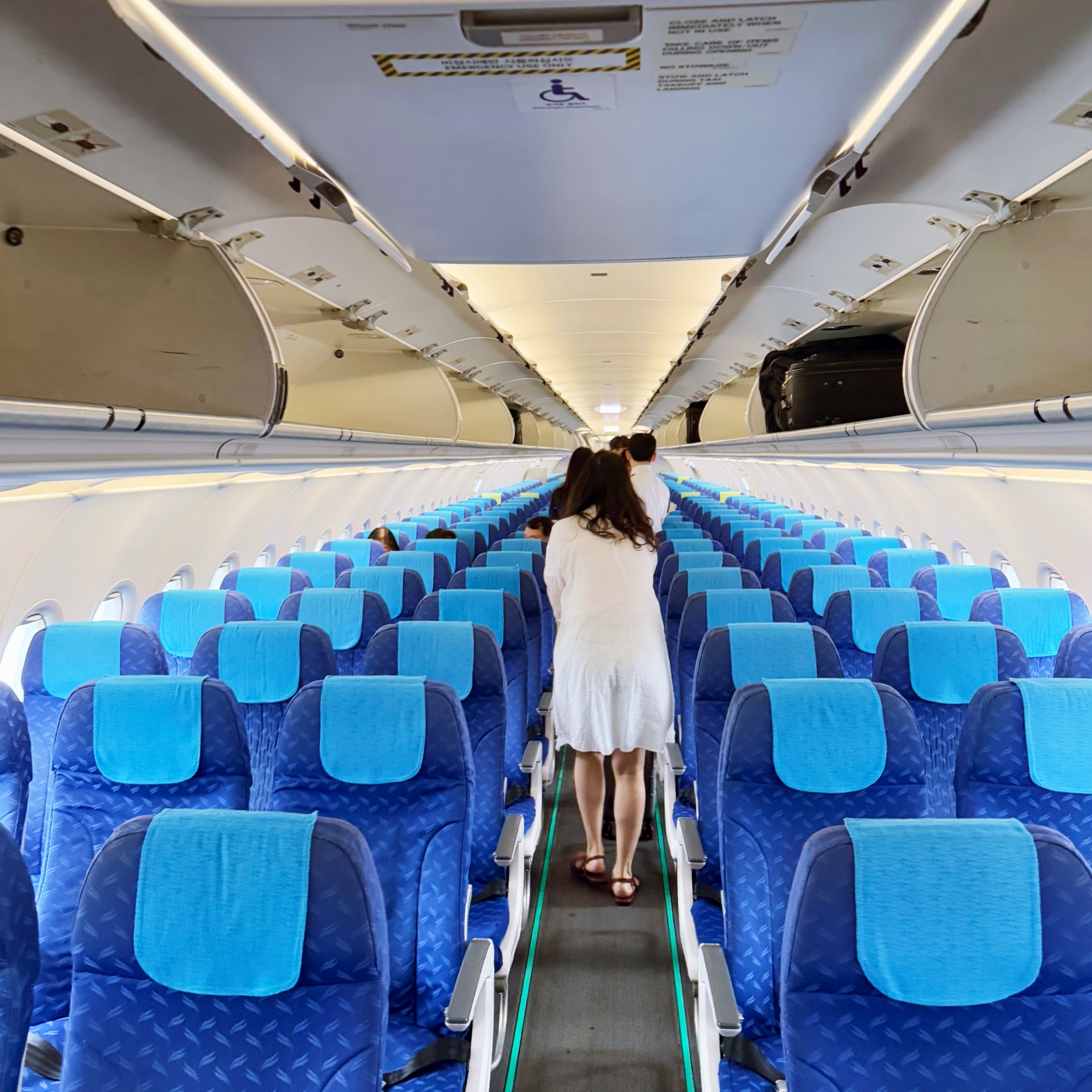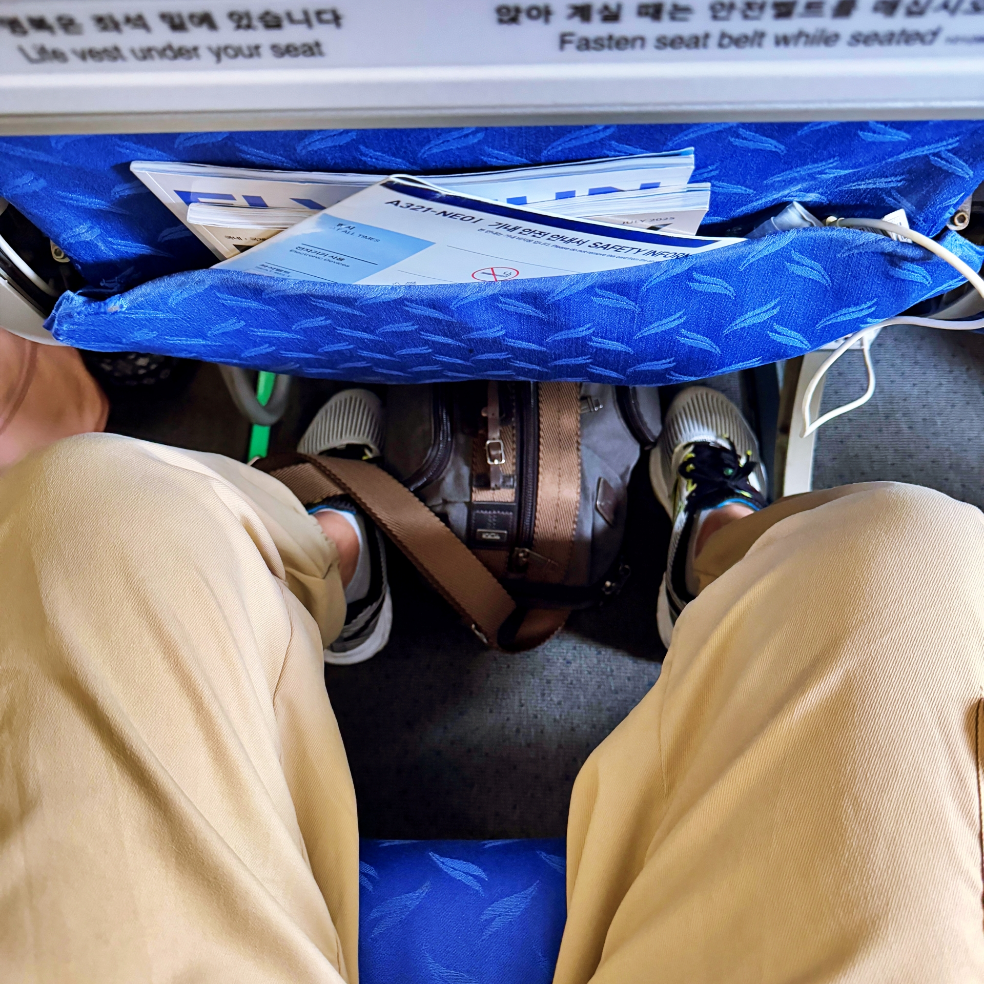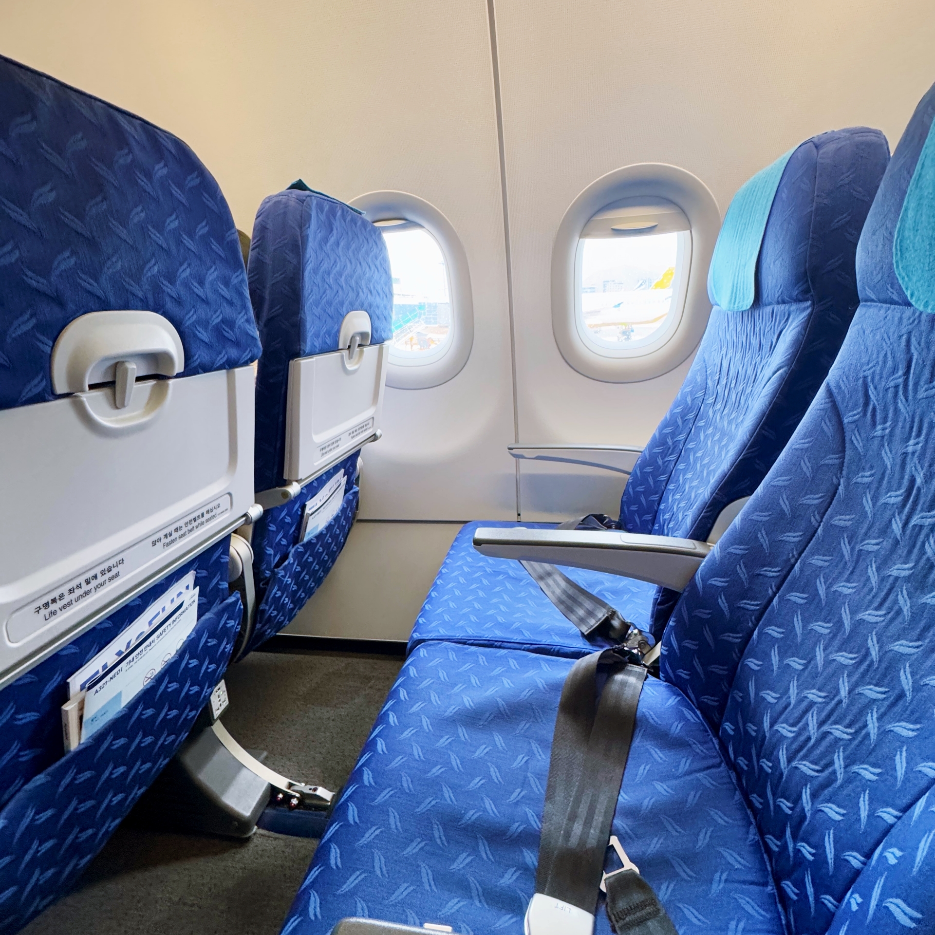 부산/김해 ↔ 발리/덴파사르 비행기는 에어버스 A321-NEO기종으로 좌석배열이 3-3배열이다. 올때도 마찬가지였다. 에어 부산 좌석 간격 및 폭은 저가 항공사라 좁은 편이나 개인적으로는 7시간 비행하는데 큰 무리는 없었다. 만약 좀 편한 좌석, 비상구 좌석이나 앞쪽 좌석은 추가 요금을 지불하면 더 넓은 좌석 간격을 이용할 수 있다. (예약시 부가서비스 선택)