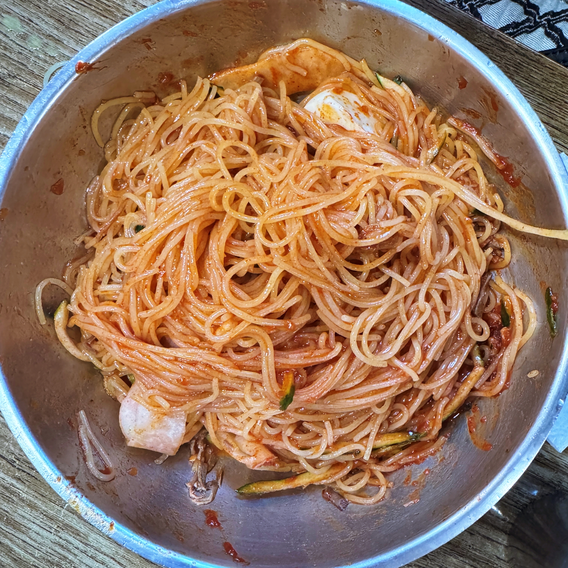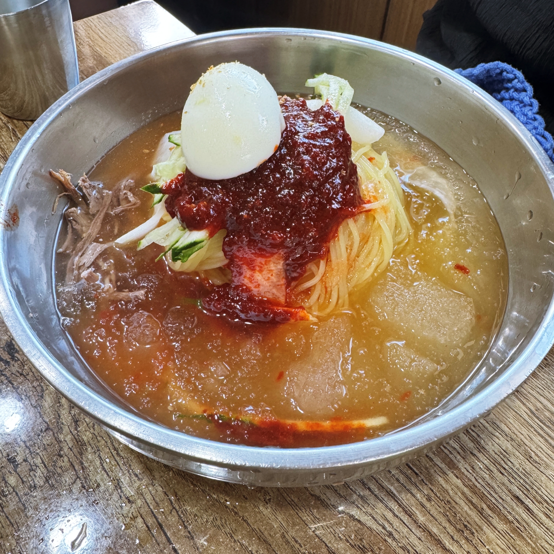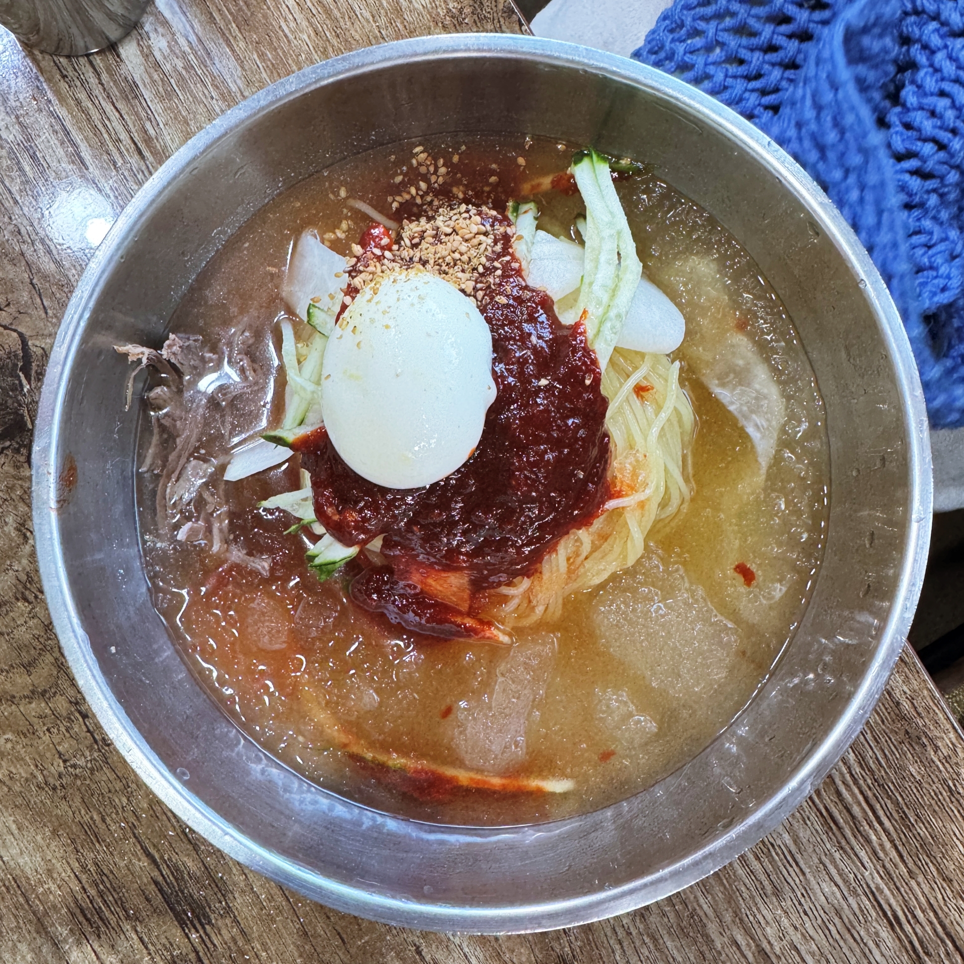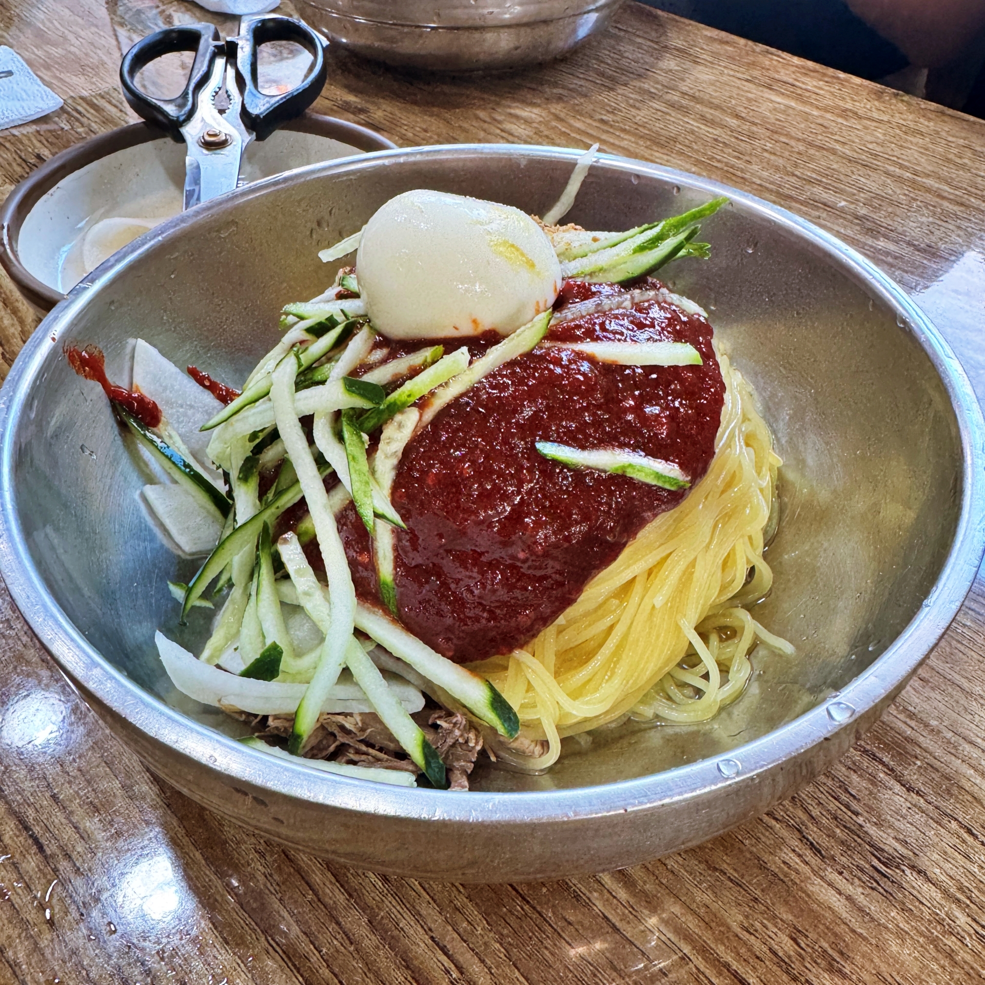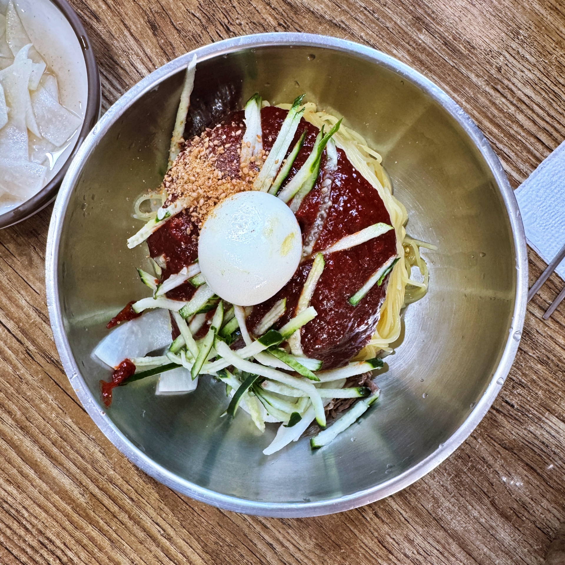 이 집 비빔밀면은 매운 맛에 비해 밀면의 특징인 달콤 새콤한 맛이 덜하다. 그리고 참기름 향이 강하고 고추장의 텁텁한 맛이 느껴진다. 개인적으로 이 집은 비빔밀면보다 물밀면이 더 맛있는 것 같다.