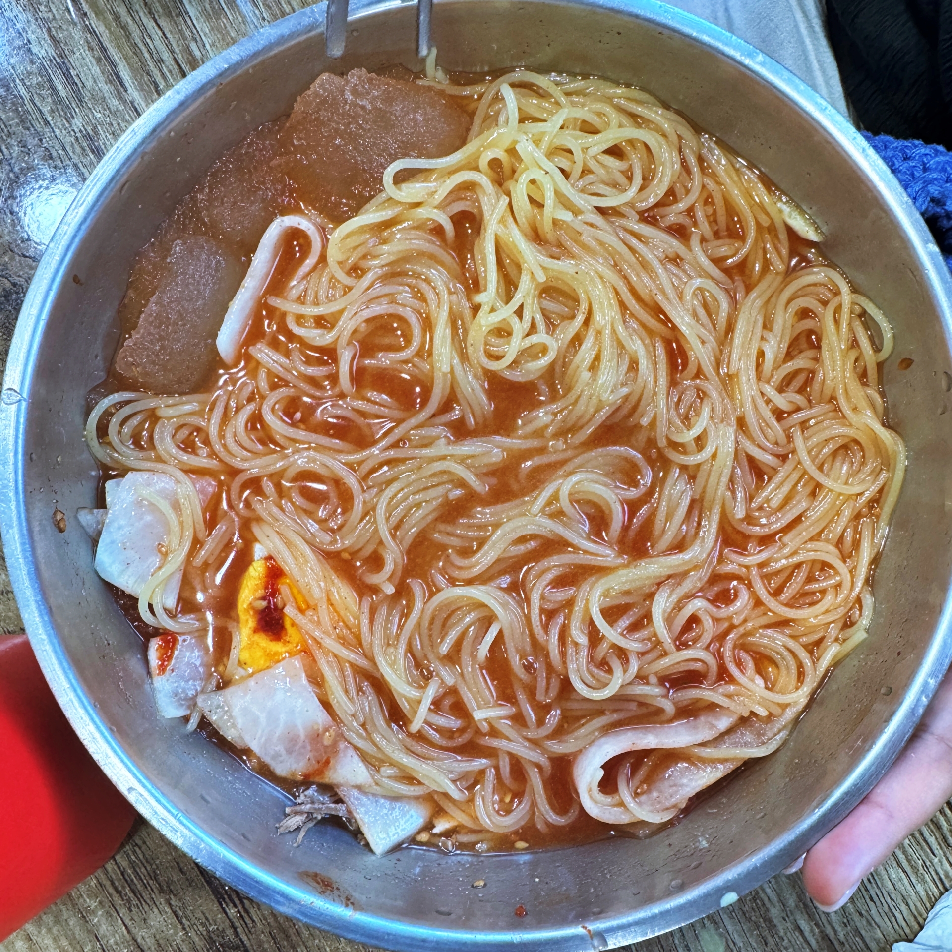주문을 하면 온육수를 가져다 주는데 육수가 간도 잘 되어 있고 구수한 맛이 맛난다.