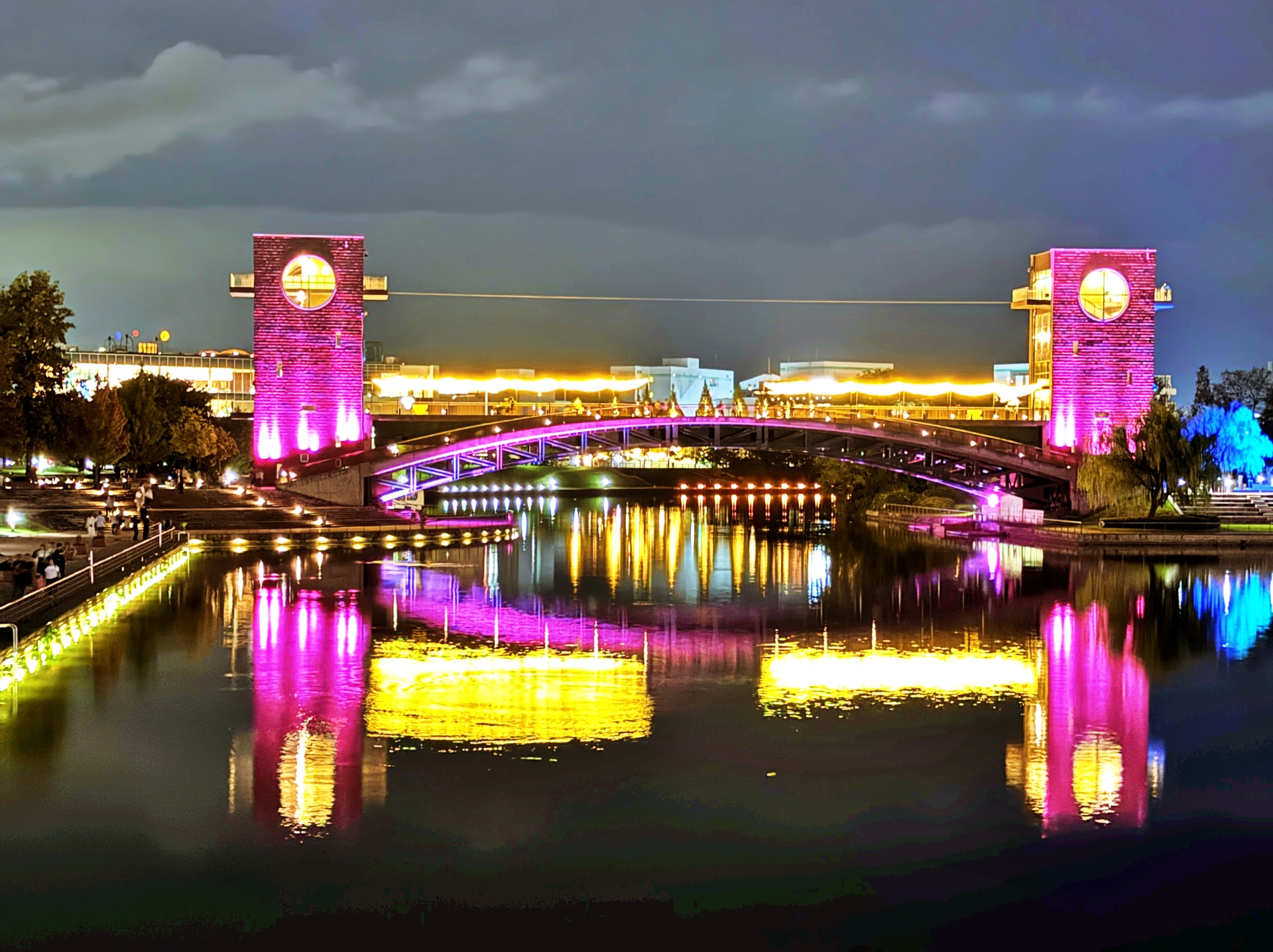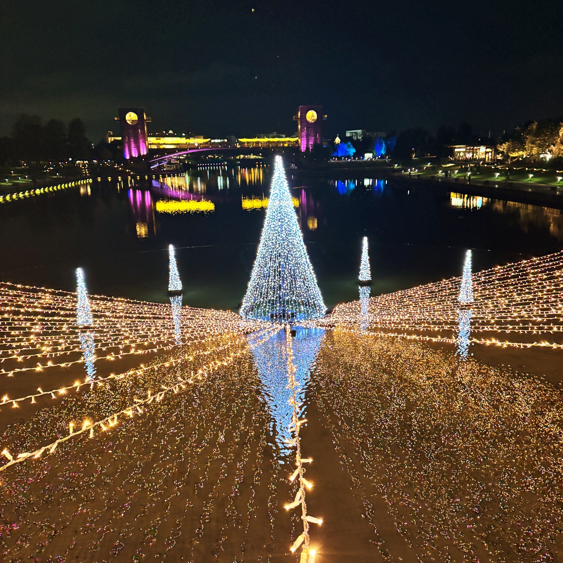 저녁이 되면 덴몬 다리, 분수, 공원 남단에 배치된 조명이 켜져 간스이 공원 전체에 로맨틱한 분위기가 감돈다. 또한 벚꽃 시즌과 가을철을 포함해 일 년 내내 계절별 조명 장식을 구경할 수 있다.