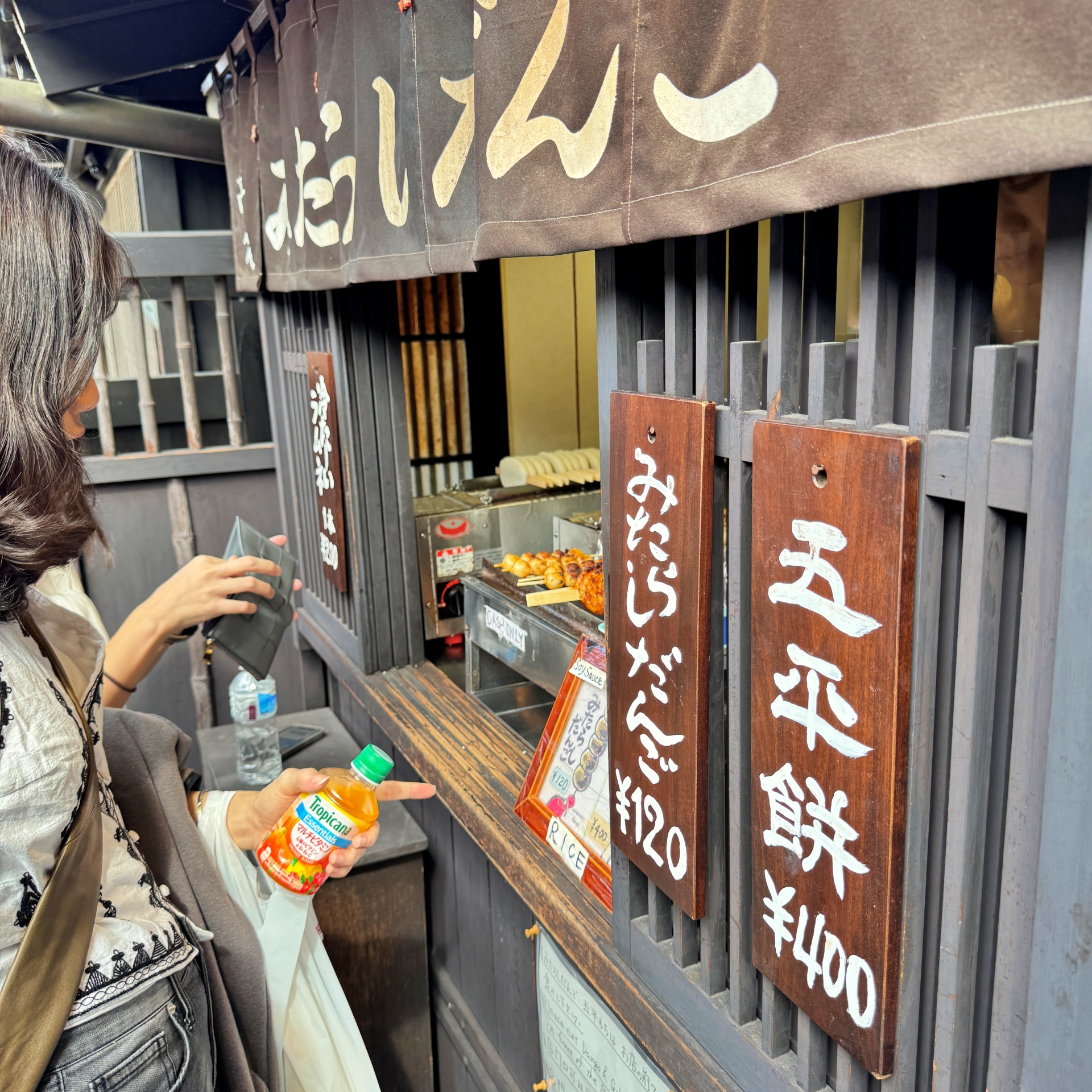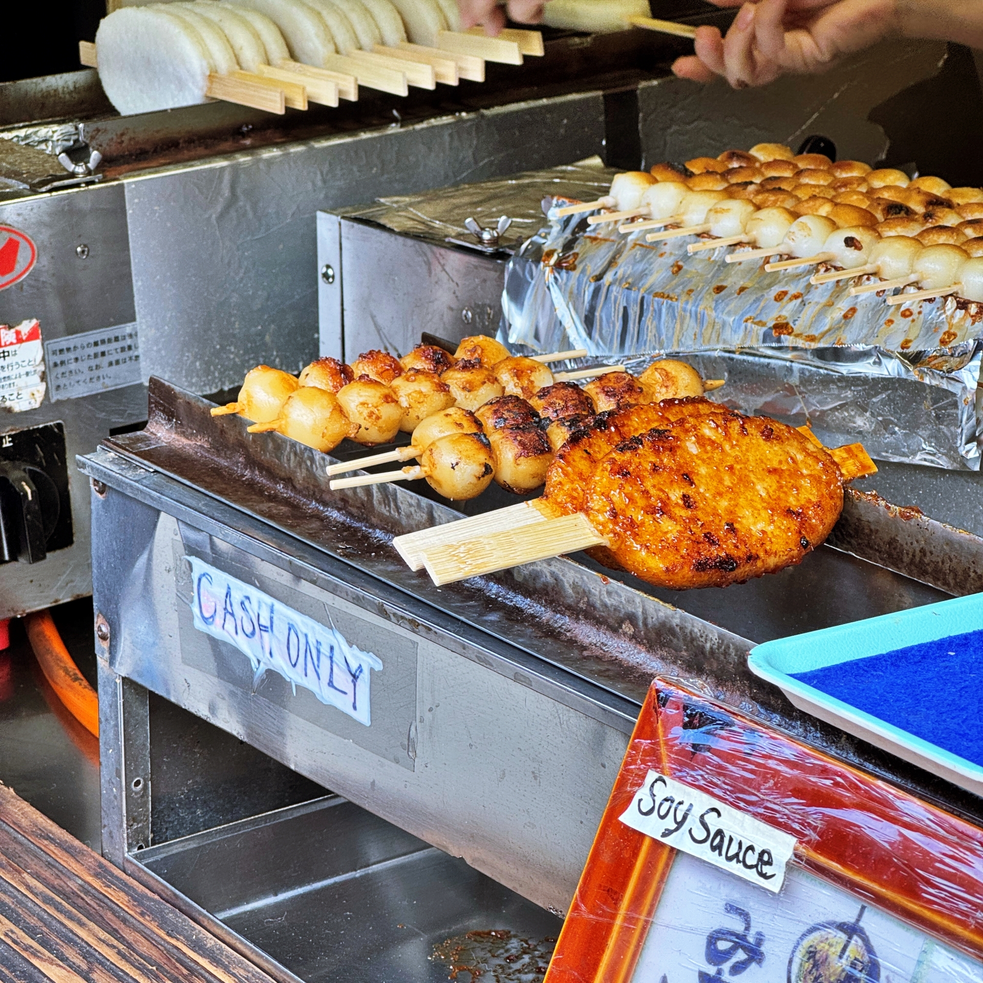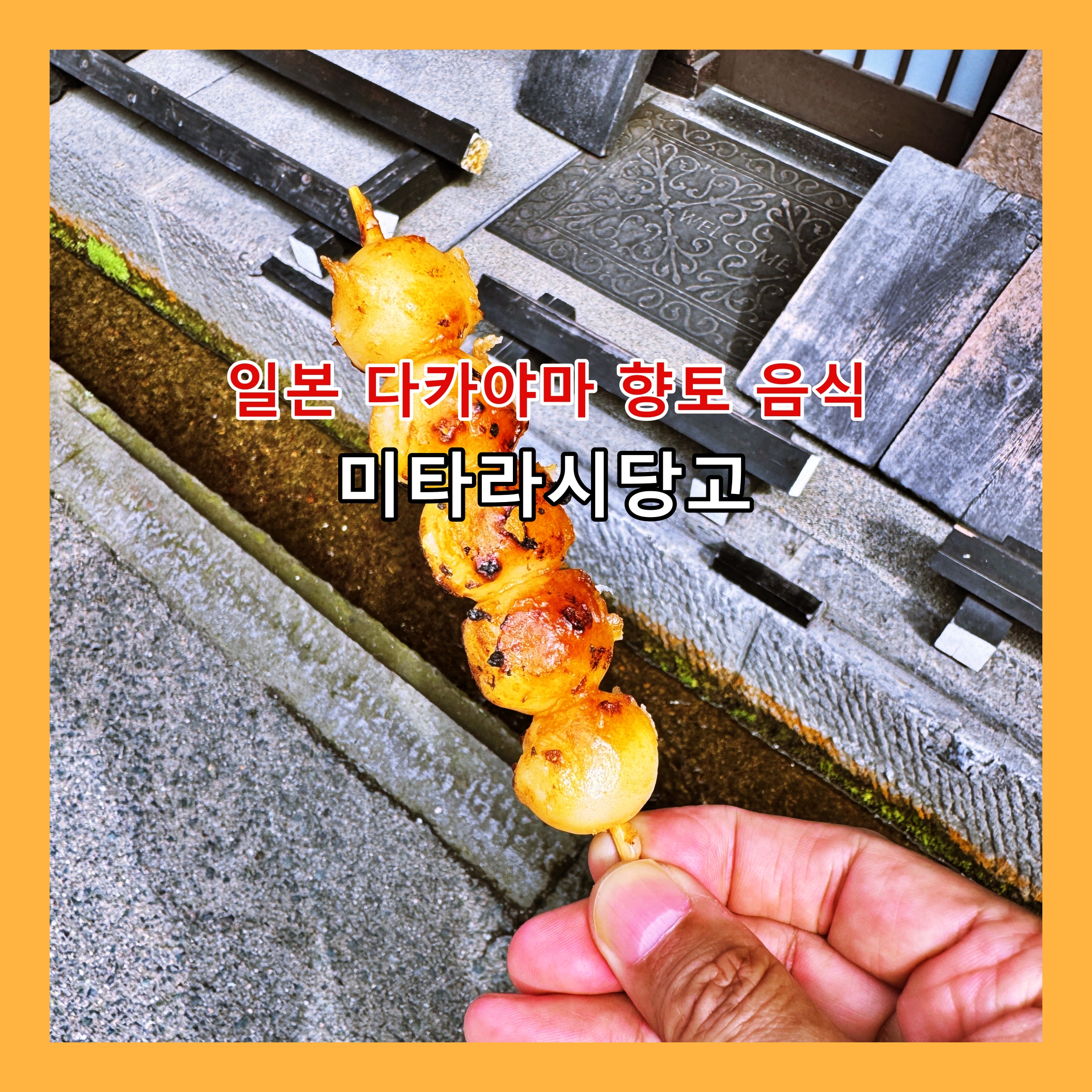 '미타라시당고'는 600년이상 전부터 먹었으며, 보존식품의 시초라고 전해집니다. 쌀가루로 만든 경단을 꼬치에 끼워서 소스를 발라 굽는다. 다른 지역에서는 설탕이 들어간 매콤달콤한 소스가 사용되고 있지만, 다카야마에서는 간장소스만으로 고소하게 굽는 것이 특징이다. 솔직히 특별한 맛은 없지만 다카야마 향토음식이라고 하니 하나정도 주문해 먹어보는 것도 나쁘지 않다. 가격은 120엔 (약 1,100원). 현금결제만 가능하다.