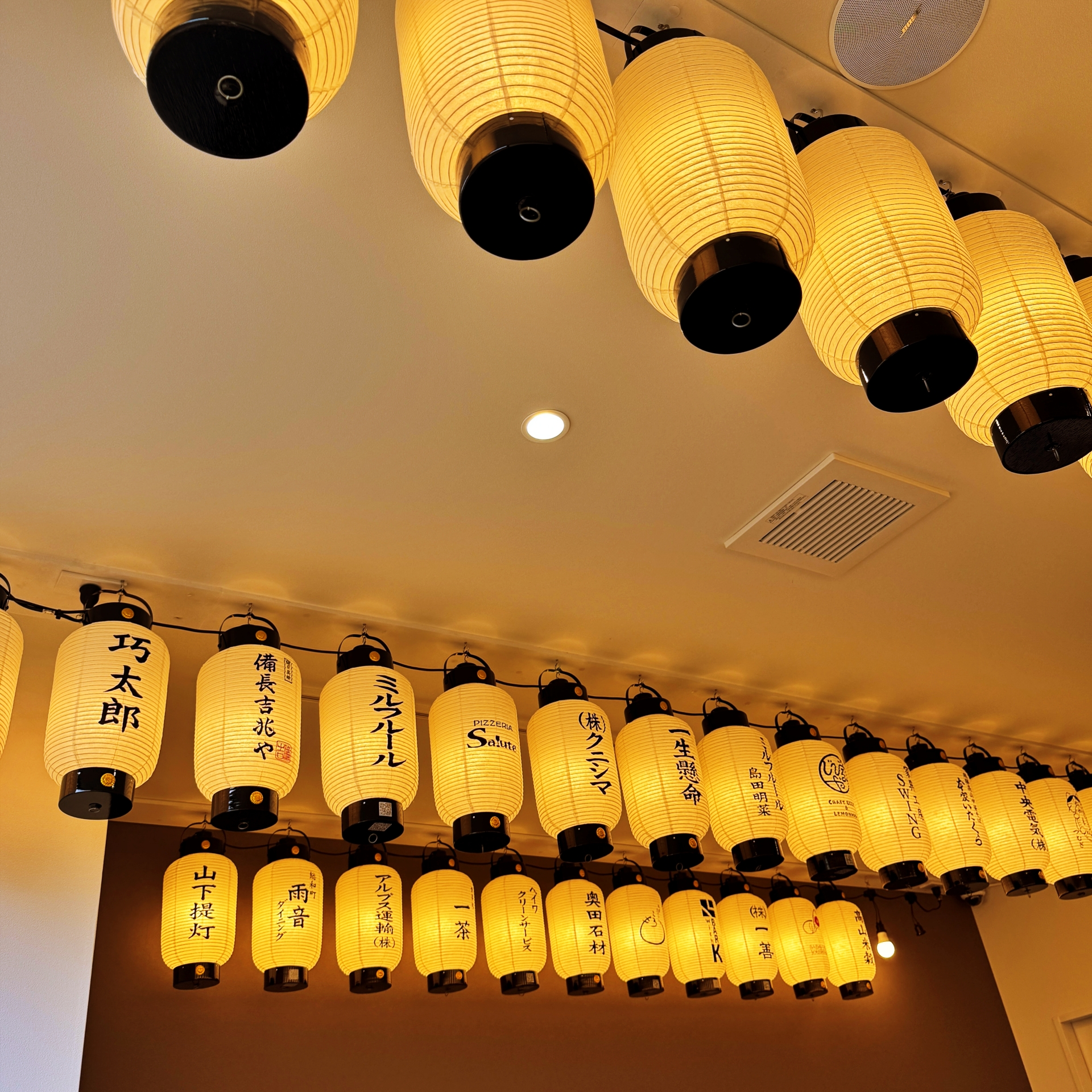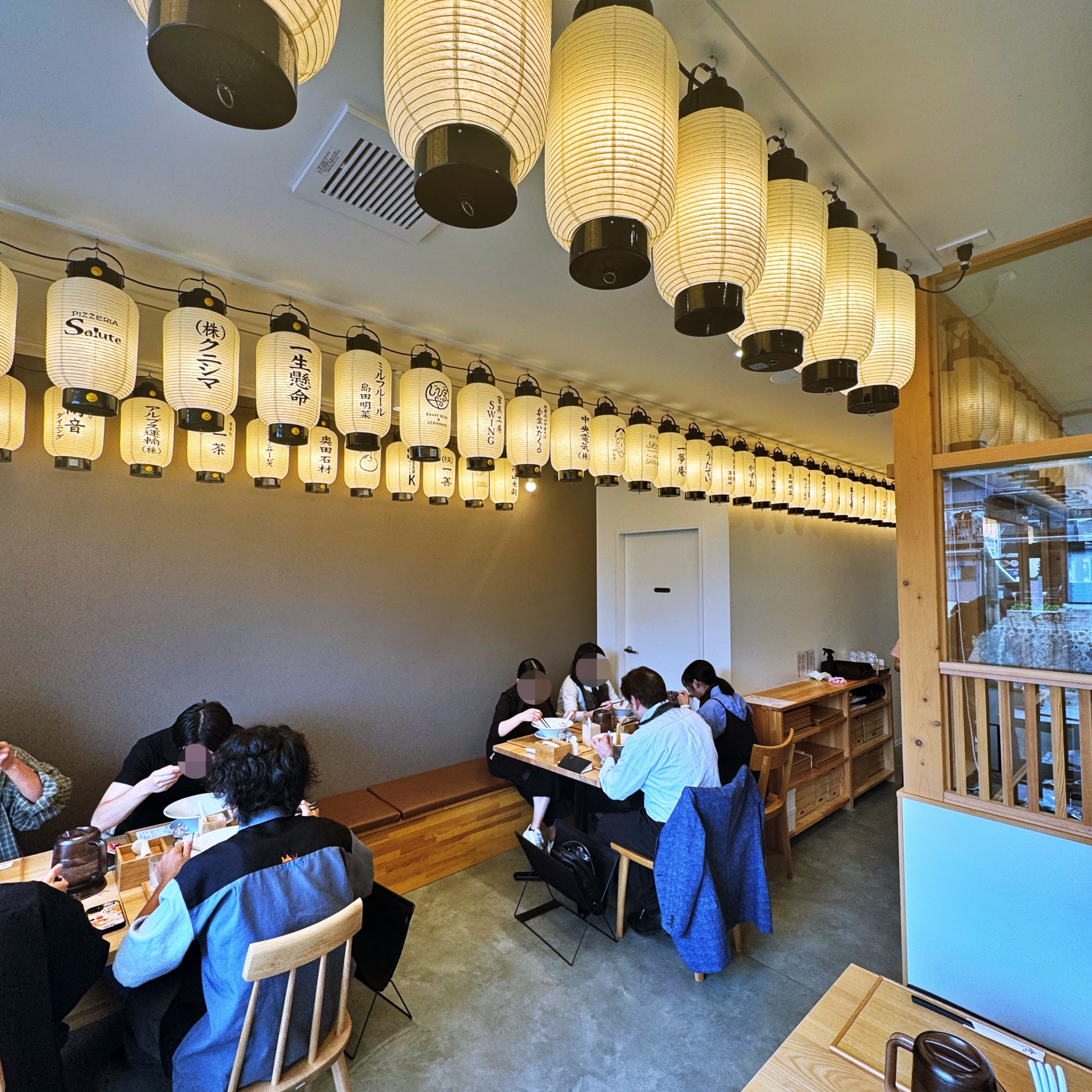 기다려다 마침내 식당안으로 들어간다. 식당은 일자형으로 길게 배치되어 있는데 그리 큰 규모는 아니다. 그럼에도 내부는 역시 일본답게 정말 깔끔하다. 그러면서도 등으로 일본 전통의 분위기를 느낄 수 있게 인테리어를 해 놓았다.