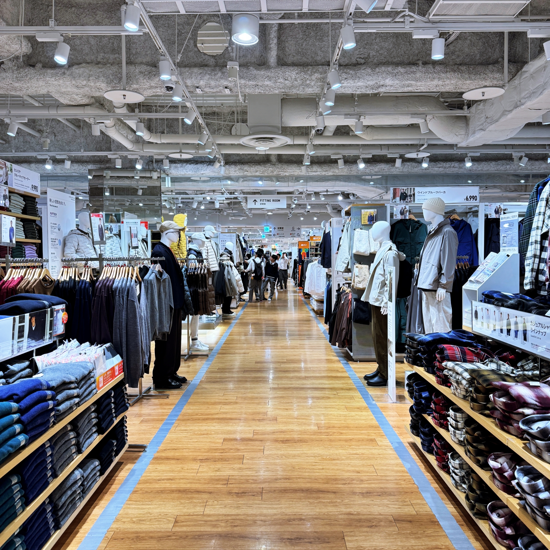 유니클로 나고야 매장은 규모가 꽤 큰 편이고 옆에 GU 매장도 같이 있다. 규모가 큰 만큼 제품 종류도 매우 다양하게 진열되어 있다.