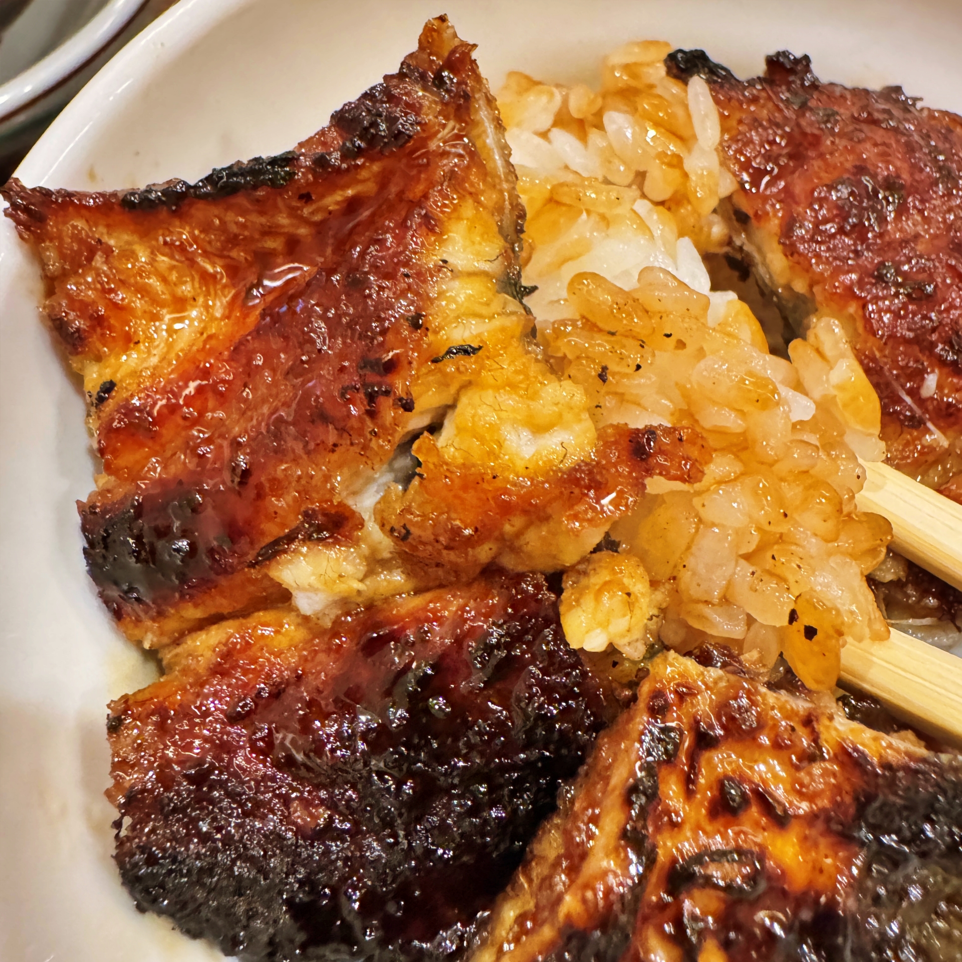 장어덮밥과 함께 장어로 끓인 육수, 오차즈케 육수, 잔파를 포함한 간단한 찬이 제공된다. 장어 양이 우나기덮밥(소)보다 좀 더 많다. 이 건 적당히 구워져 탄맛이 나지 않아 좋았고 단짠 쇼유 소스도 입맛에 딱 맞았다. 그런데 마지막에 ‘오차즈케’로 먹으니 비린 맛이 약간 올라온다. 마이너스 감점.