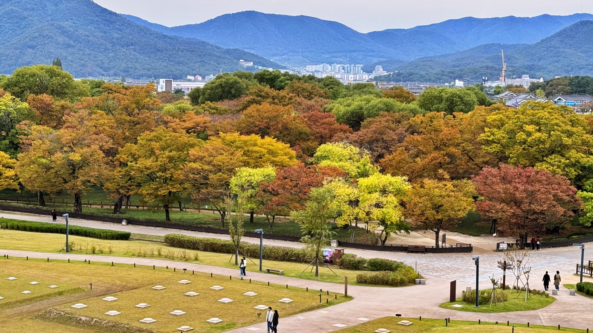 월성터는 널찍하고 보드라워 도보로 걷기 좋다. 월성에서 첨성대를 바라보면 경주 시내 일대가 한눈에 들어온다. 특히 가을에는 핑크뮬리, 해바라기 물결을, 그리고 붉게 물던 계림 숲을 감상할 수 있다.