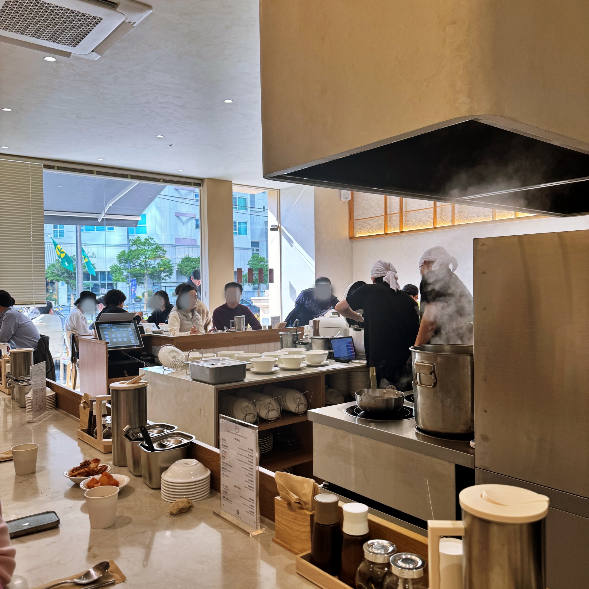 미쉐린 가이드부산 2024년, 2025년 2년 연속 맛집답게 오픈하자마자 많은 손님들이 방문하고 있어 식사시간 피크때나 주말에는 웨이팅이 거의 필수. 도착하자마자 대기번호부터 받아야 하며 아니면 캐피테이블로 미리 예약을 하고 가는 것도 한 방법이다.